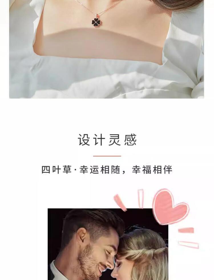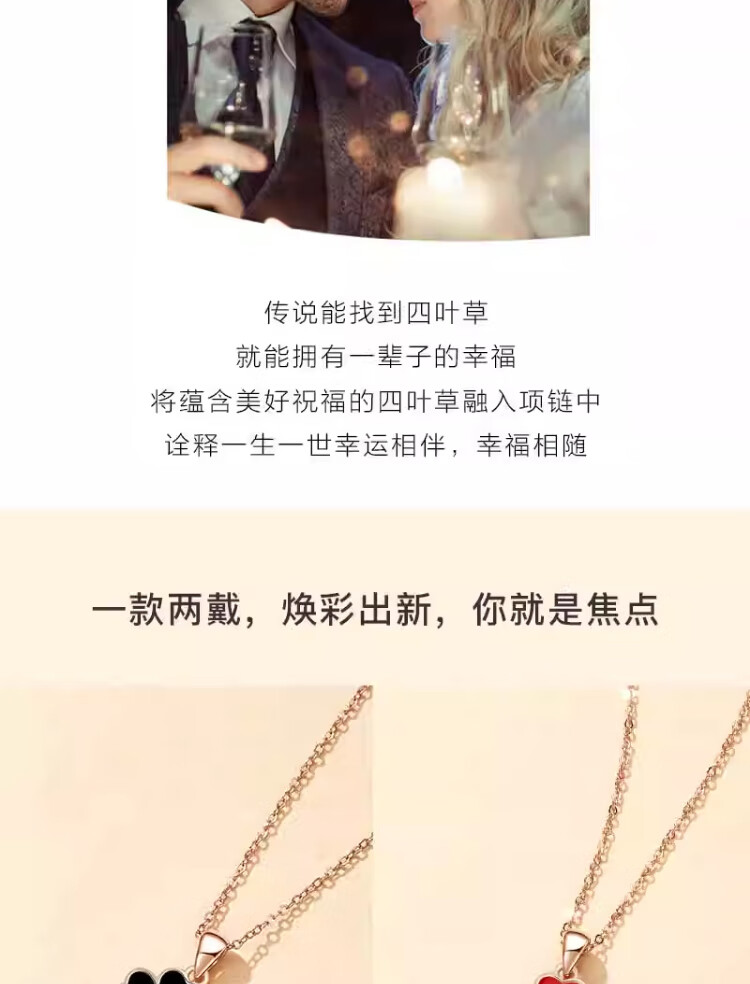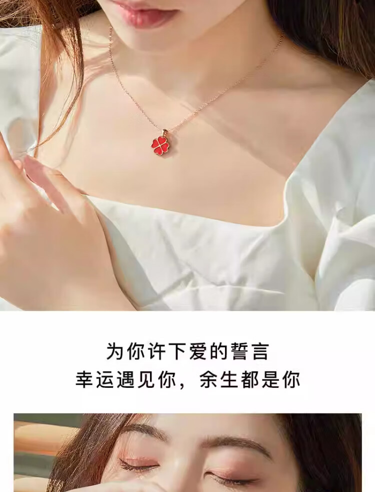 Fanzhe Poetry Four-leaf Clover Necklace Women's Temperature-Changing Light Luxurious Niche Rose Gold Pendant Clavicle Chain Girl's Birthday Chinese Valentine's Day Gift Temperature-Changing Black and Red Double-sided Four-leaf Clover Necklace