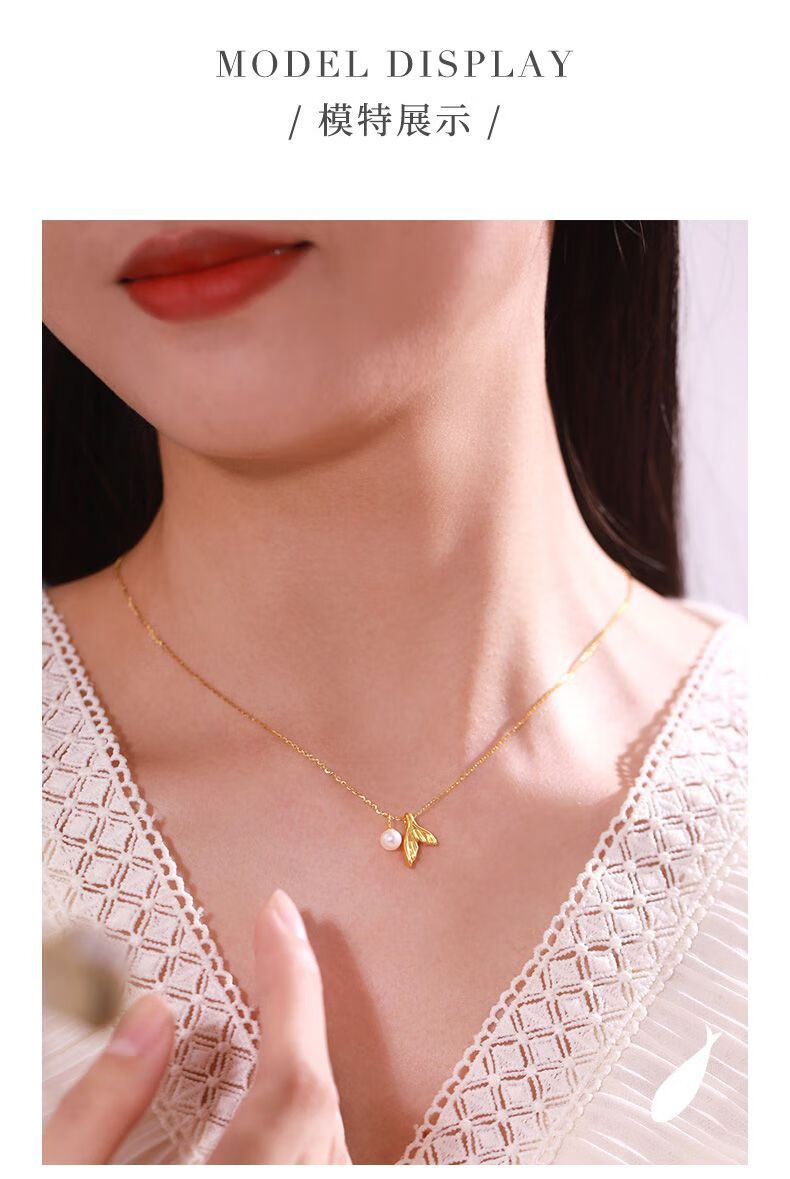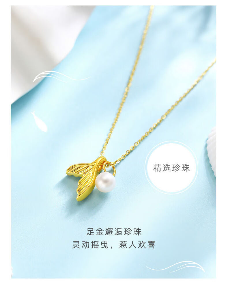 Feiyu 999 pure gold fish tail pendant for girls to spend the rest of their lives with you 3D hard gold inlaid pearl necklace water shell jewelry fish tail pendant (about 0.18g) pendant + S925 silver gold-plated necklace + boutique gift box +