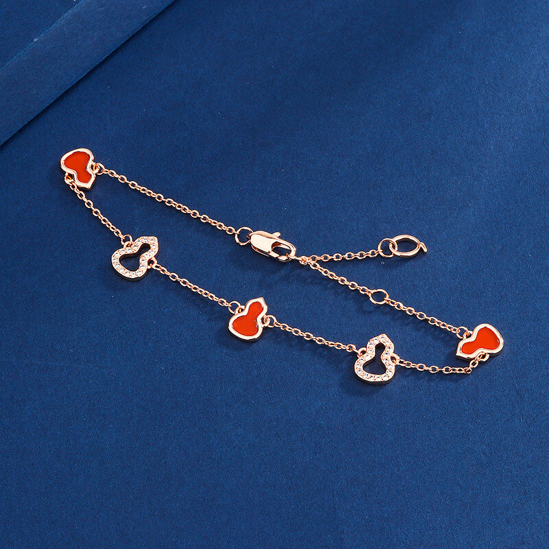 Feiyu V Jinqijia gourd bracelet electroplated 18k rose gold full of diamonds red agate small red book small gourd five-flower bracelet for women