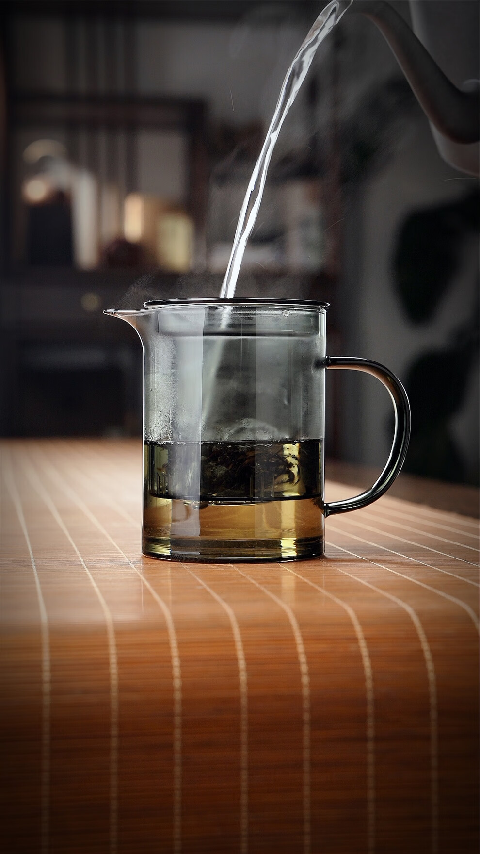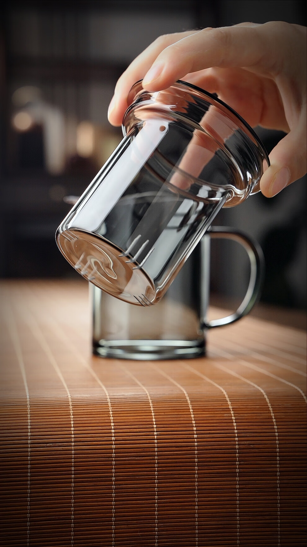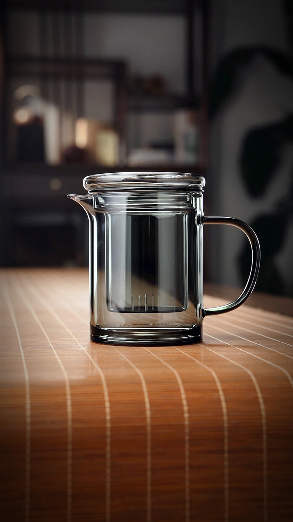Quandu office teapot simple high borosilicate heat-resistant glass teapot household personal flower teapot thickened teapot B type transparent 350ml
