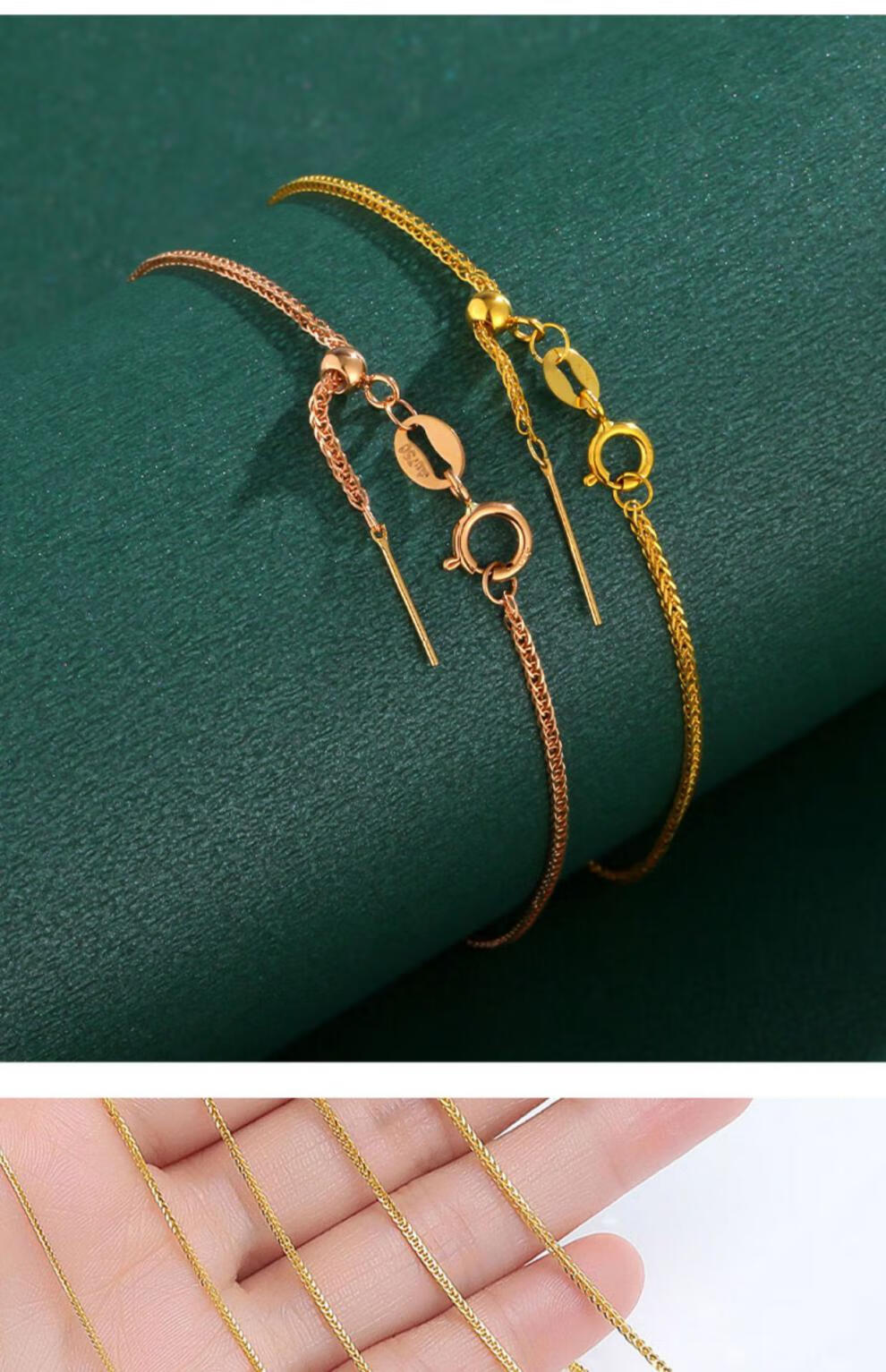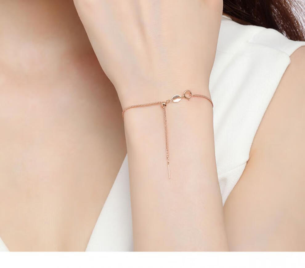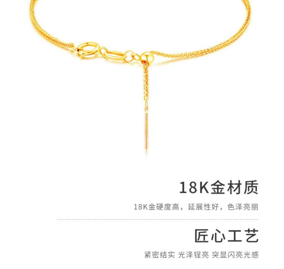 Feiyu 18K gold bracelet women's gold K gold adjustable pin chain Chopard chain plain chain Au750 girls gift 18K gold