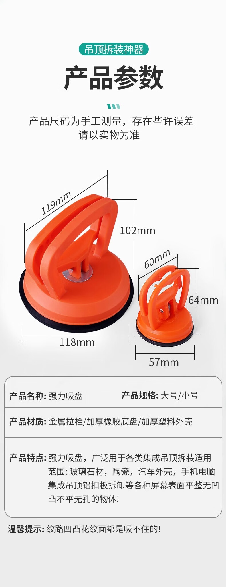 Integrated ceiling strong suction cup tile glass aluminum buckle plate special removal tool suction lift holder rubber pad small size 1