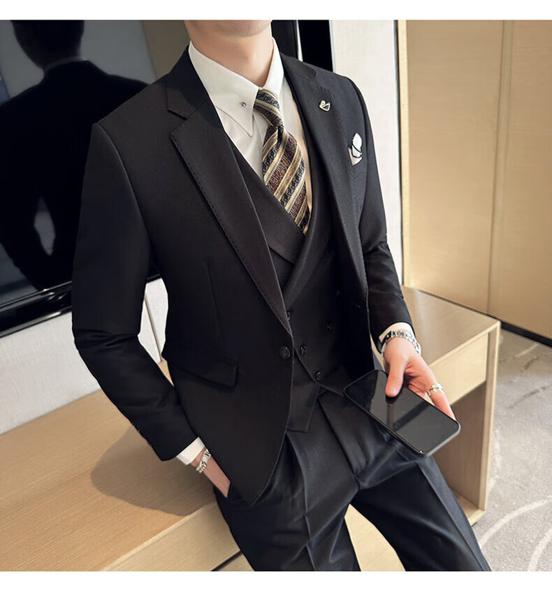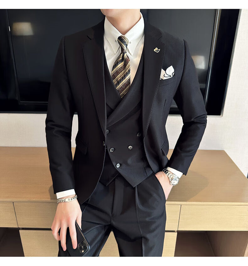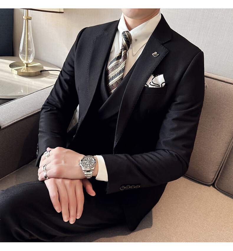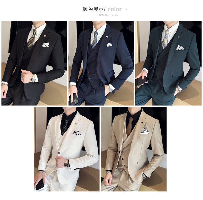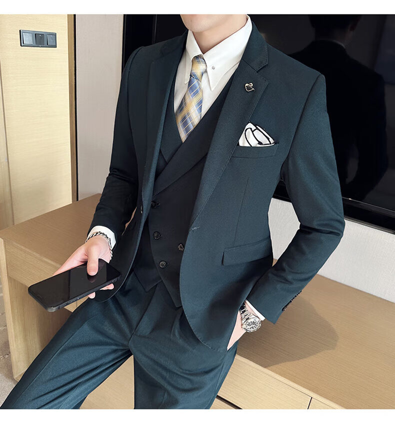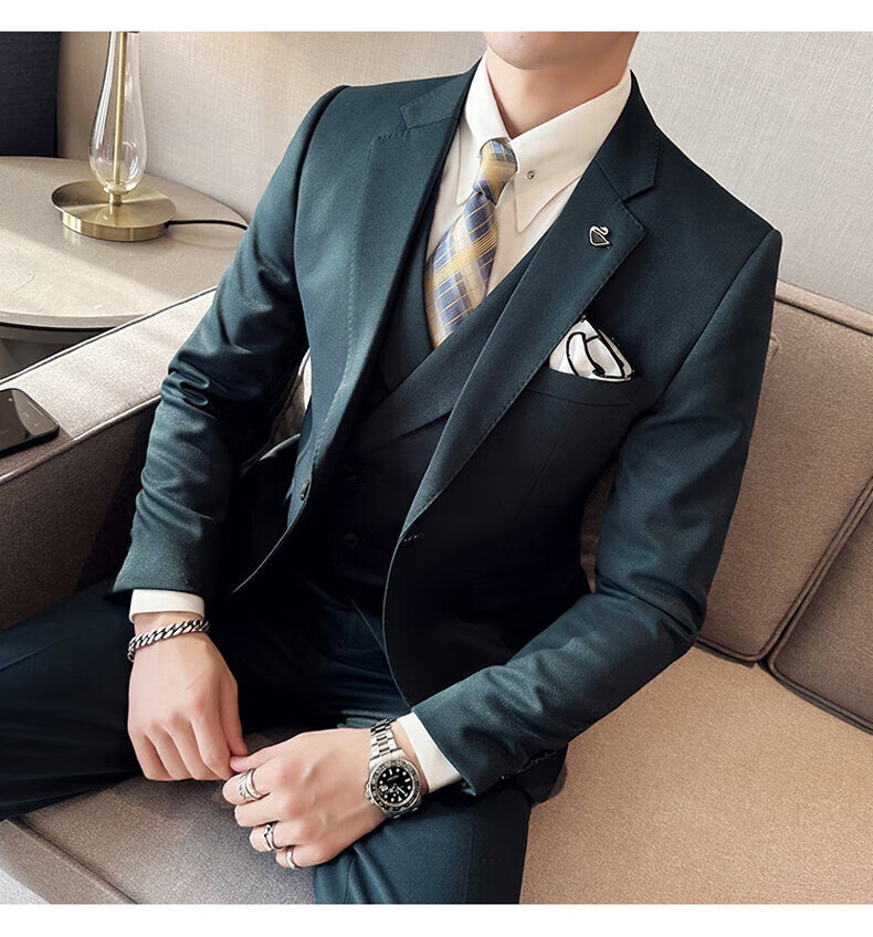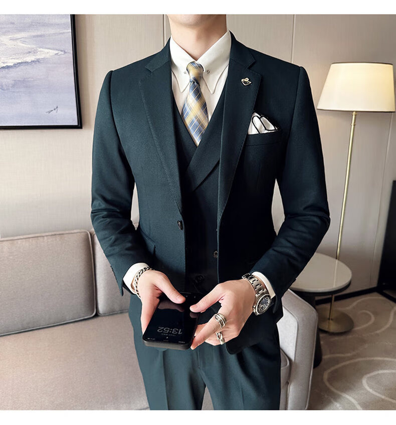 Pierre Cardin's new high-end single-breasted suit men's jacket slim fit three-piece suit autumn and winter high-end business suit dark green (suit + pants + vest) three-piece L (175) -
