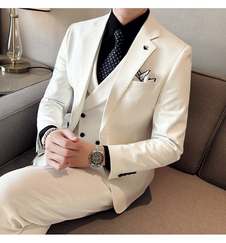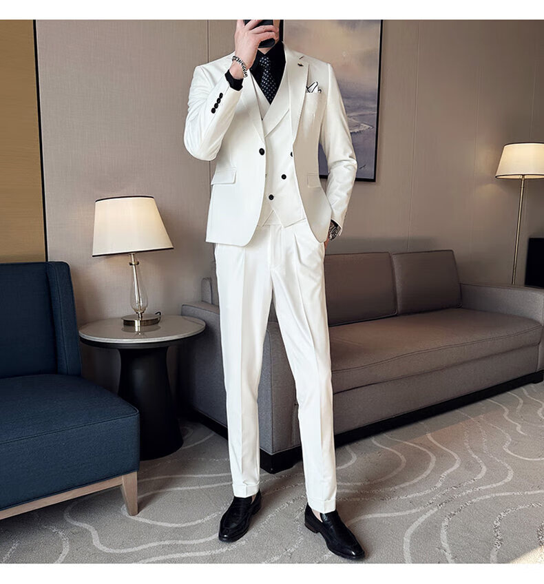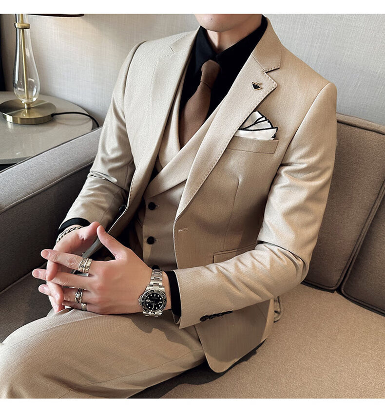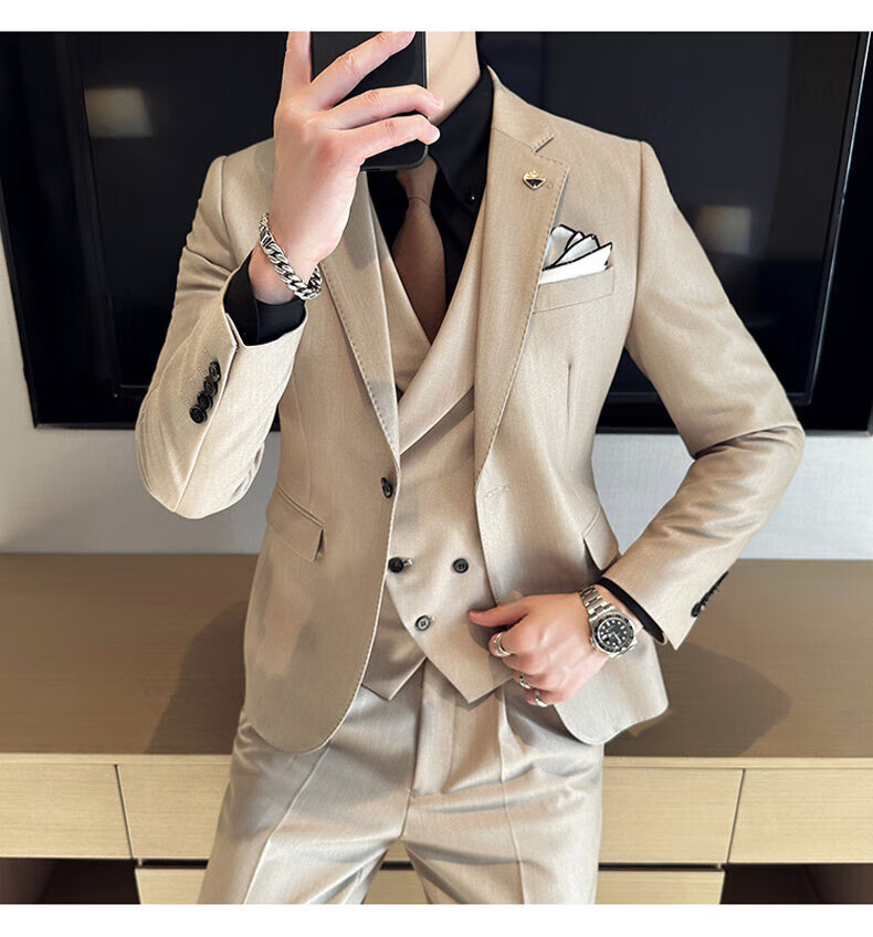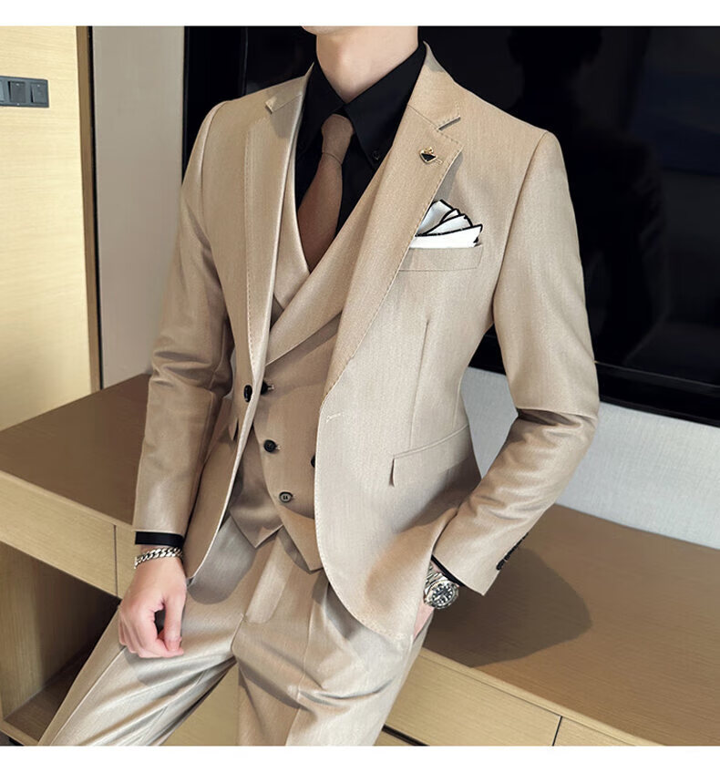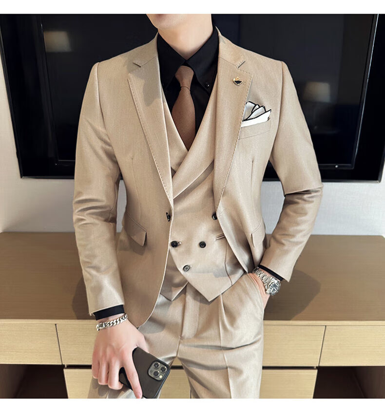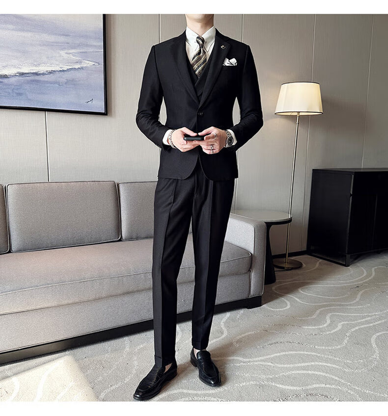 Pierre Cardin's new high-end single-breasted suit men's jacket slim fit three-piece suit autumn and winter high-end business suit dark green (suit + pants + vest) three-piece L (175) -