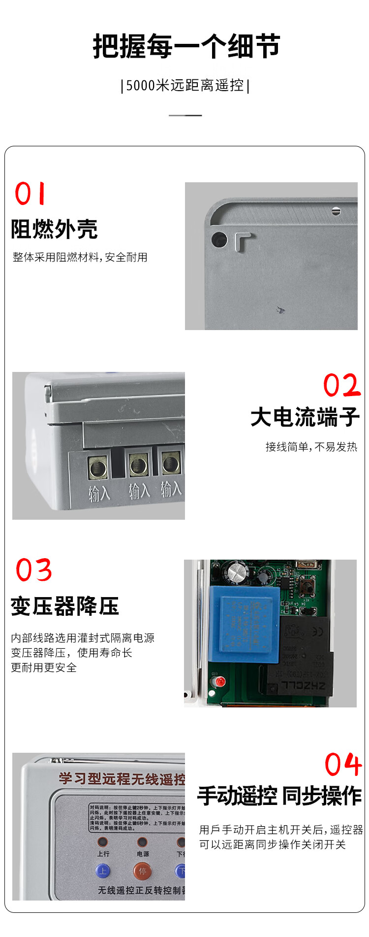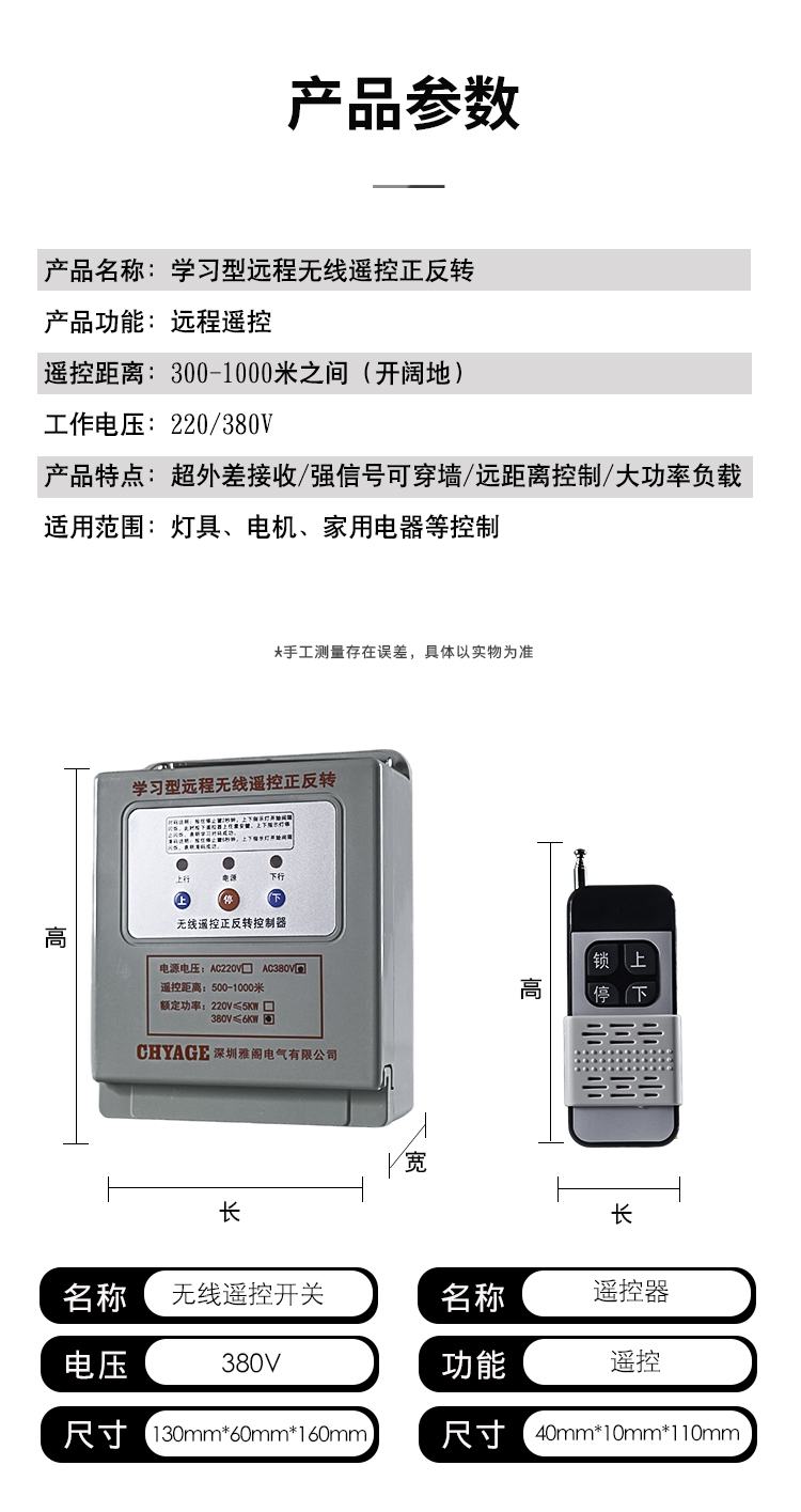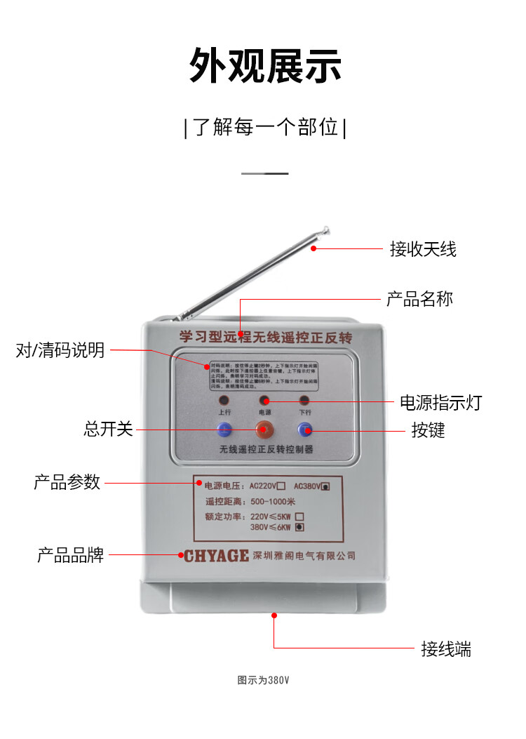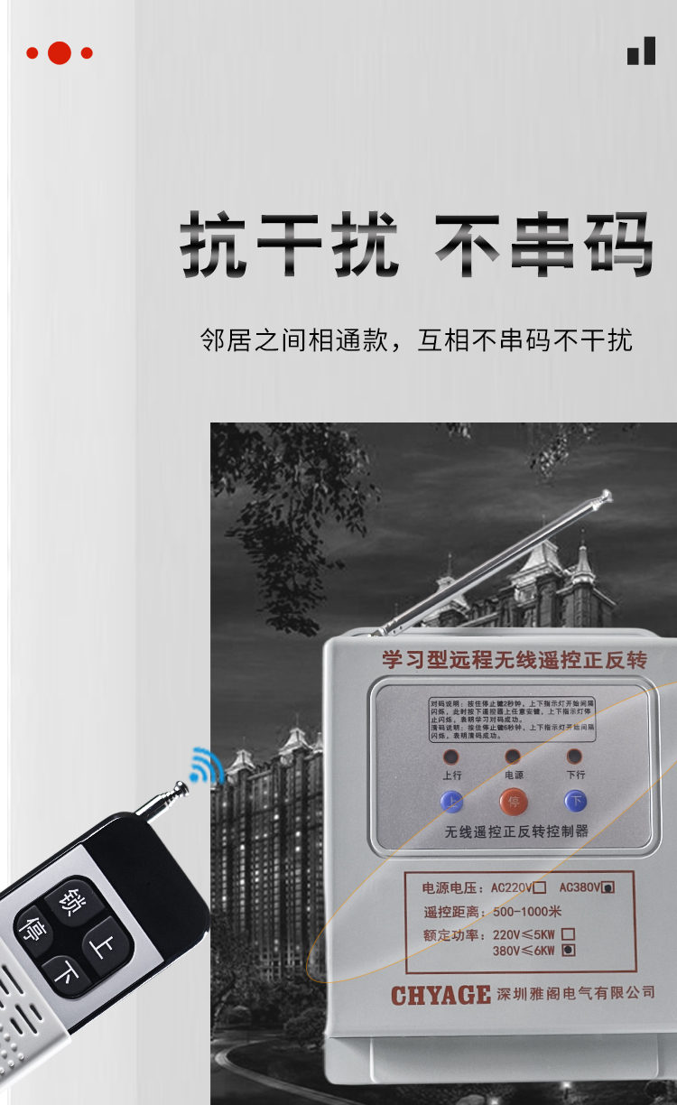 Motor forward and reverse remote control switch 380V three-phase industrial remote control rolling shutter machine reverse switch controller 3000 meters 5.5KW/380V
