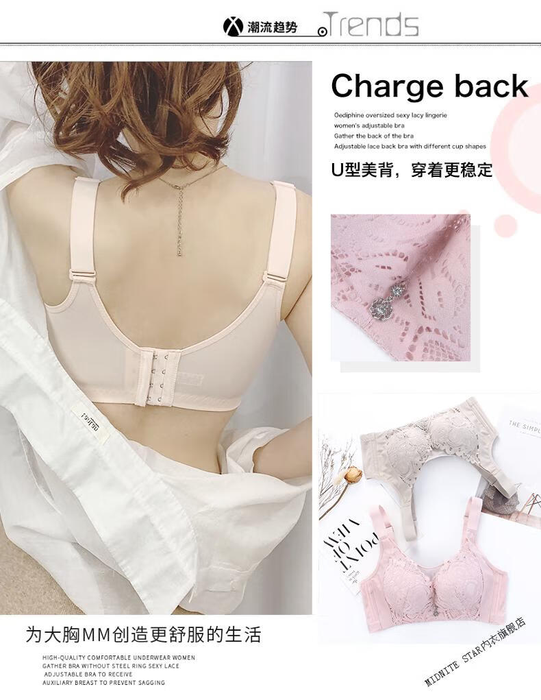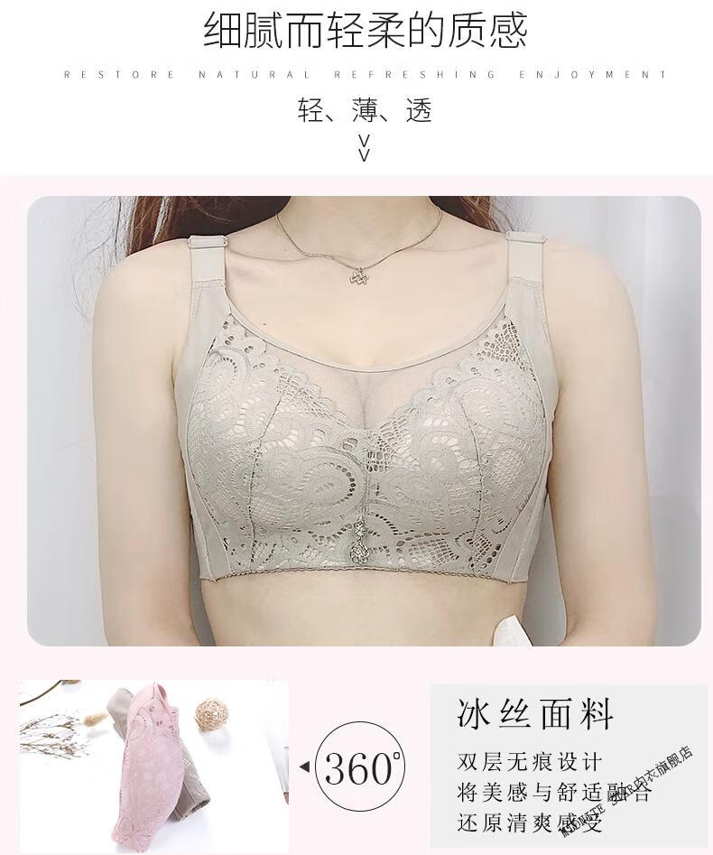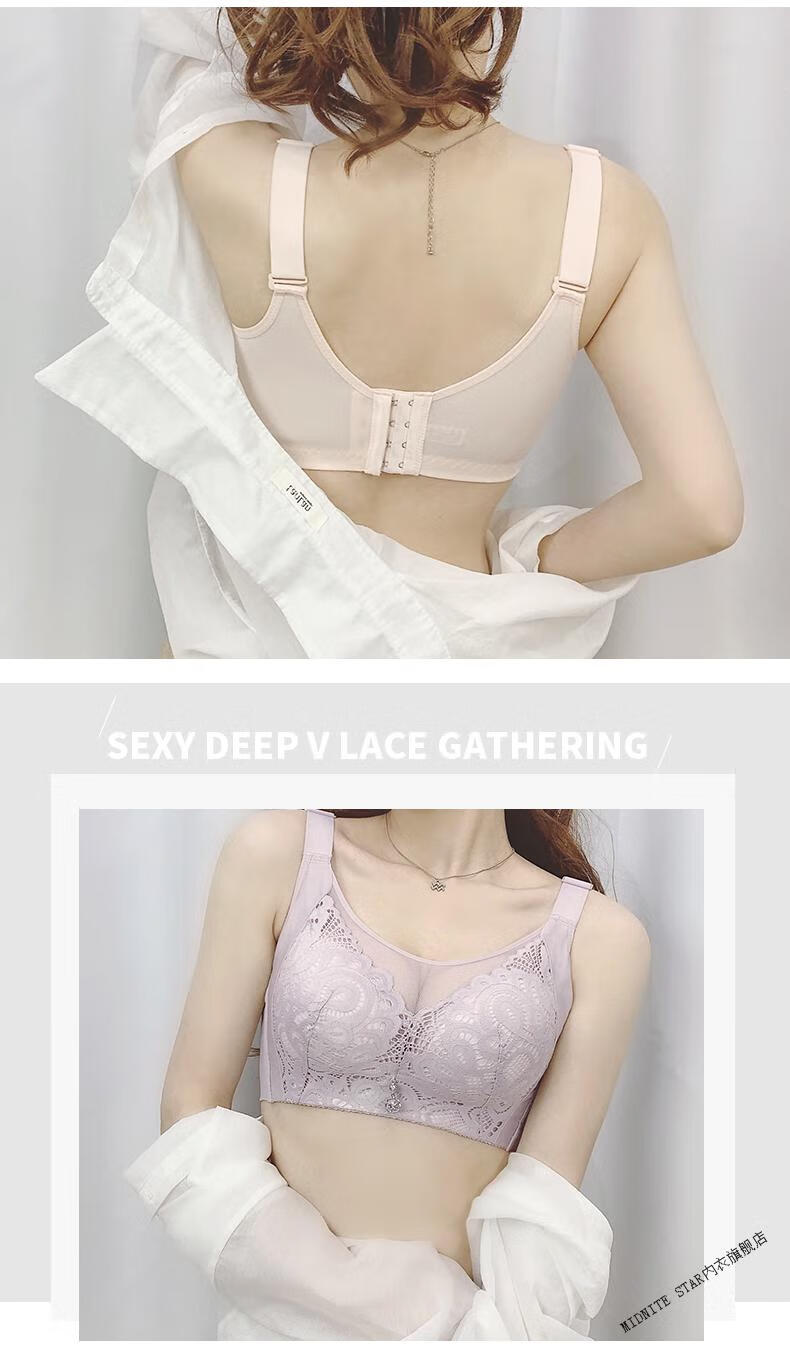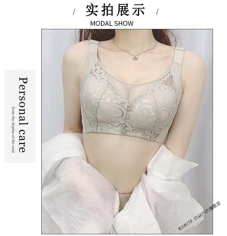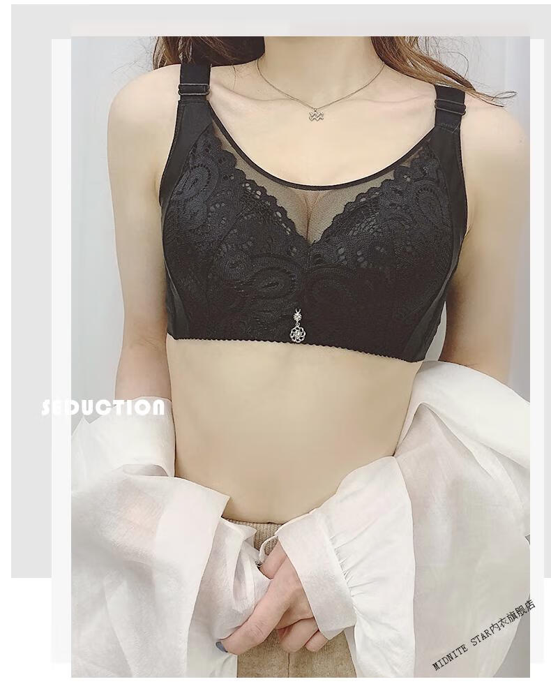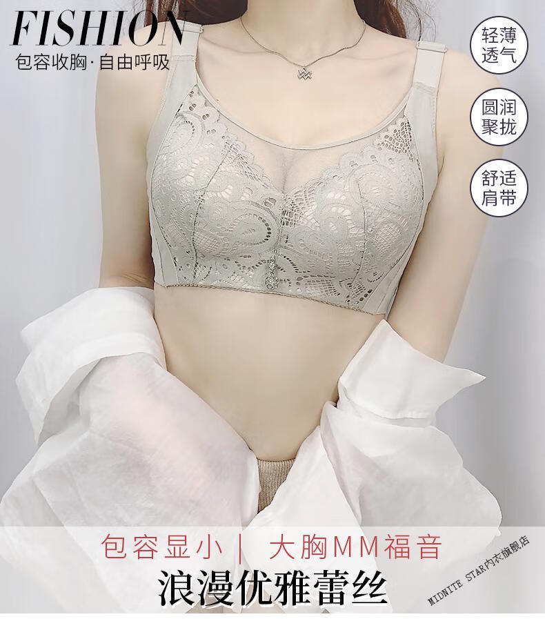 MIDNITE STAR underwear for women, thin, big breasts, push-up, no wire bra, adjustable upper support, secondary breasts, large size bra, matcha color 36/80B