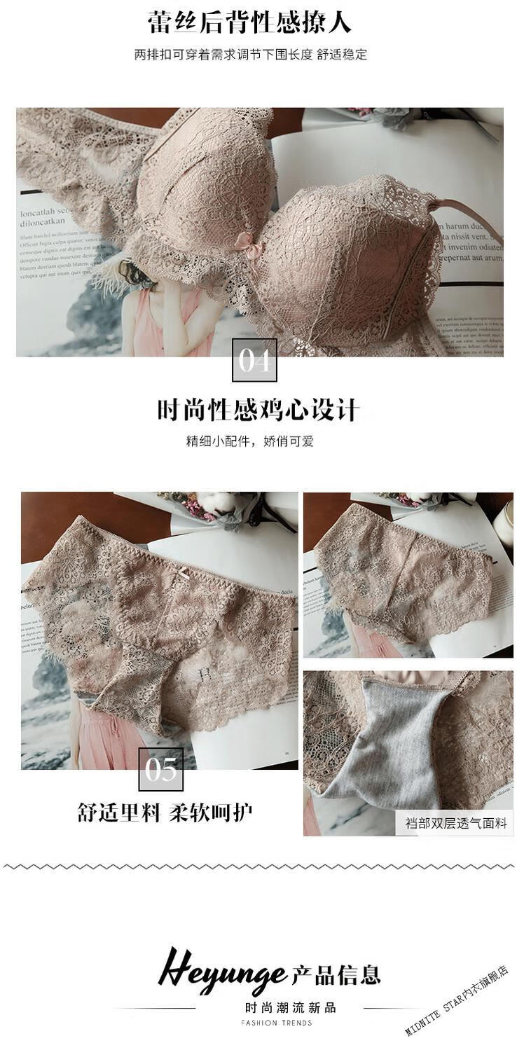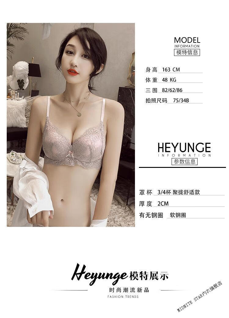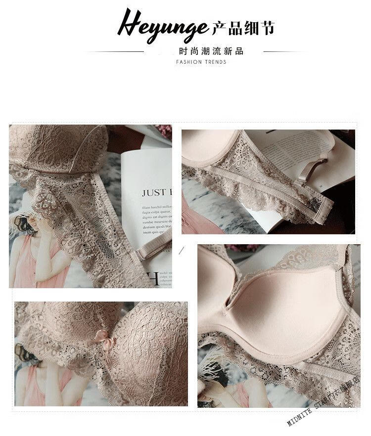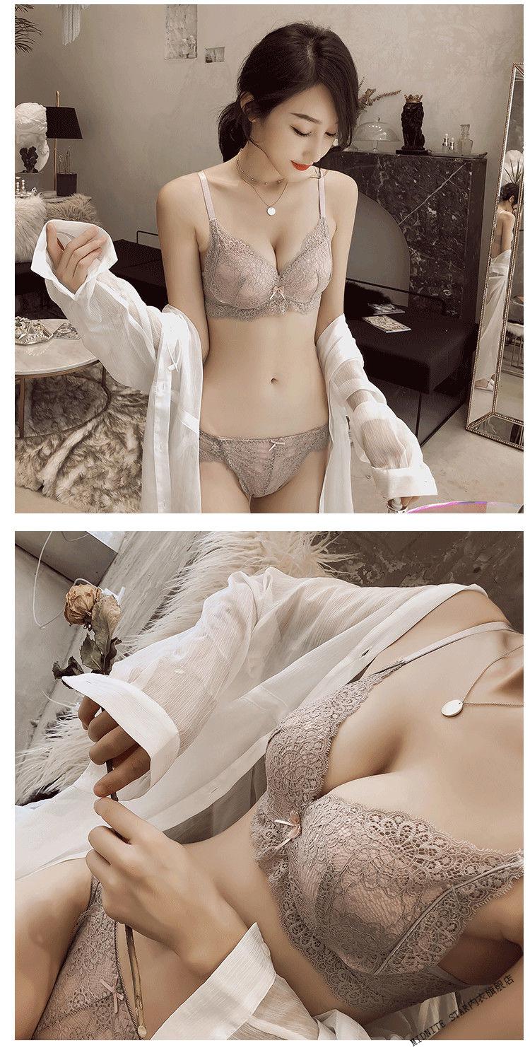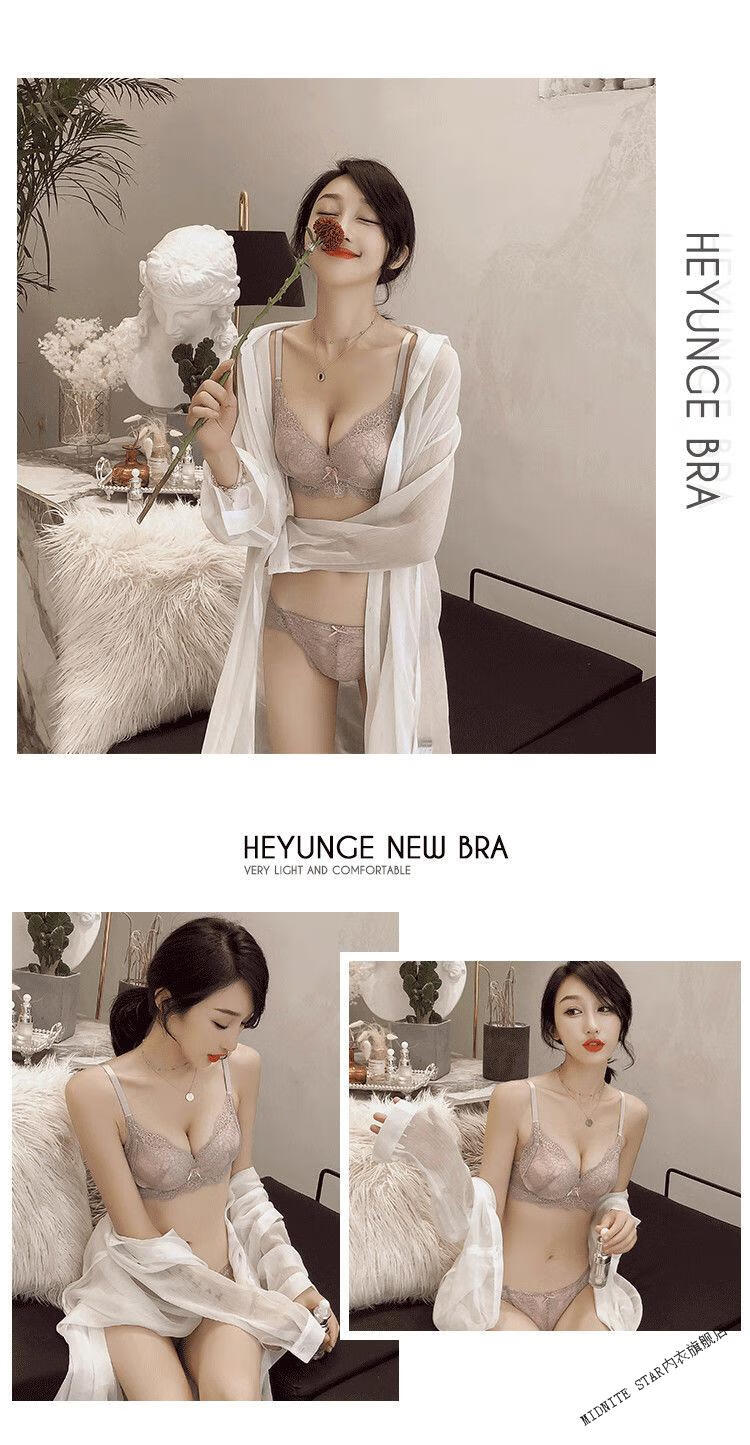 MIDNITE STAR Wireless Underwear Set Women's Small Bra Push-Up Adjustable Sexy Lace Thickened Bra Gray Purple Set 32/70A