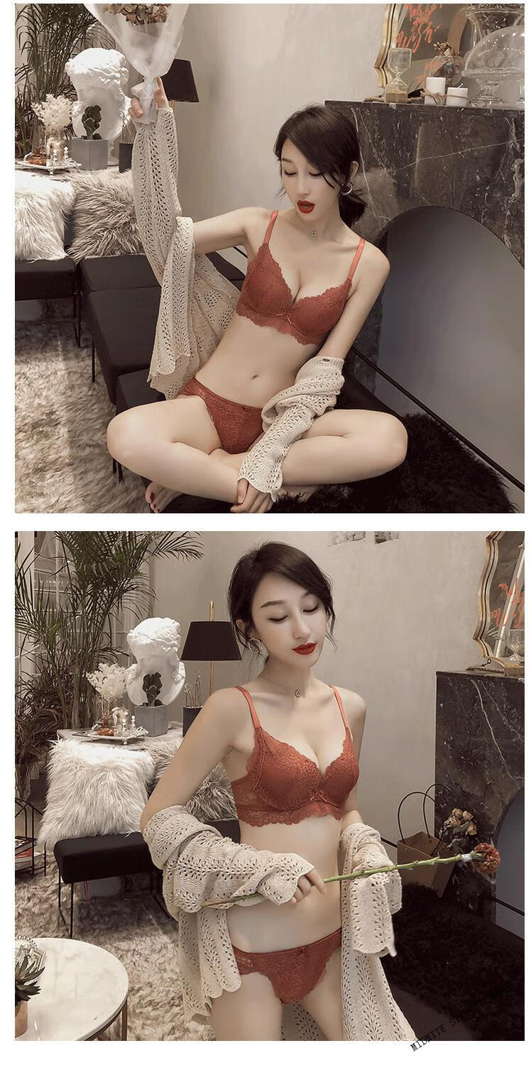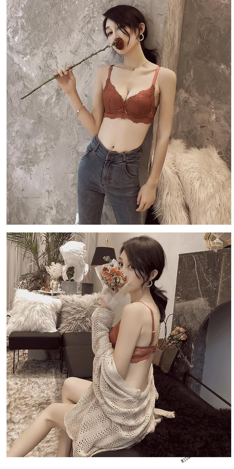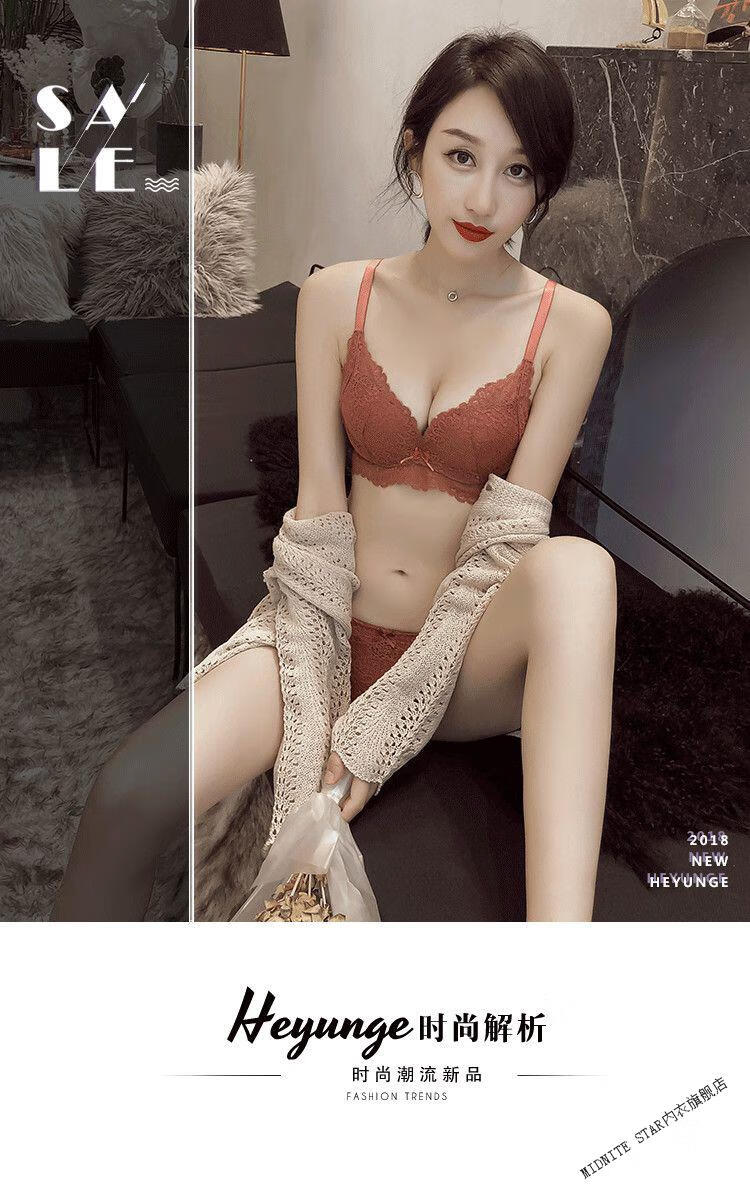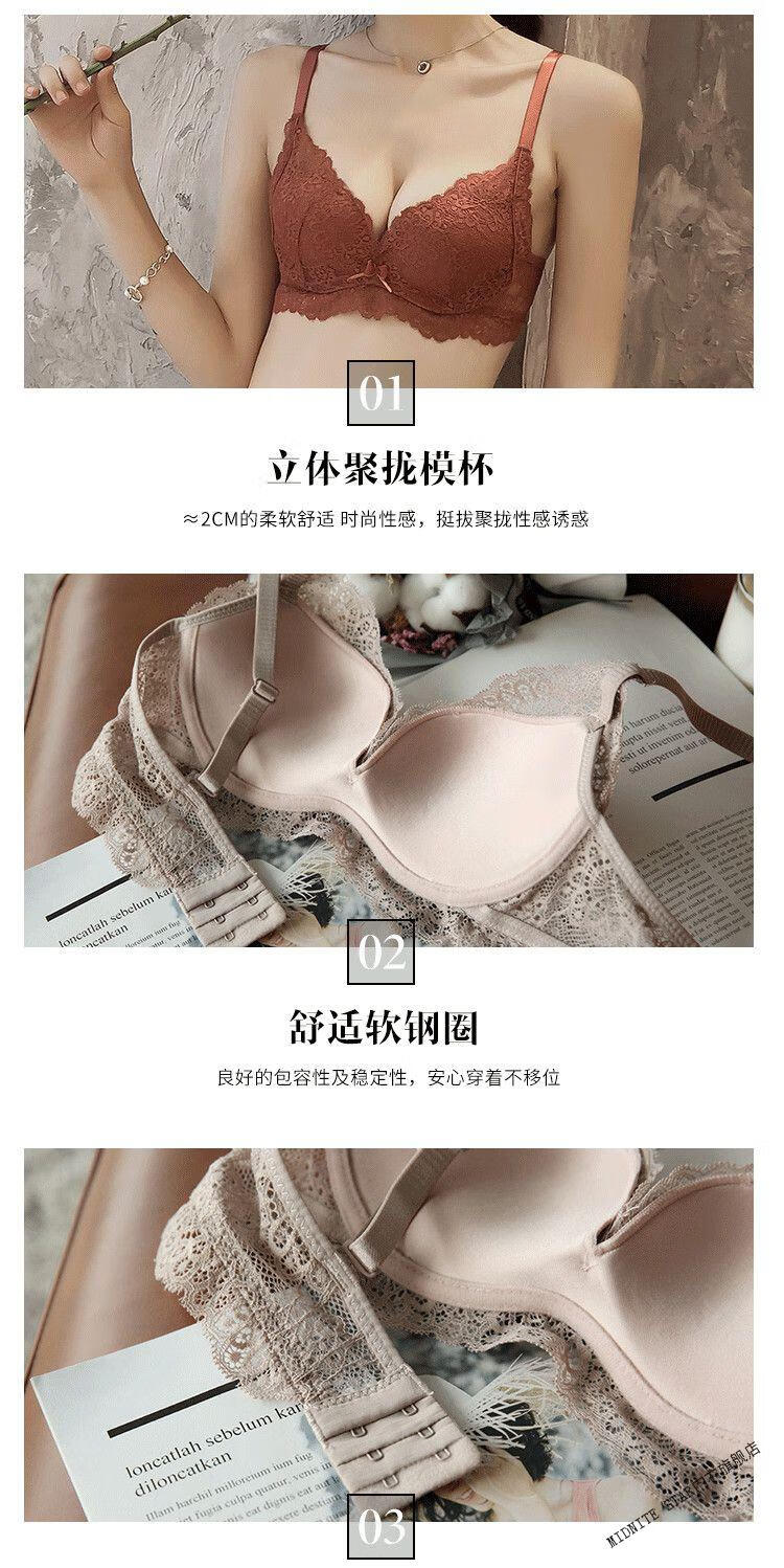 MIDNITE STAR Wireless Underwear Set Women's Small Bra Push-Up Adjustable Sexy Lace Thickened Bra Gray Purple Set 32/70A