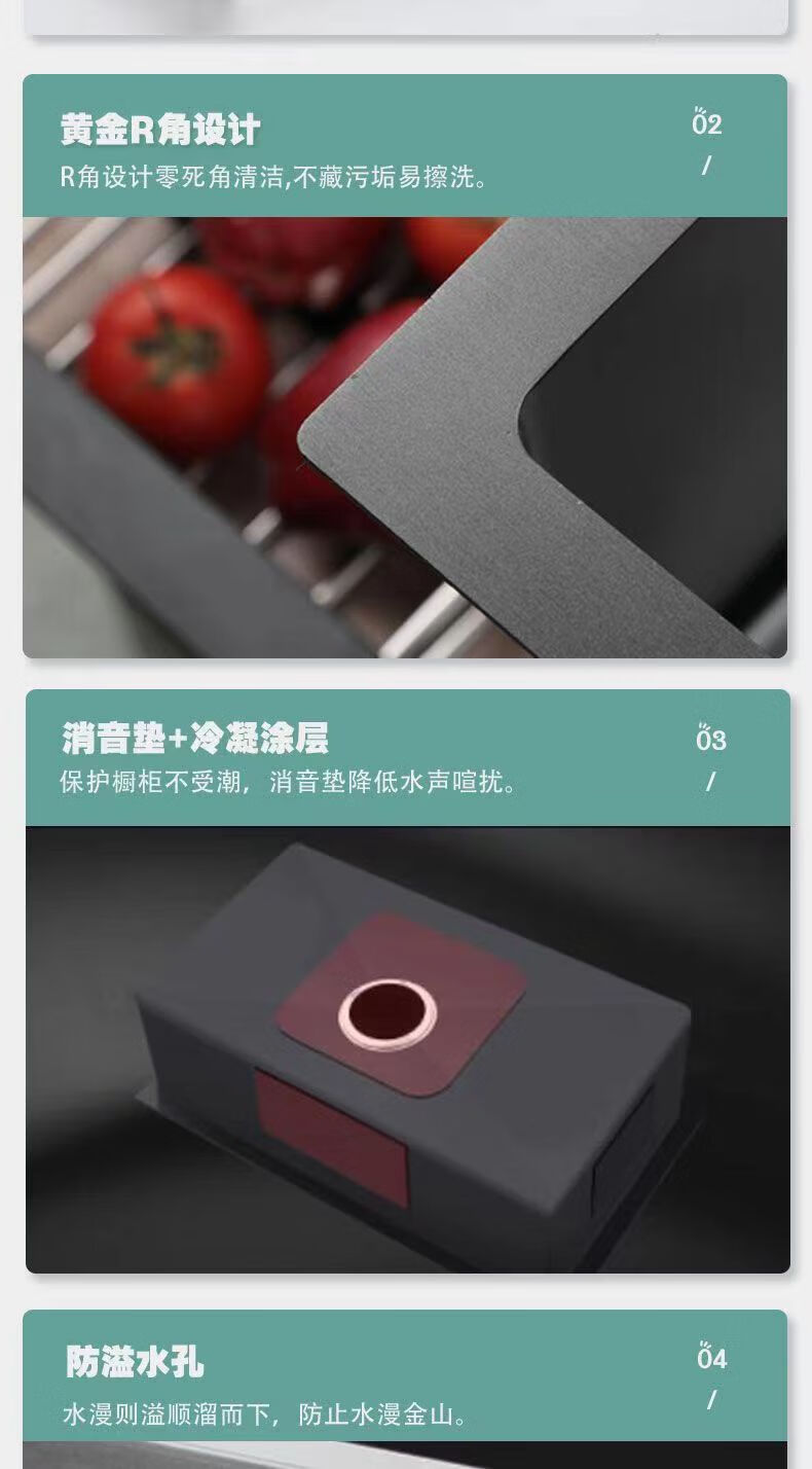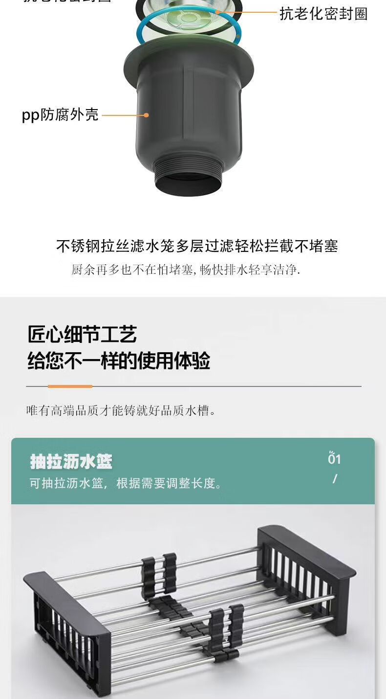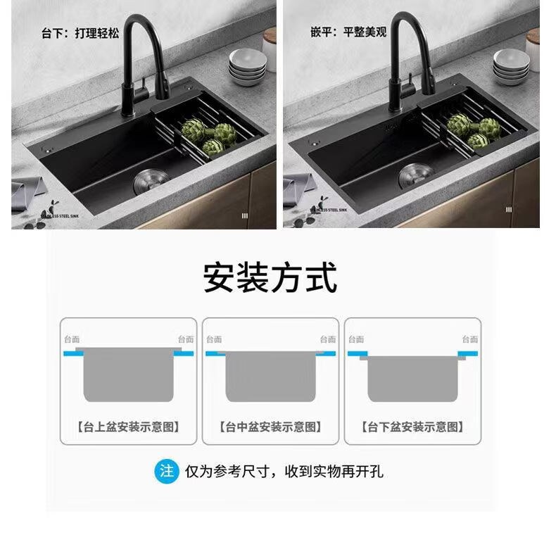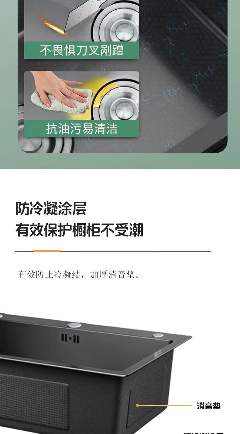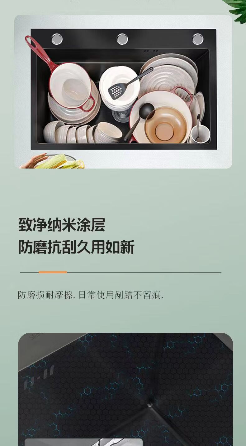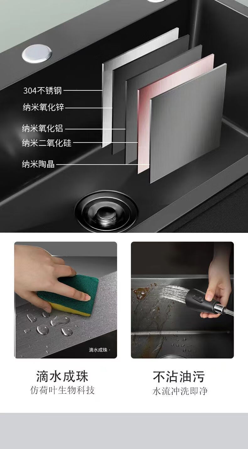 Jiumuwang thickened 304 stainless steel sink large single-slot wash basin home kitchen sink three-hole black nano three-hole basin black 65*45 pull-out faucet package