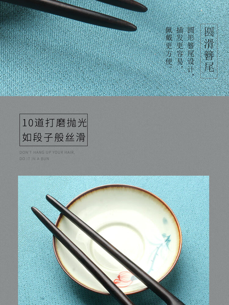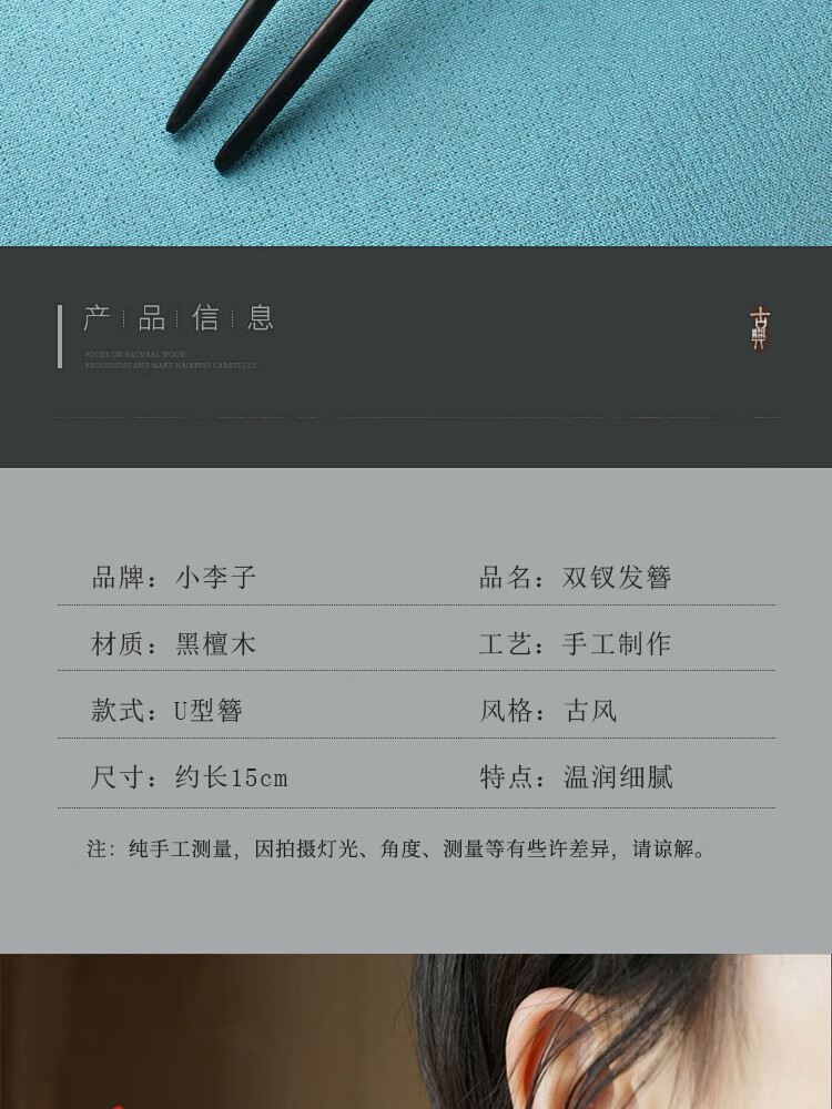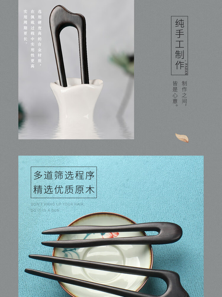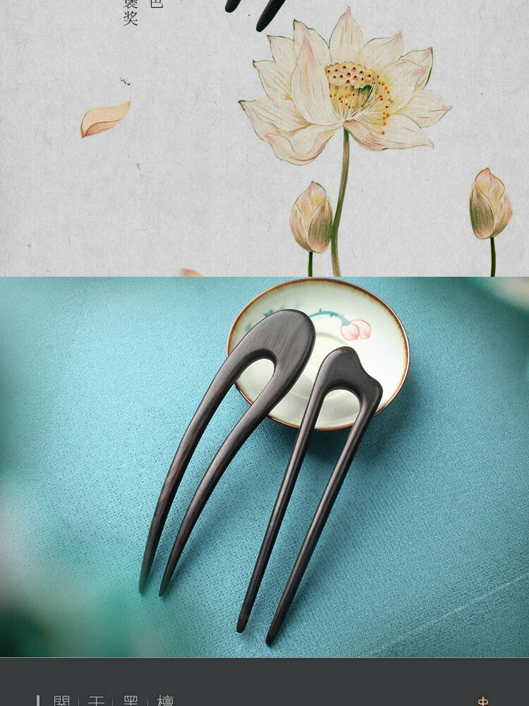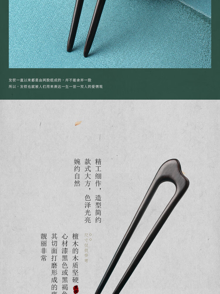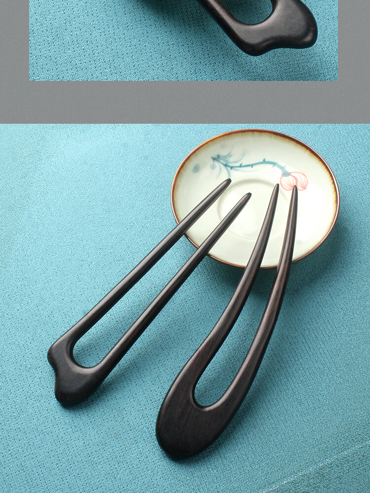 Beautiful wood hairpin U-shaped hairpin sandalwood peachwood double hairpin wooden hairpin ancient style Chinese style Hanfu cheongsam hairpin hairpin black sandalwood phoenix nine double hairpin