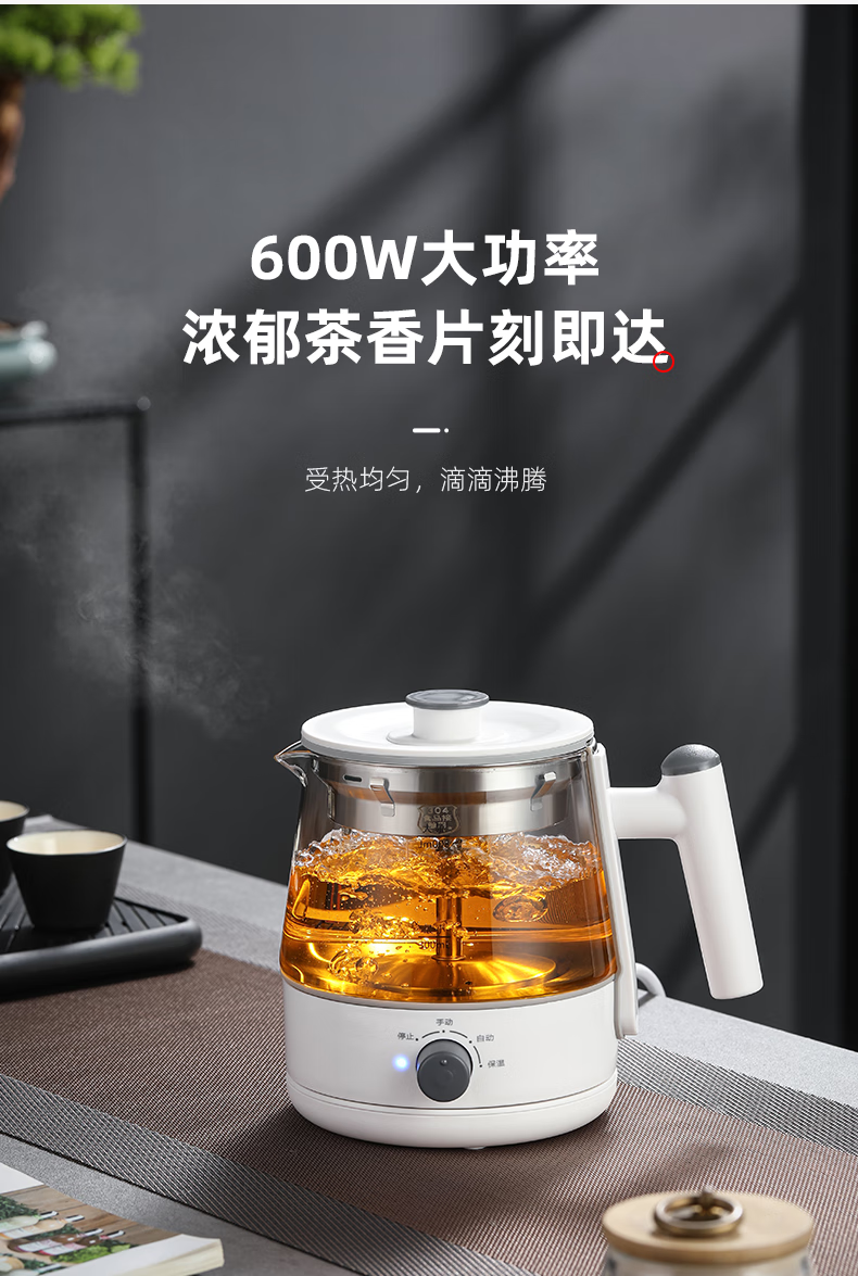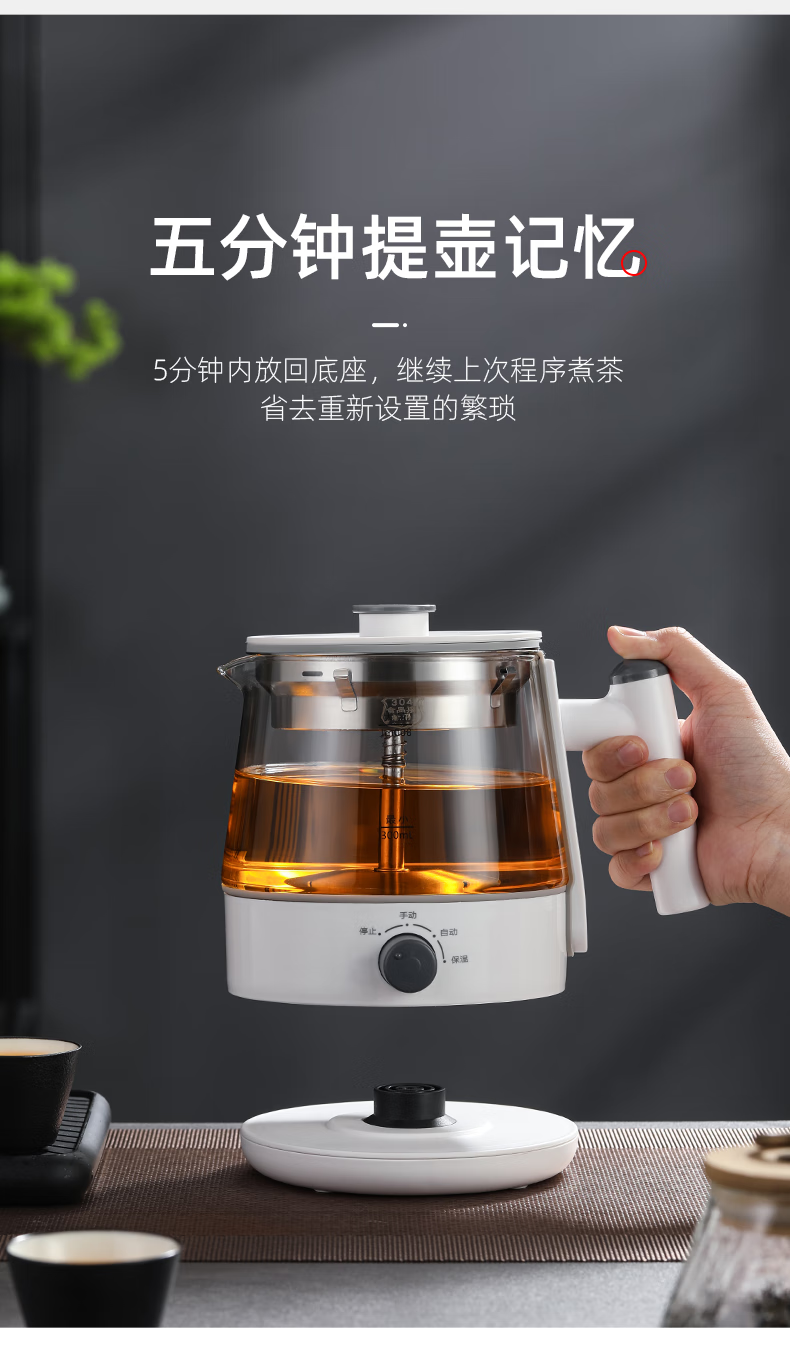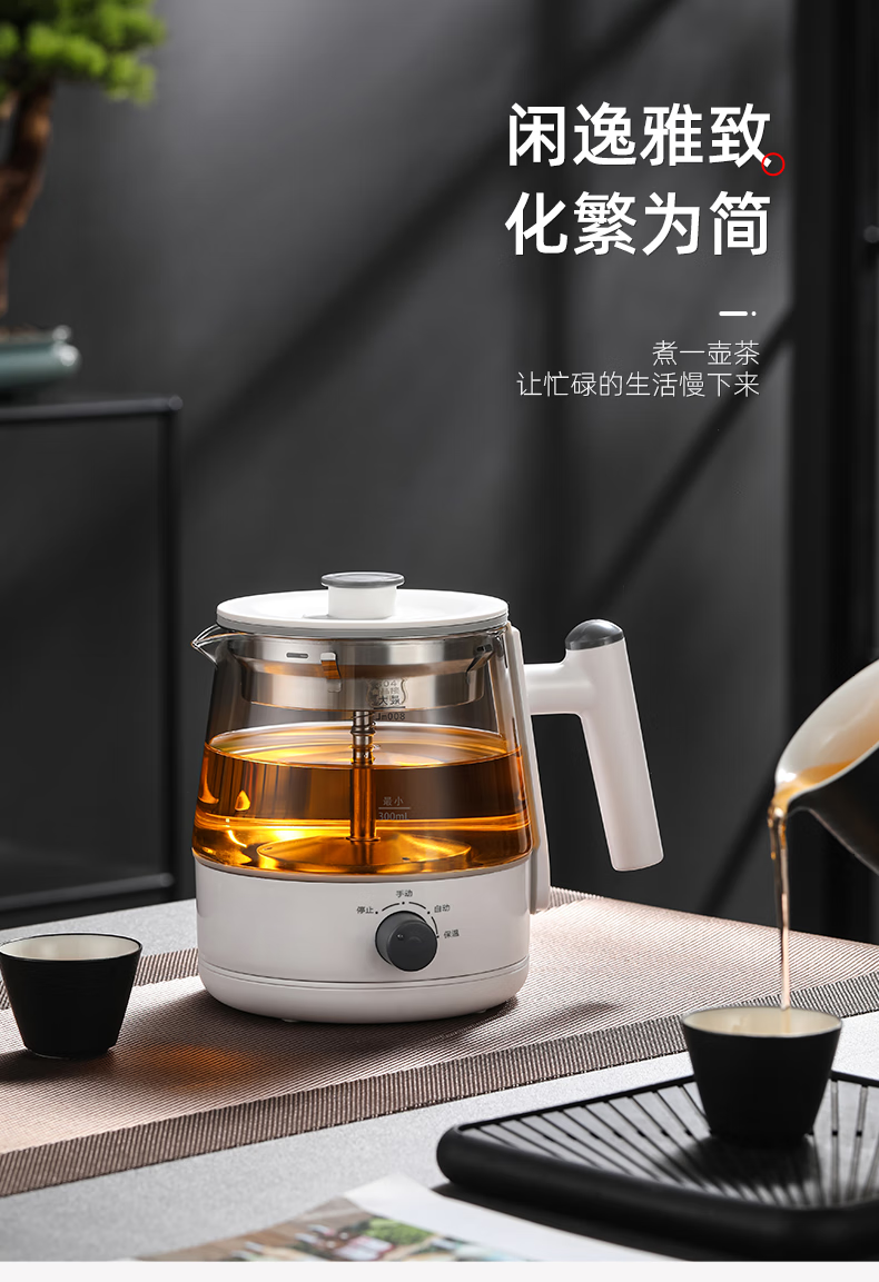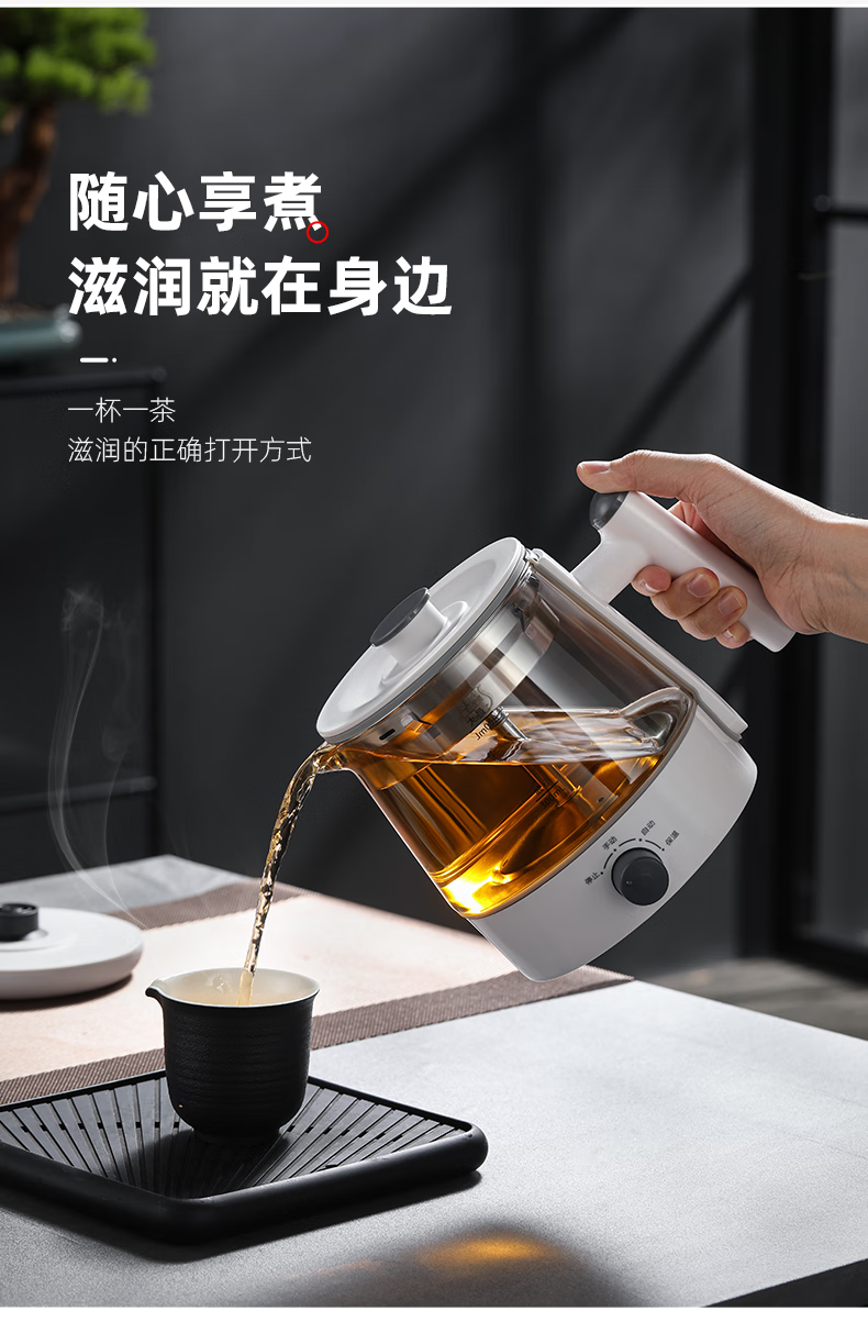 Biooner Tea Maker Spray Type Tea Maker Flower Teapot Health Pot Mini Electric Kettle Office Kettle Integrated Insulation Black Tea Steamer Tea Set White (Split Knob Model) 0.8L