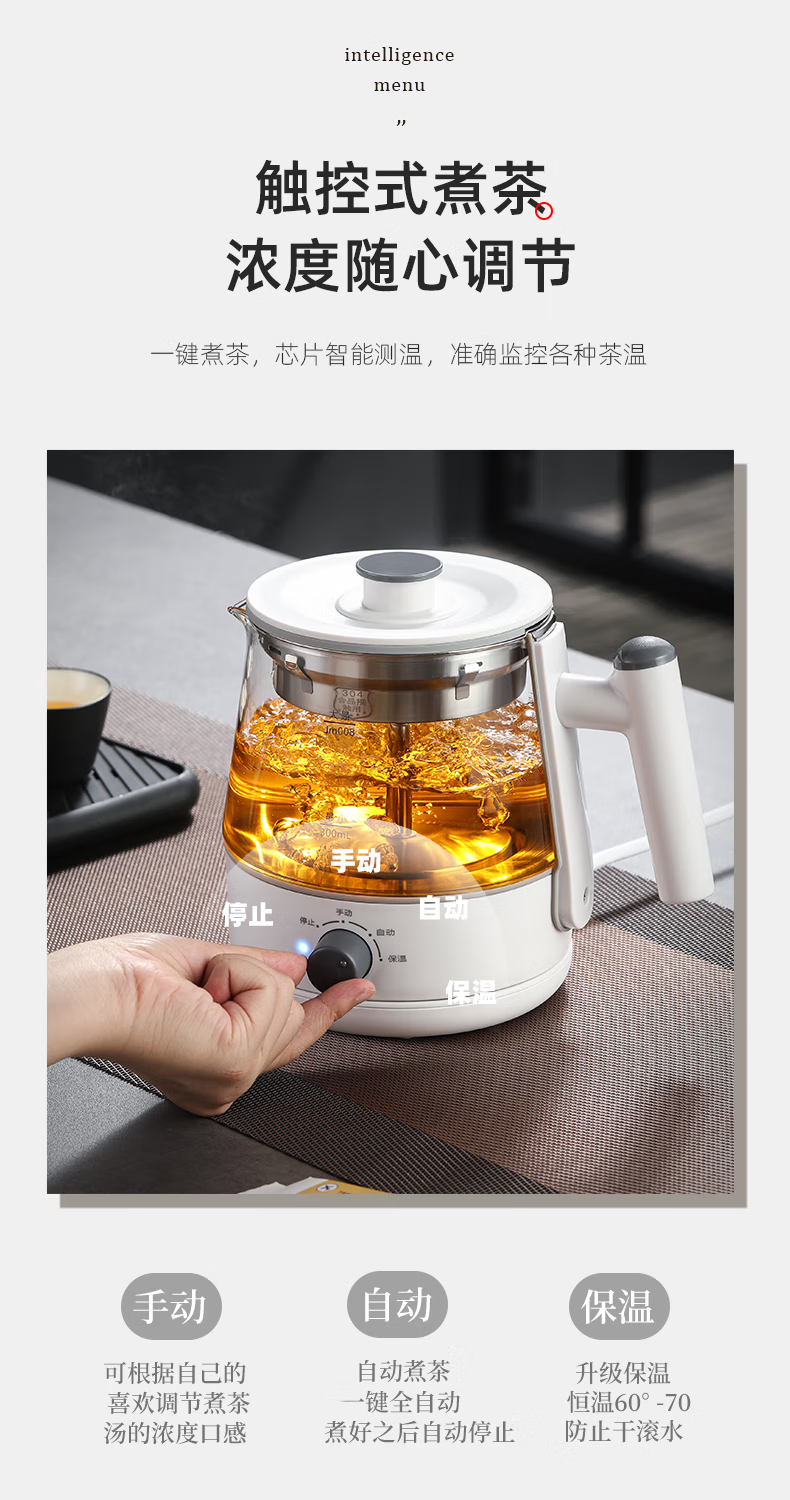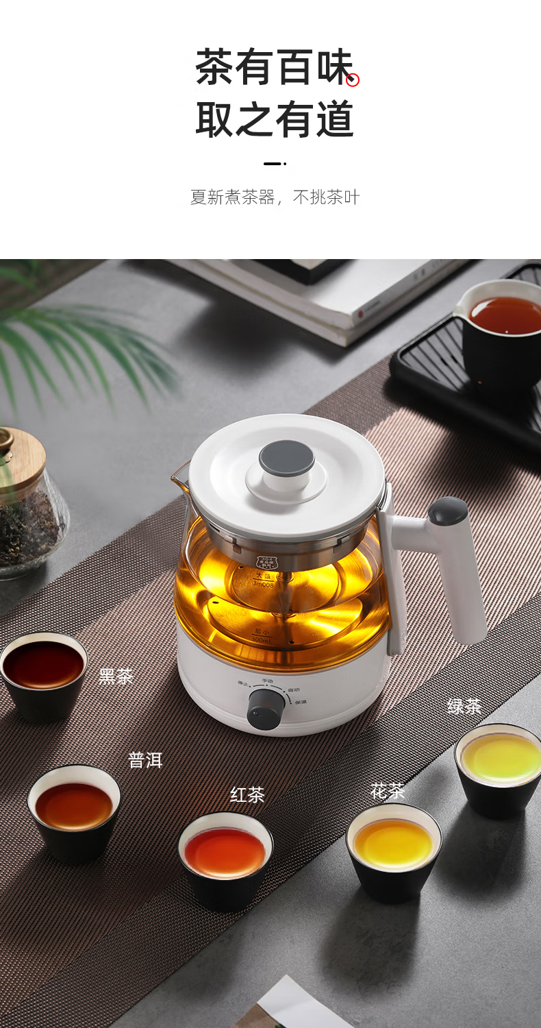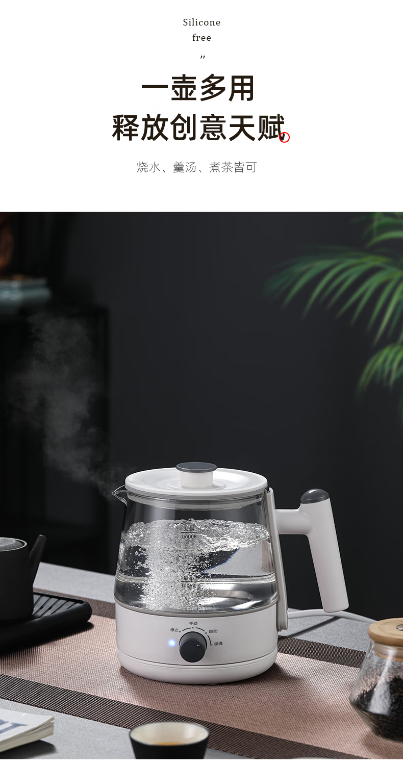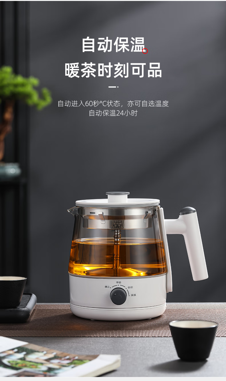 Biooner Tea Maker Spray Type Tea Maker Flower Teapot Health Pot Mini Electric Kettle Office Kettle Integrated Insulation Black Tea Steamer Tea Set White (Split Knob Model) 0.8L