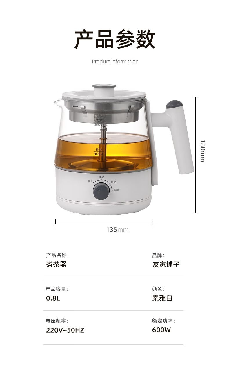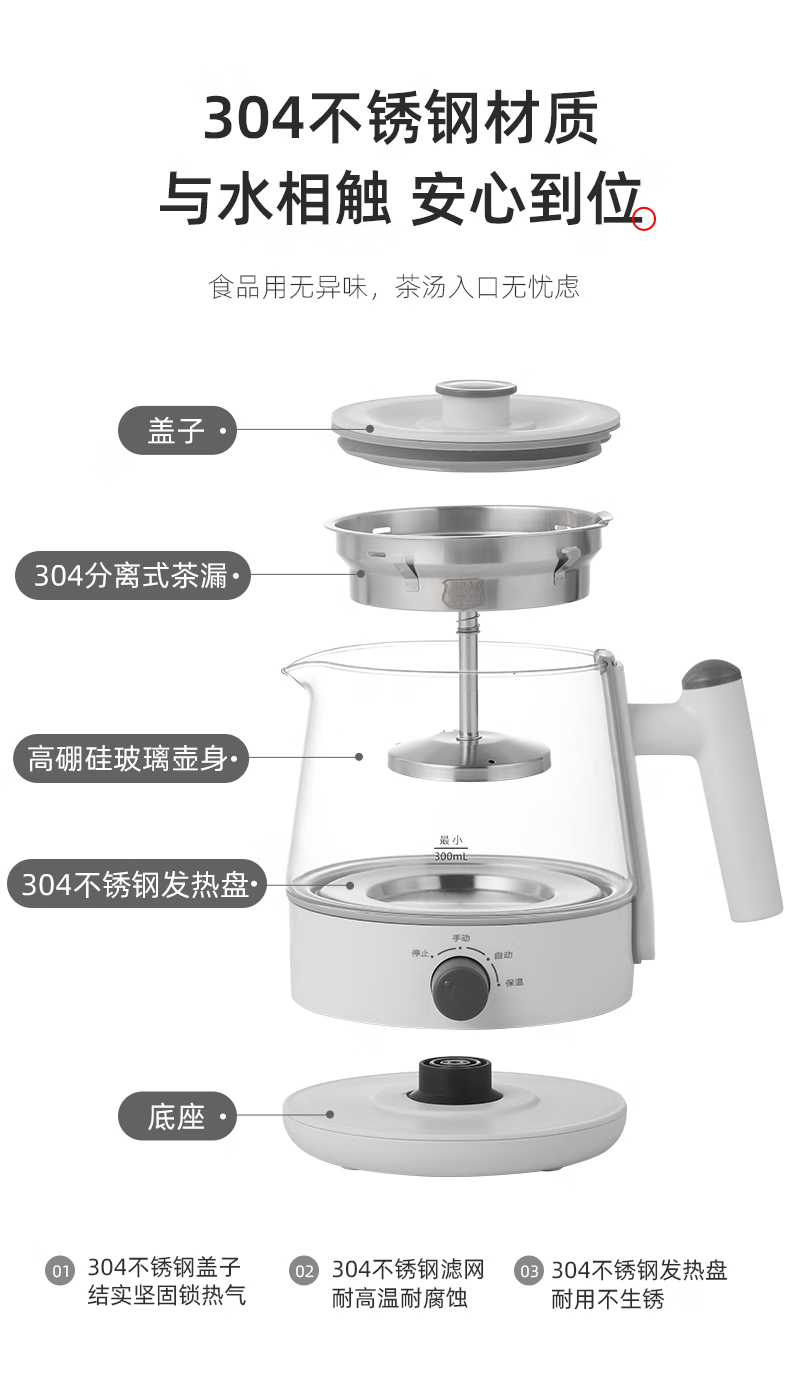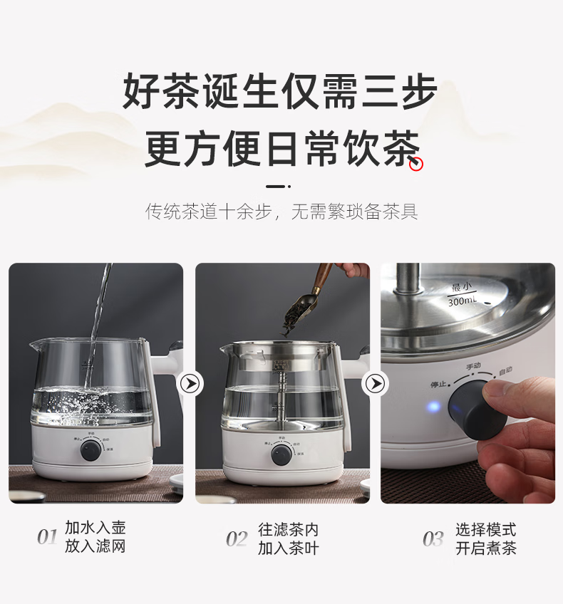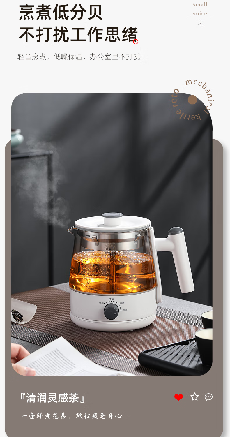Biooner Tea Maker Spray Type Tea Maker Flower Teapot Health Pot Mini Electric Kettle Office Kettle Integrated Insulation Black Tea Steamer Tea Set White (Split Knob Model) 0.8L
