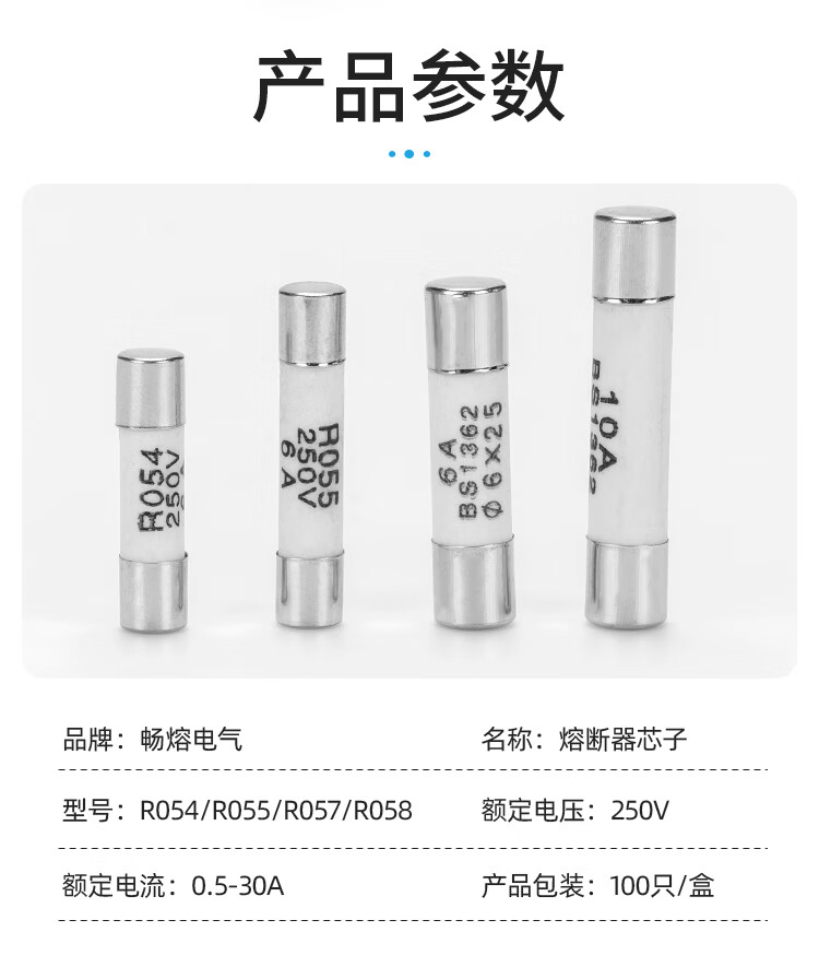 600V. Ceramic fuse tube R054/55/57/58 fuse core 5*20/5*25/6*25/6*30 R057 6*25 1A 100 pieces/box 600V