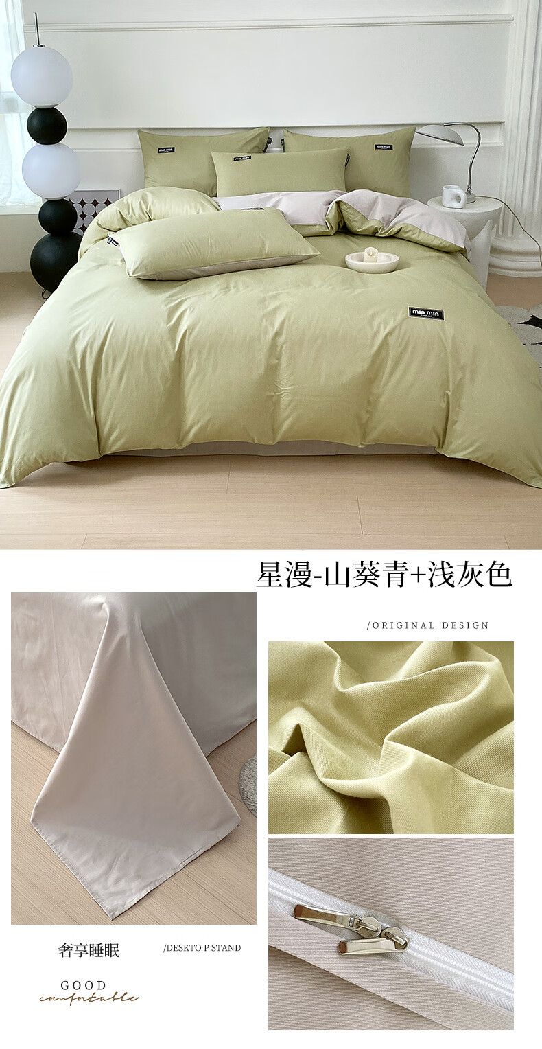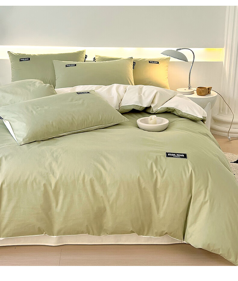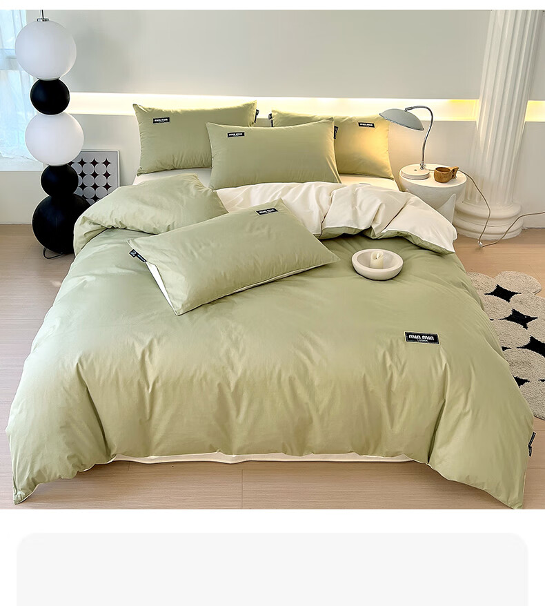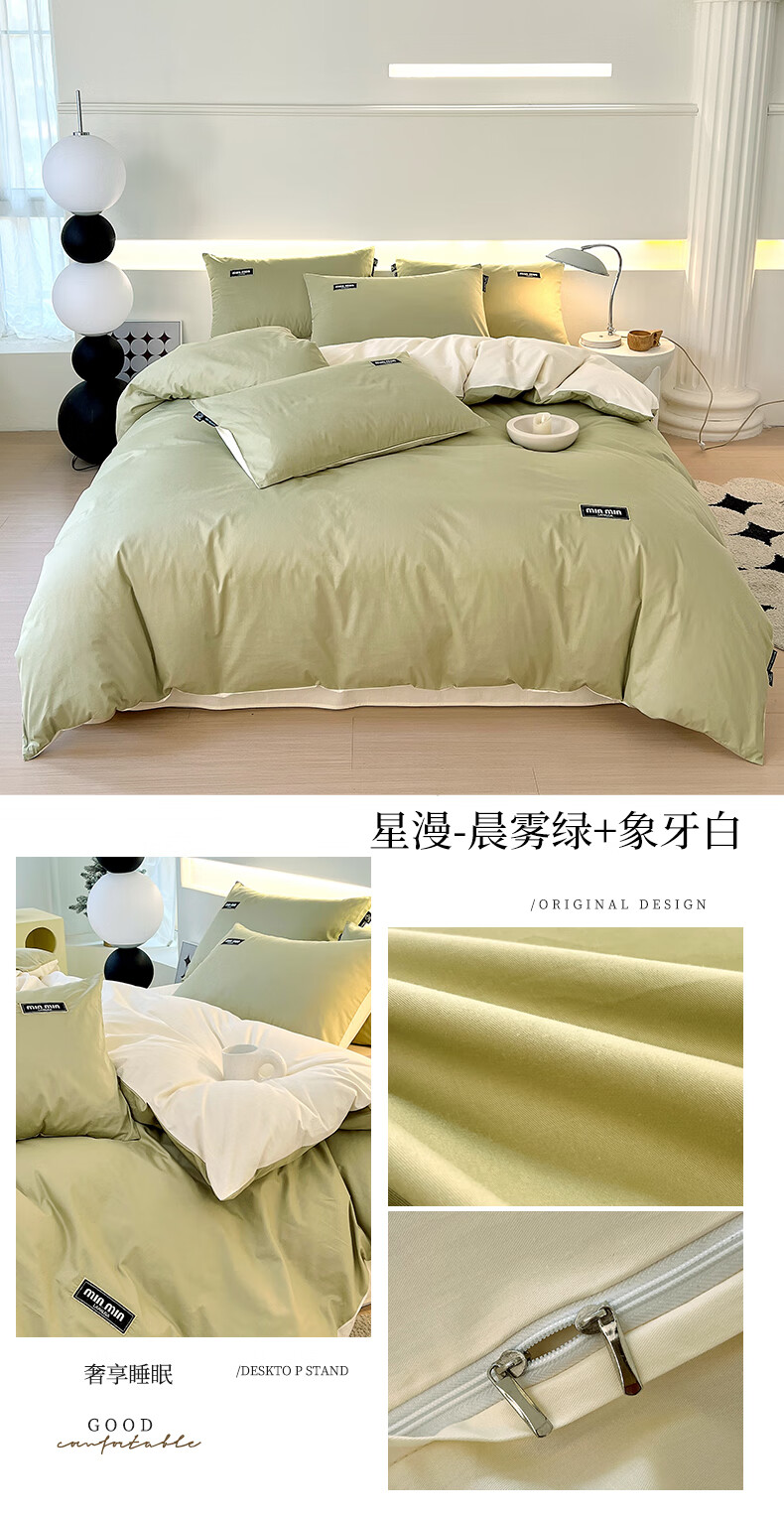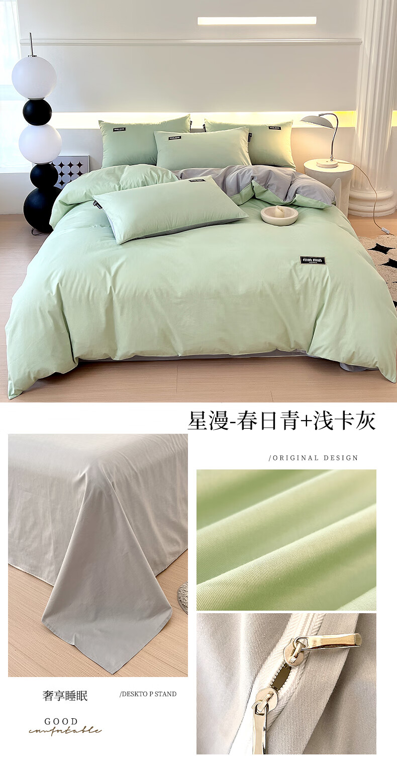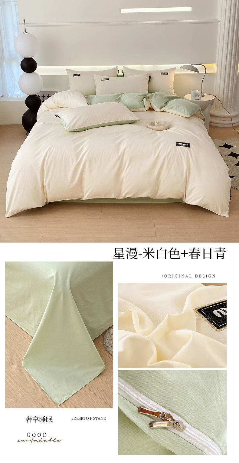 Mercury series home textiles 180 count long-staple cotton four-piece set pure cotton 100% cotton sheet quilt cover simple fitted sheet three-piece bedding set Xingman-off-white + spring green 100% cotton bed sheet style 180*200 single quilt cover 100% cotton