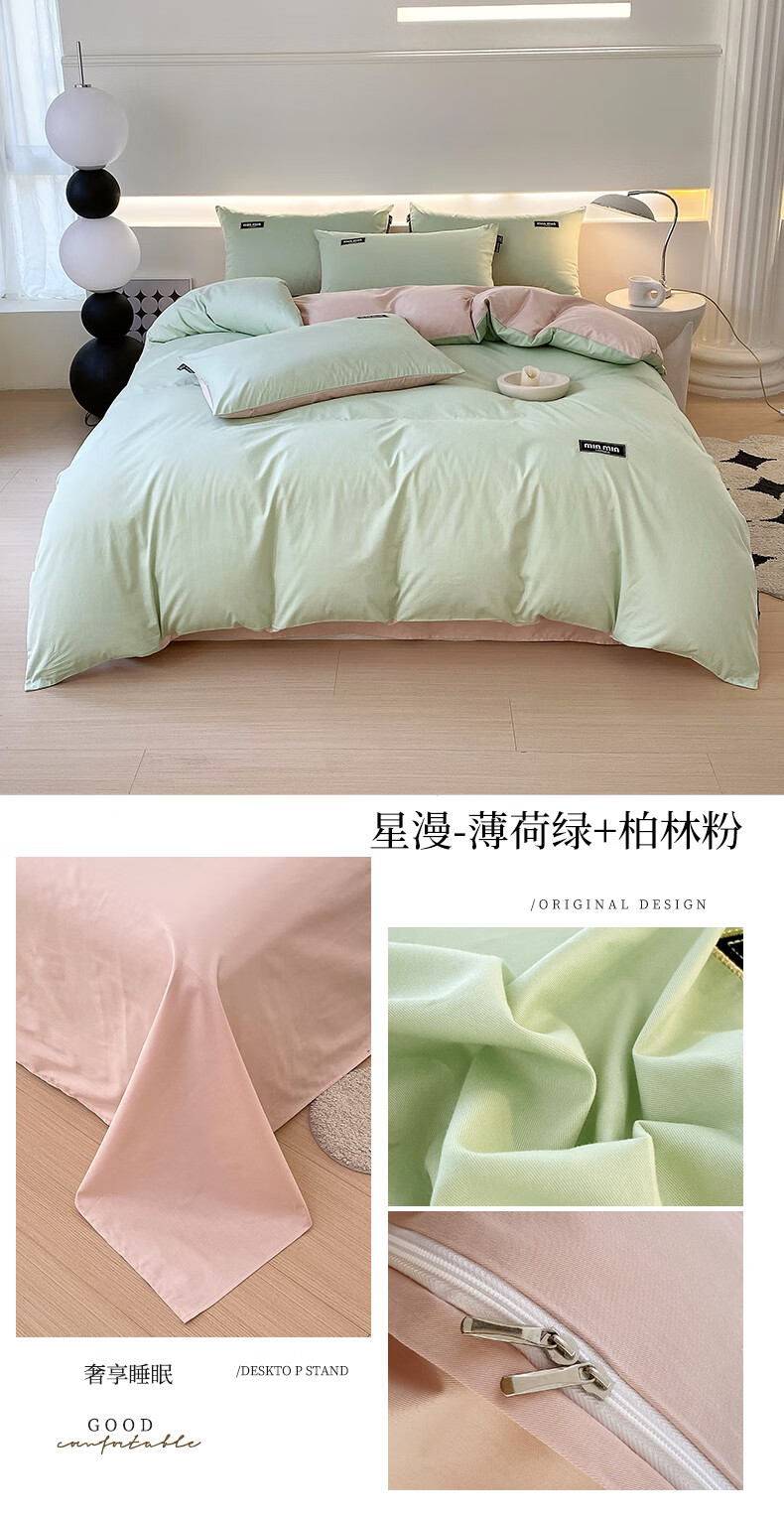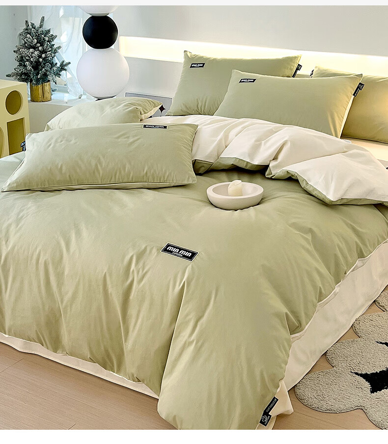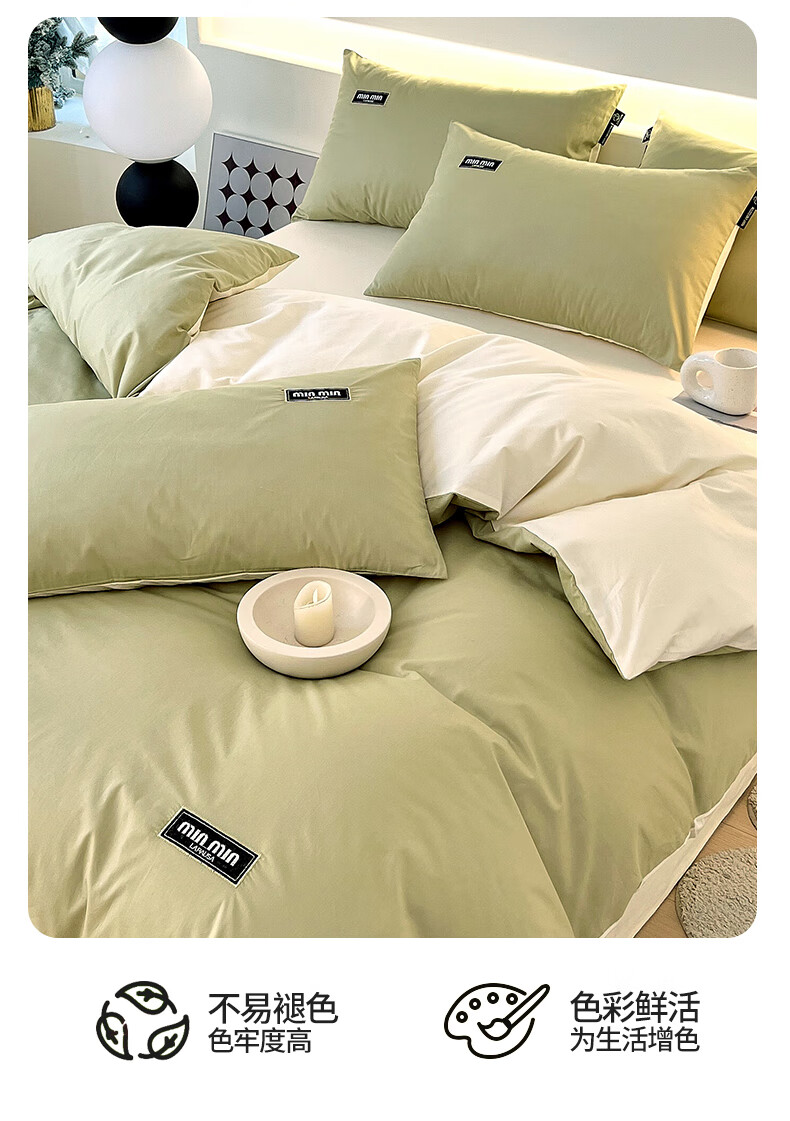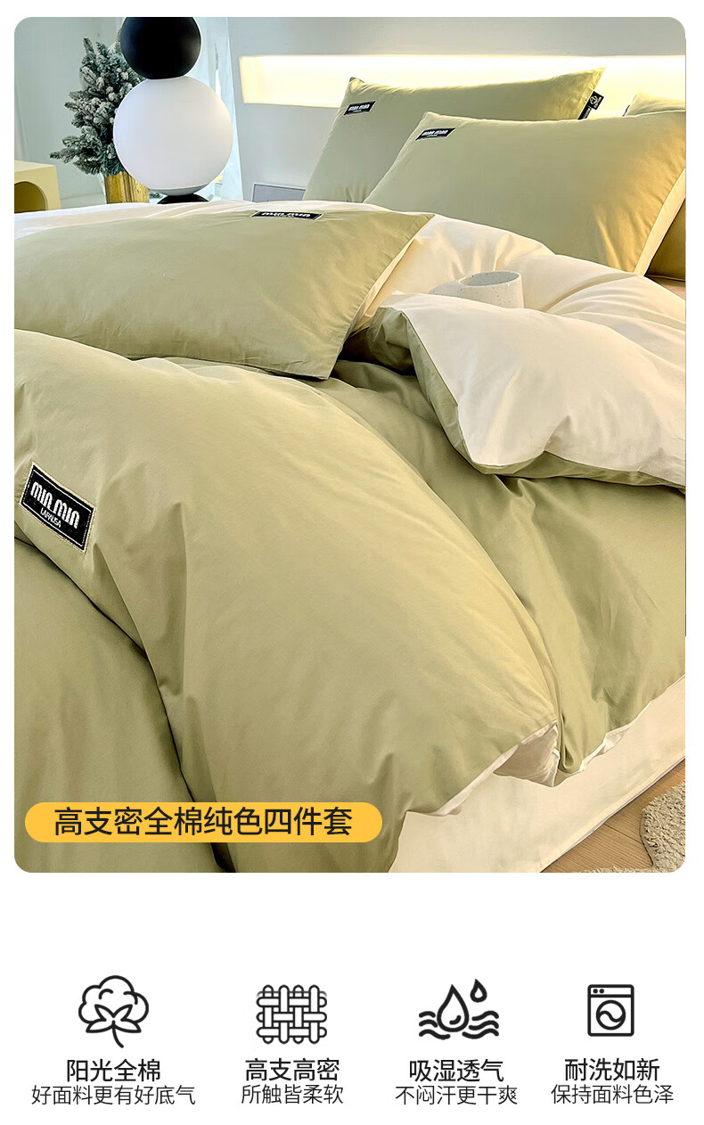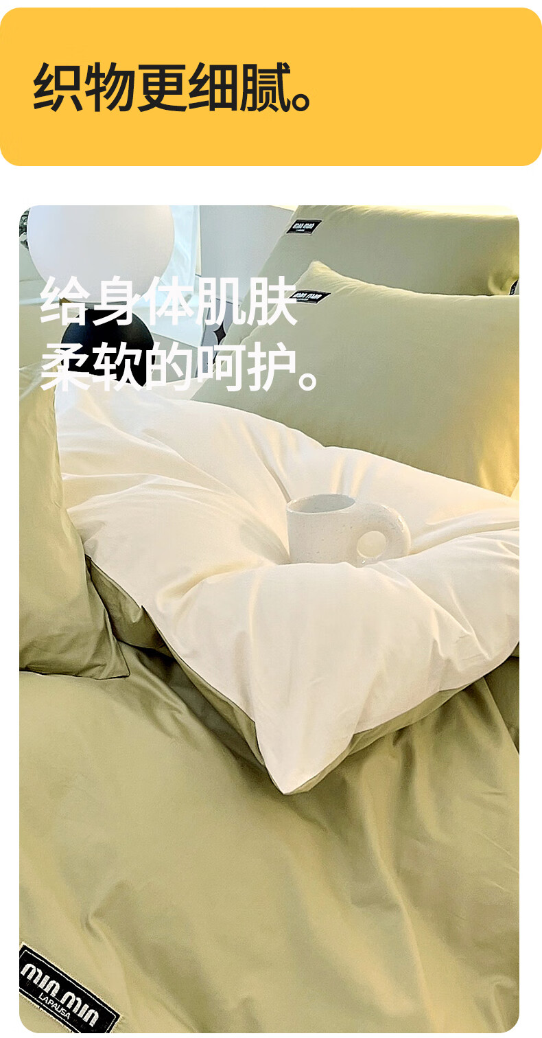 Mercury series home textiles 180 count long-staple cotton four-piece set pure cotton 100% cotton sheet quilt cover simple fitted sheet three-piece bedding set Xingman-off-white + spring green 100% cotton bed sheet style 180*200 single quilt cover 100% cotton