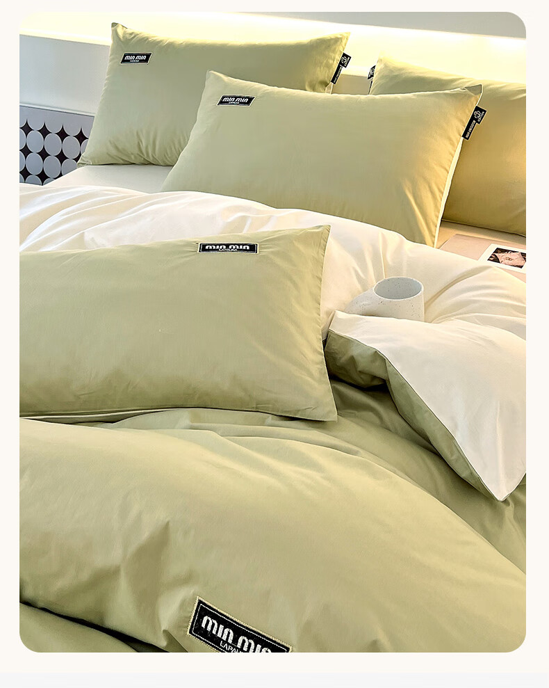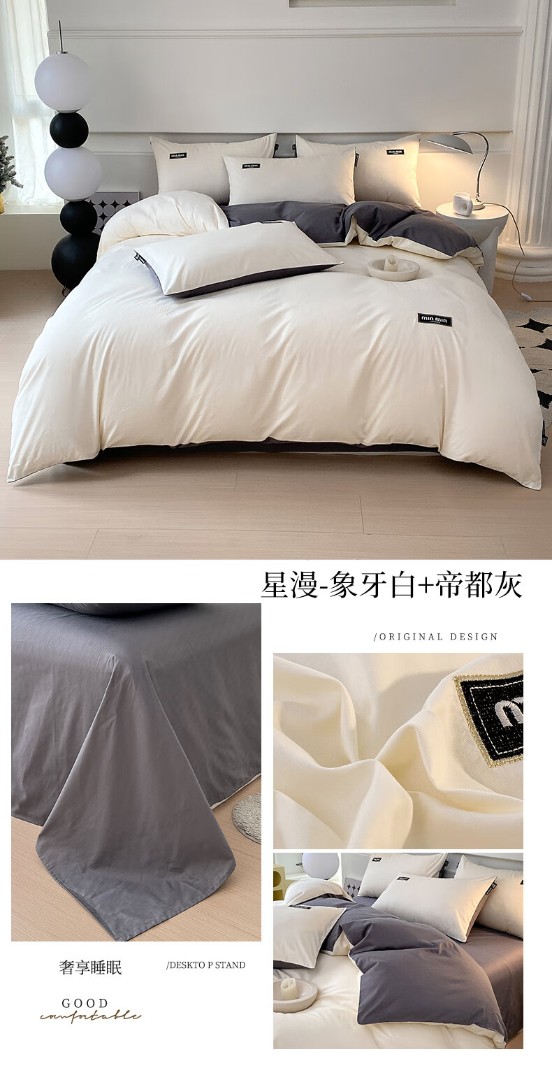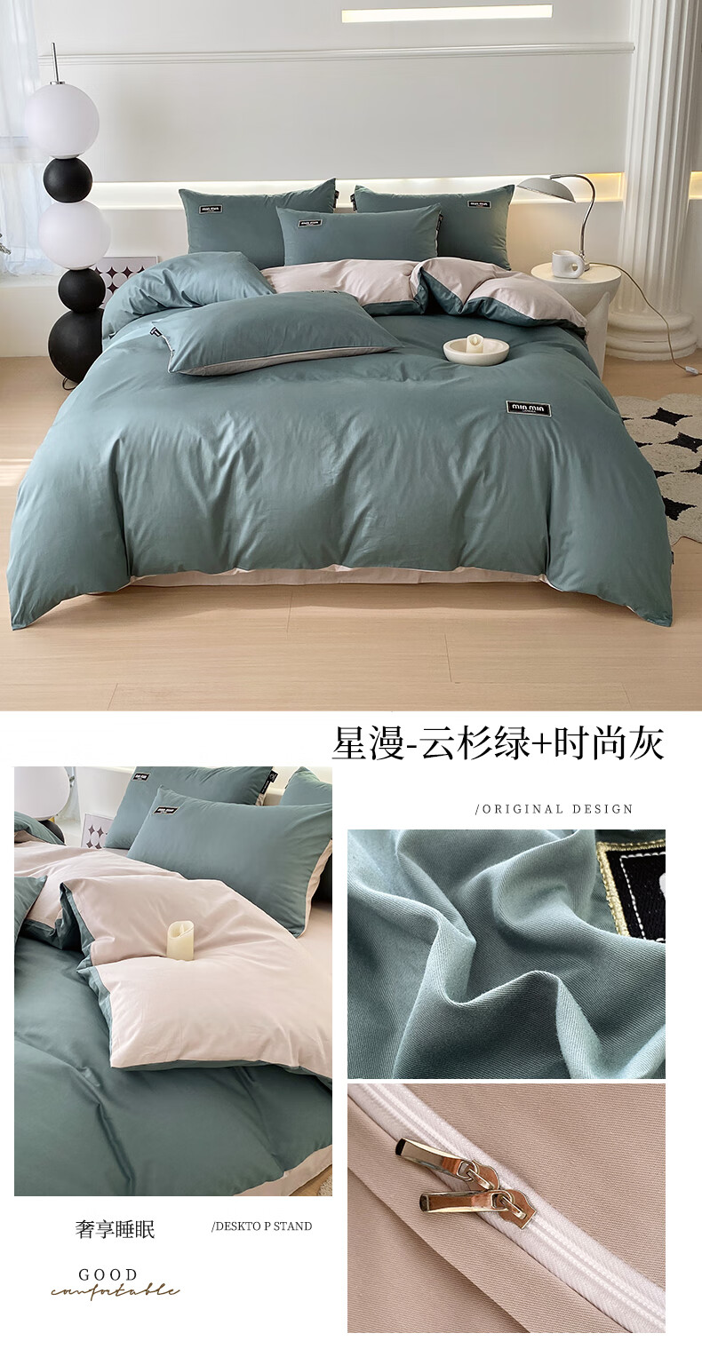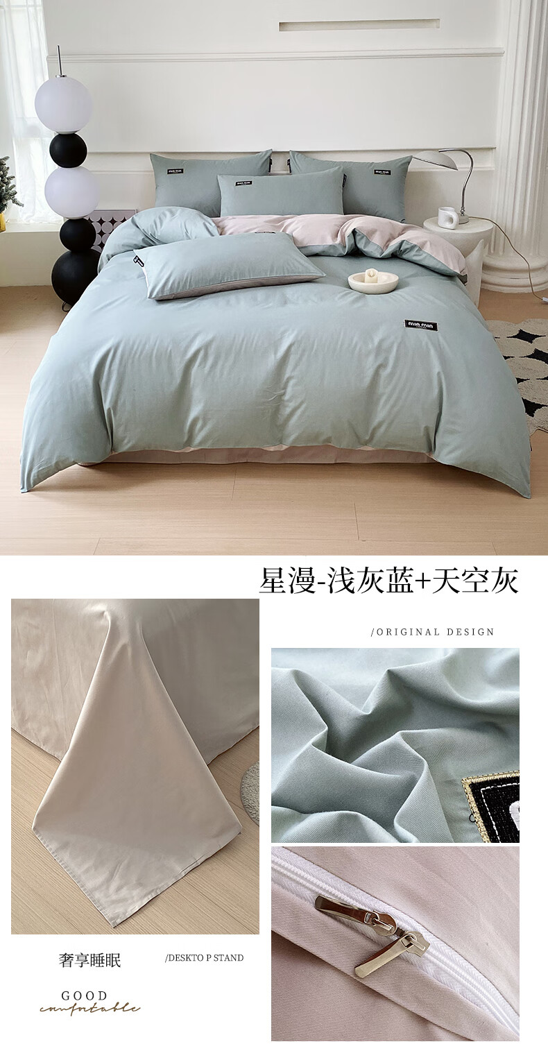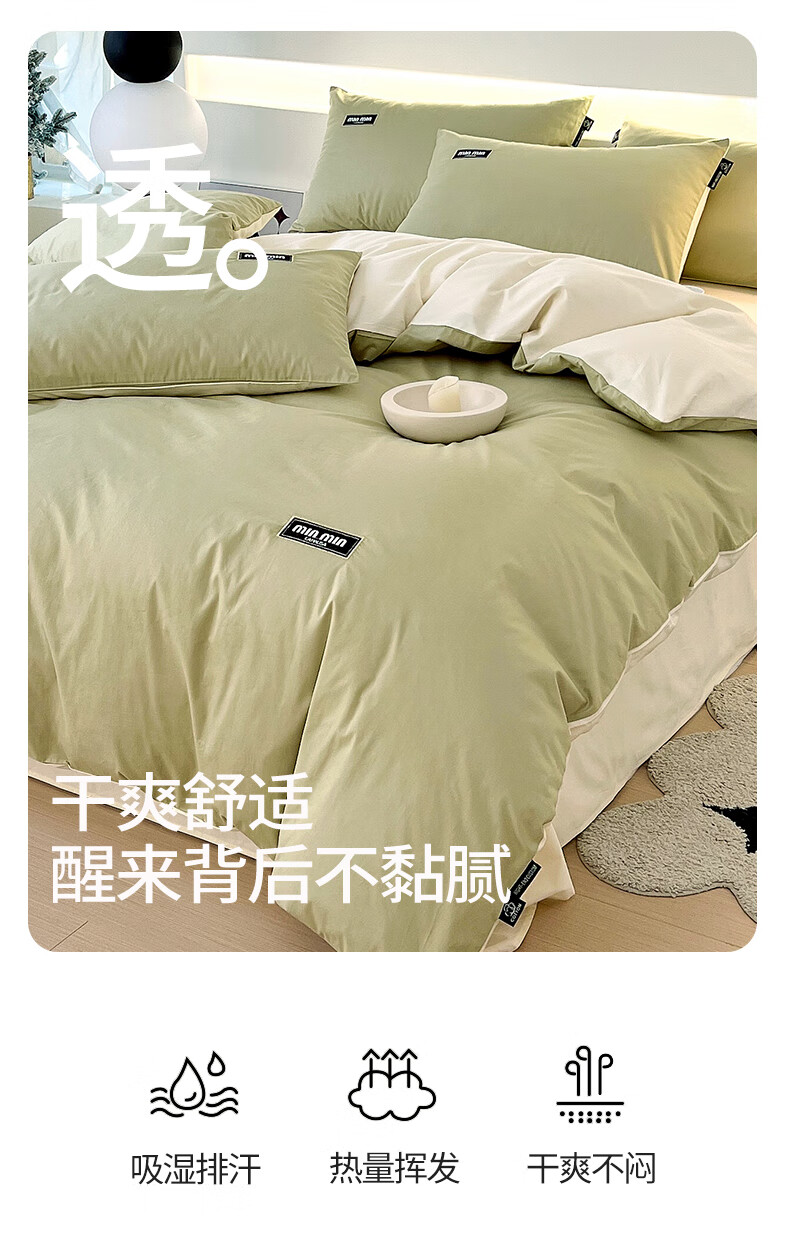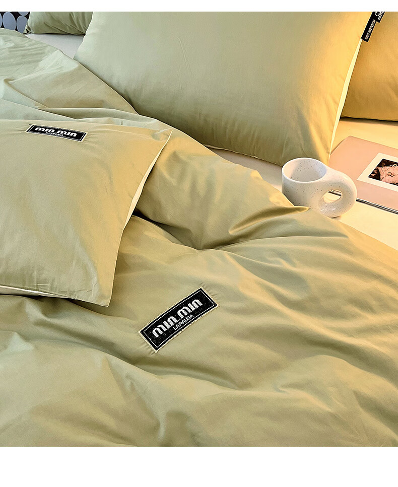 Mercury series home textiles 180 count long-staple cotton four-piece set pure cotton 100% cotton sheet quilt cover simple fitted sheet three-piece bedding set Xingman-off-white + spring green 100% cotton bed sheet style 180*200 single quilt cover 100% cotton