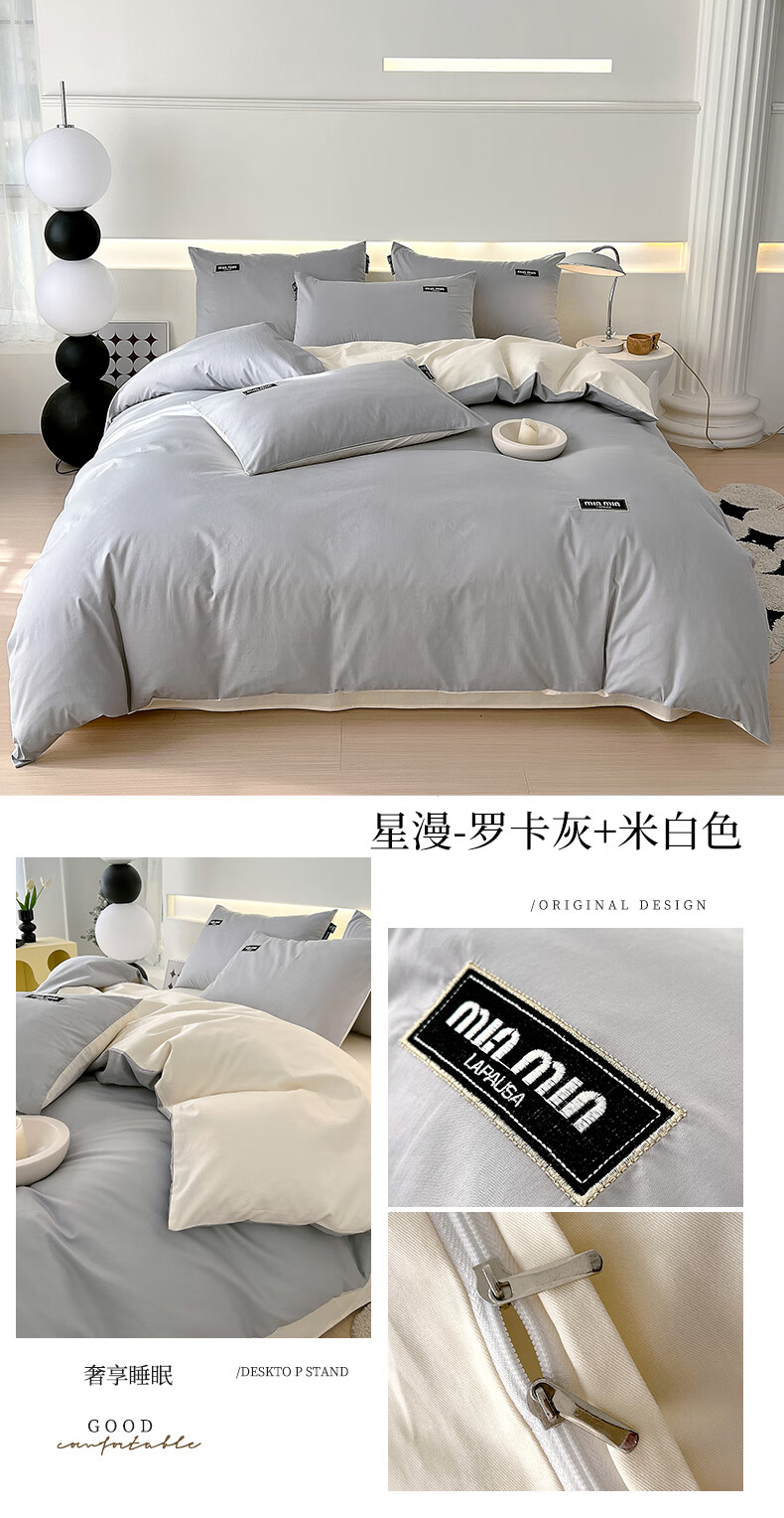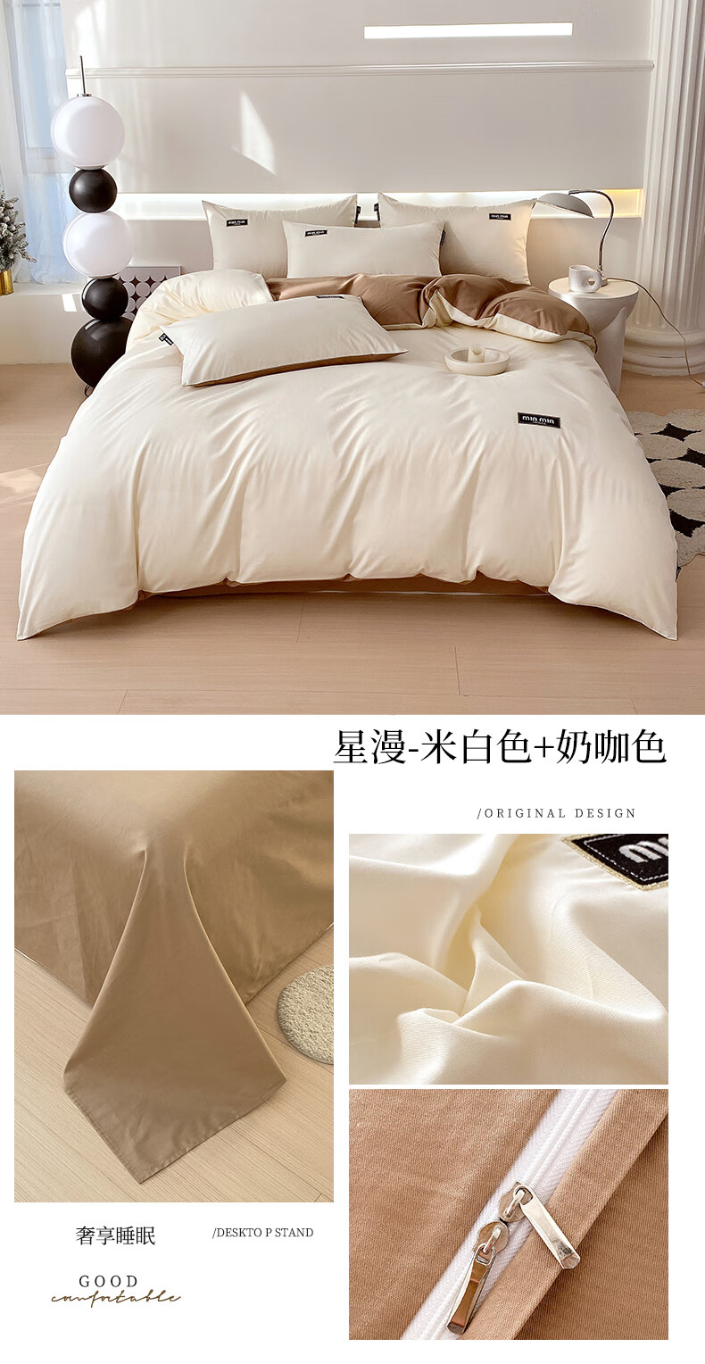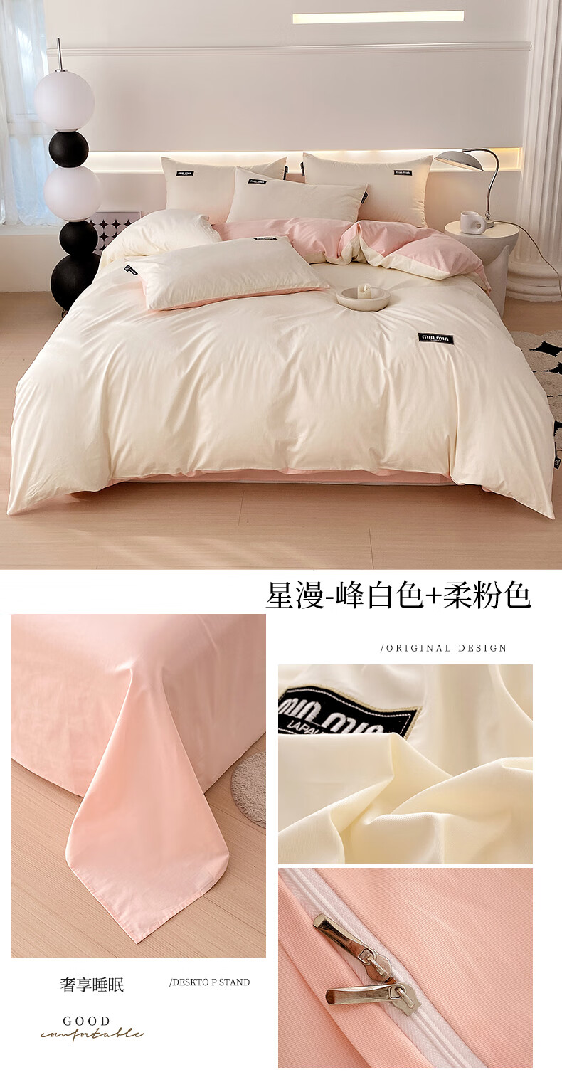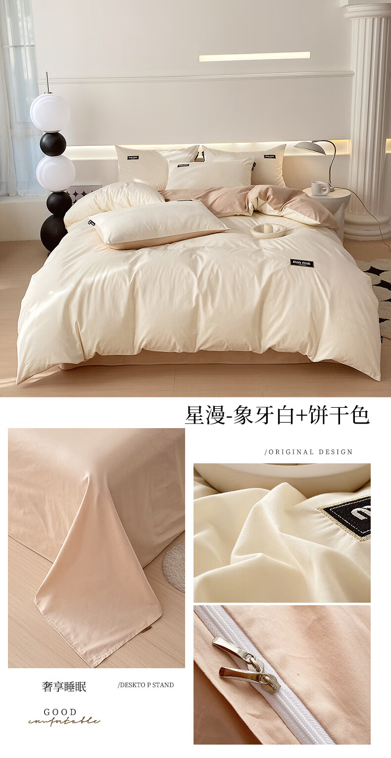 Mercury series home textiles 180 count long-staple cotton four-piece set pure cotton 100% cotton sheet quilt cover simple fitted sheet three-piece bedding set Xingman-off-white + spring green 100% cotton bed sheet style 180*200 single quilt cover 100% cotton