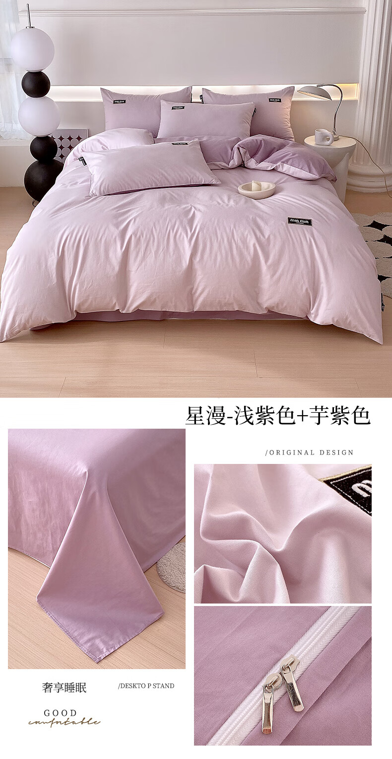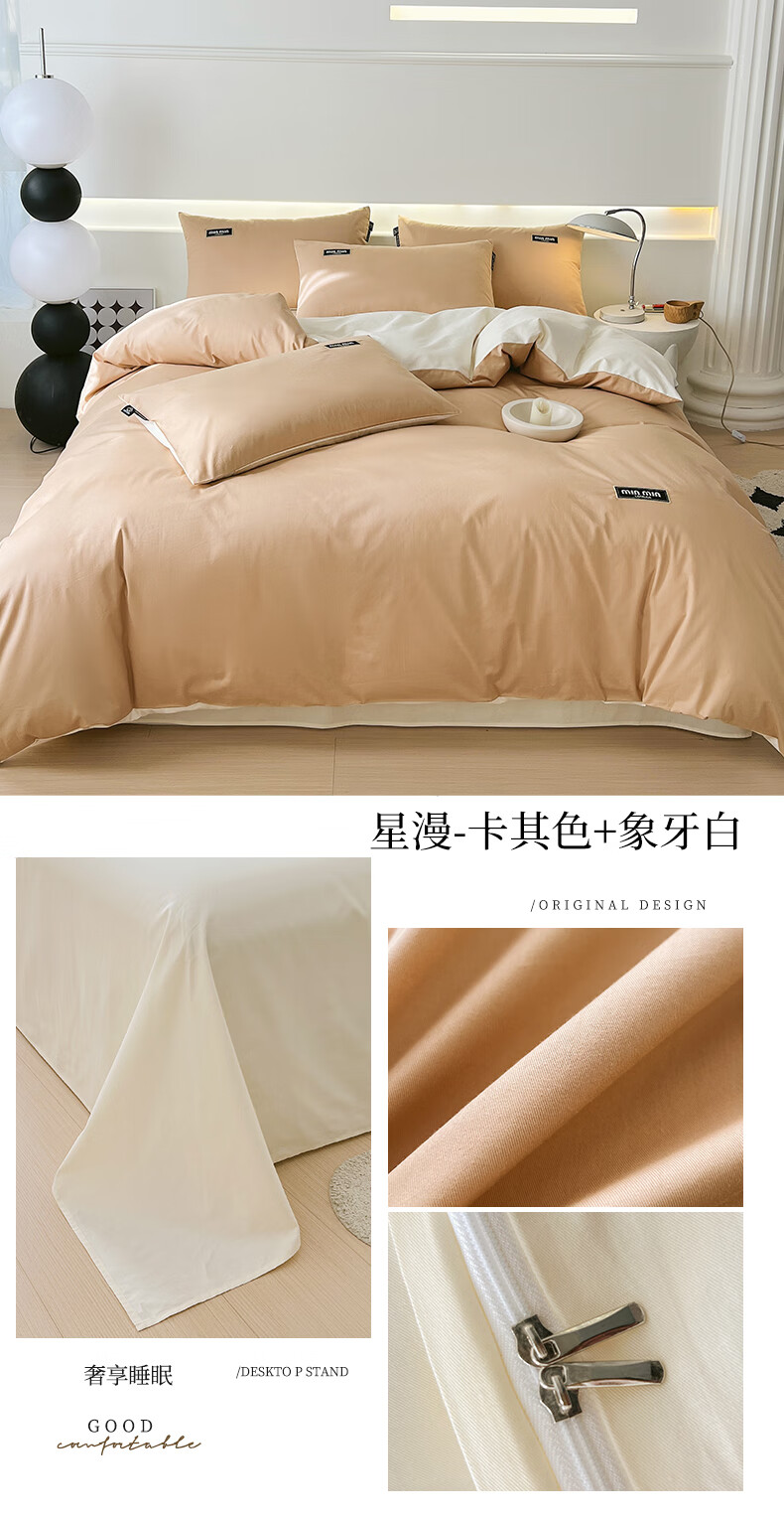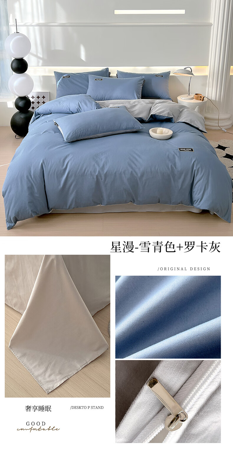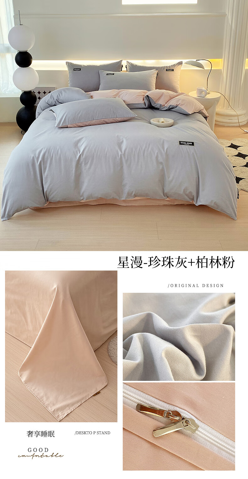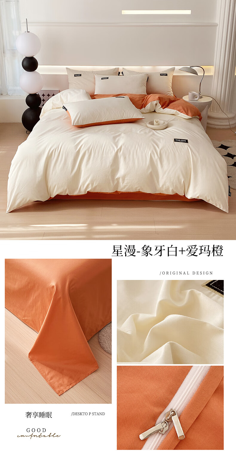 Mercury series home textiles 180 count long-staple cotton four-piece set pure cotton 100% cotton sheet quilt cover simple fitted sheet three-piece bedding set Xingman-off-white + spring green 100% cotton bed sheet style 180*200 single quilt cover 100% cotton