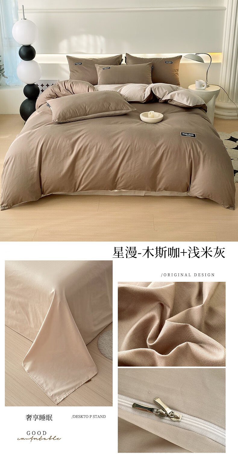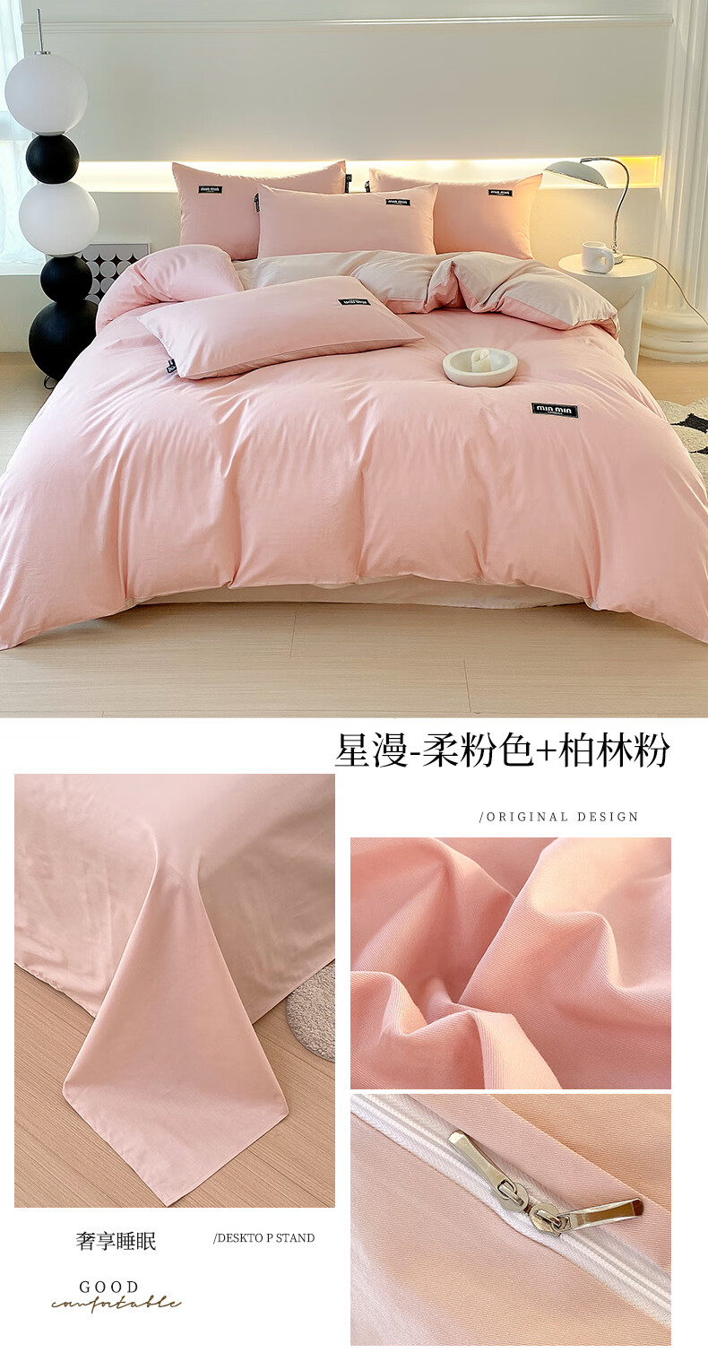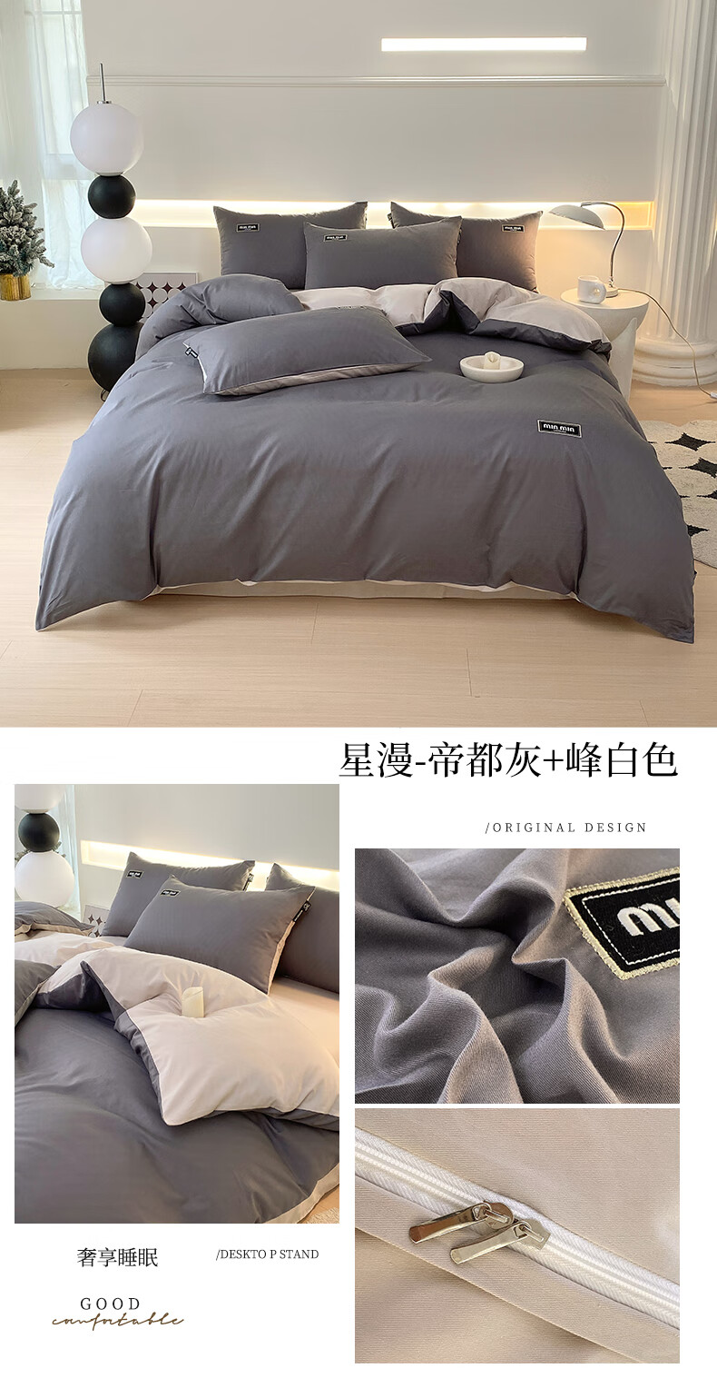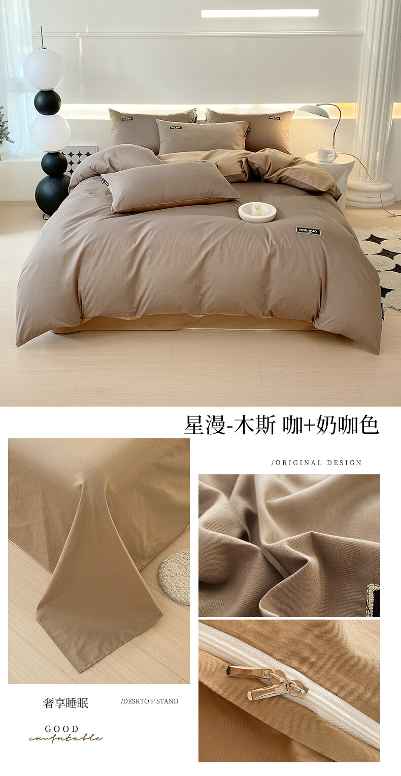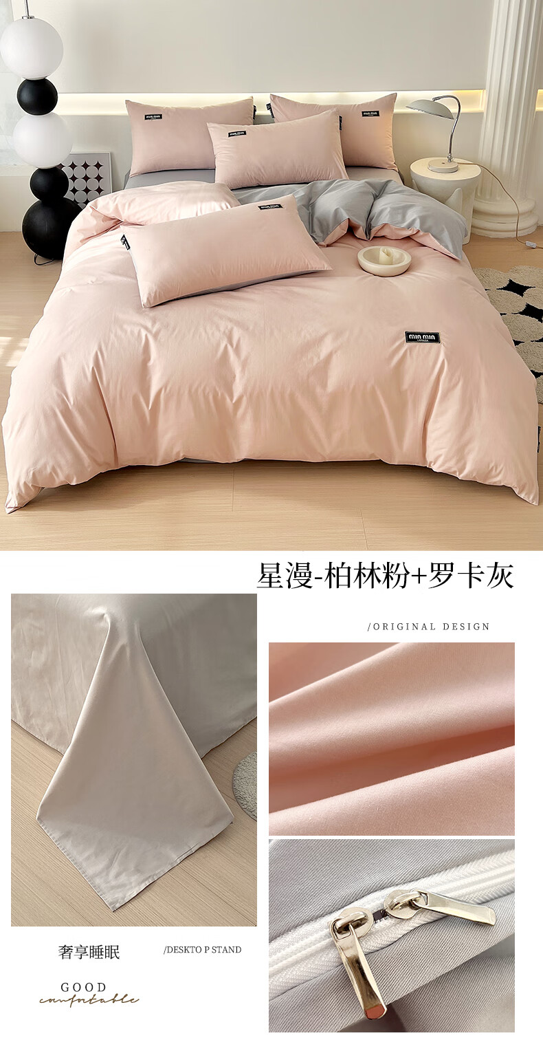 Mercury series home textiles 180 count long-staple cotton four-piece set pure cotton 100% cotton sheet quilt cover simple fitted sheet three-piece bedding set Xingman-off-white + spring green 100% cotton bed sheet style 180*200 single quilt cover 100% cotton