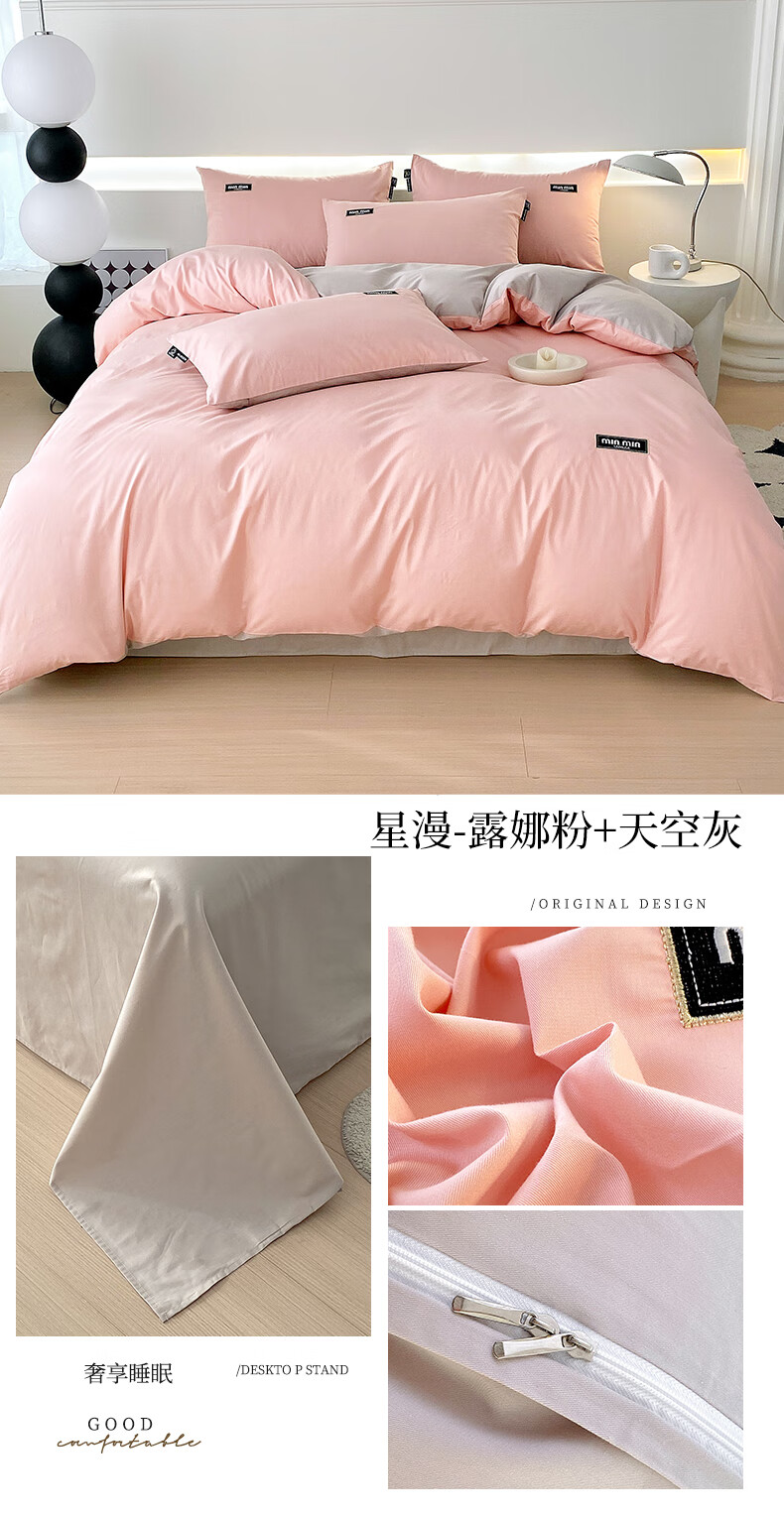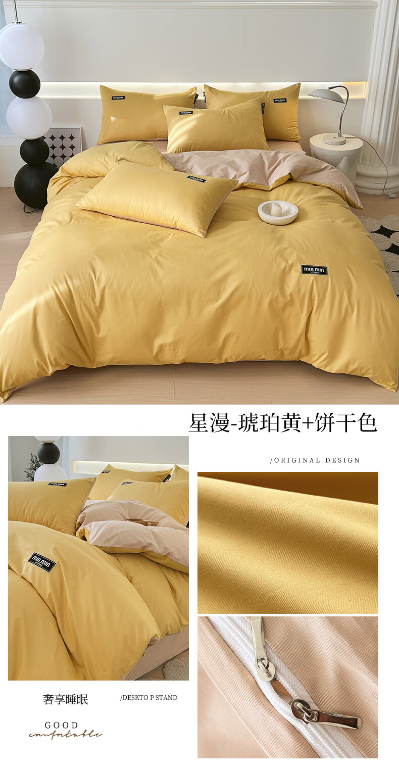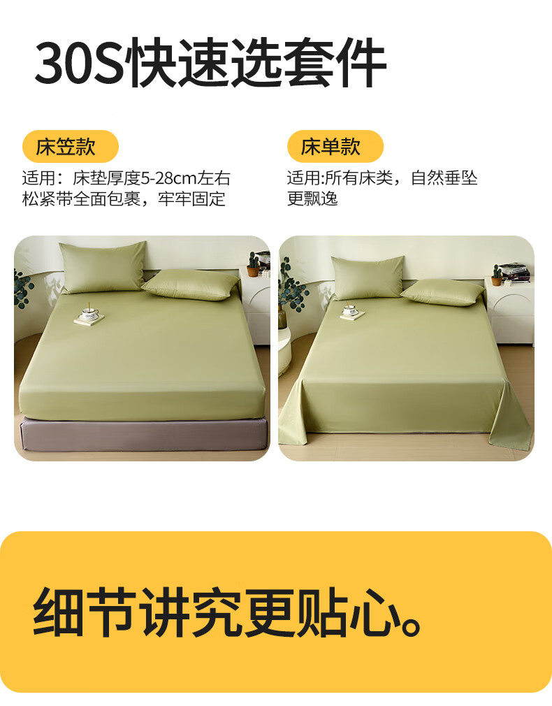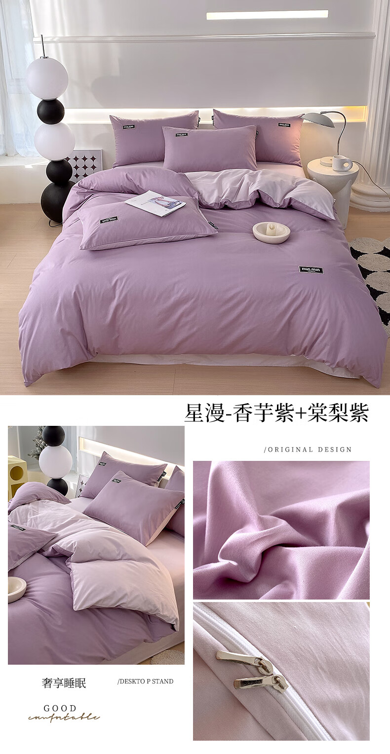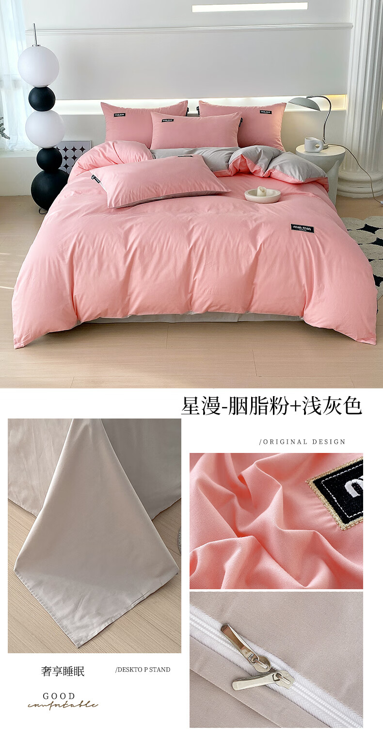 Mercury series home textiles 180 count long-staple cotton four-piece set pure cotton 100% cotton sheet quilt cover simple fitted sheet three-piece bedding set Xingman-off-white + spring green 100% cotton bed sheet style 180*200 single quilt cover 100% cotton