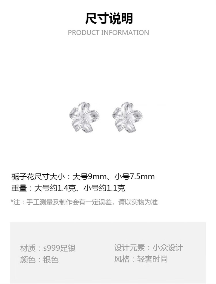 CHOMEL KINSEY Gardenia earrings for women s999 sterling silver new niche design earrings for ear piercing silver earrings for girlfriend Gardenia earrings - small size