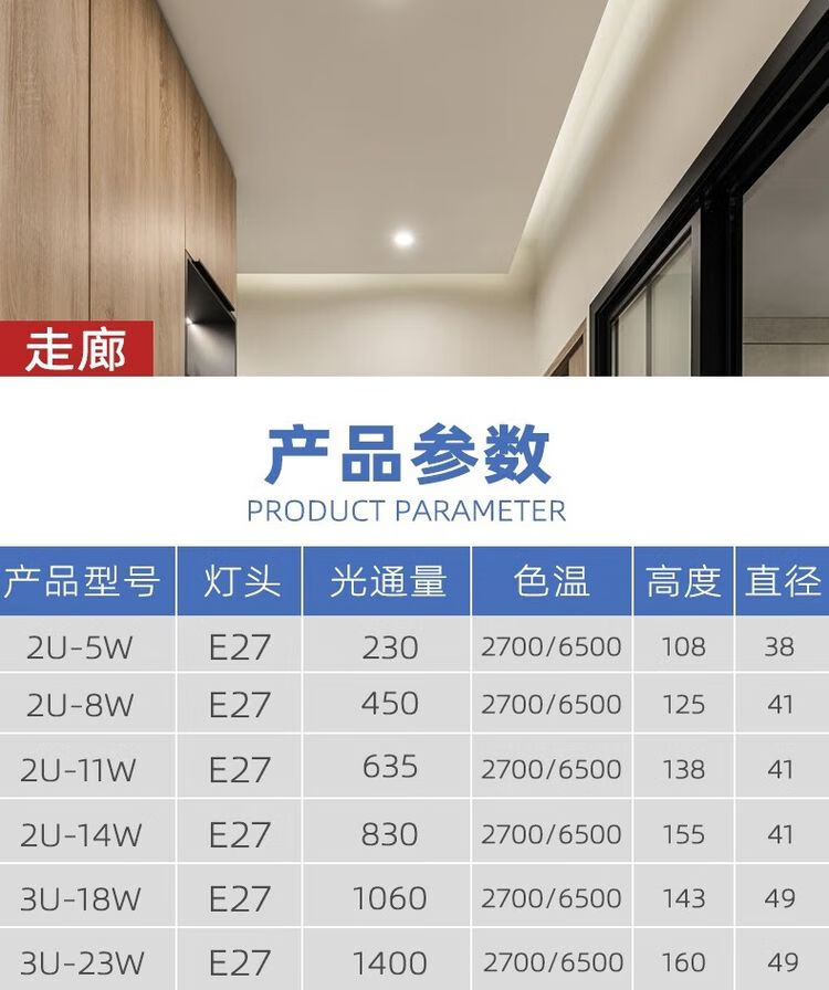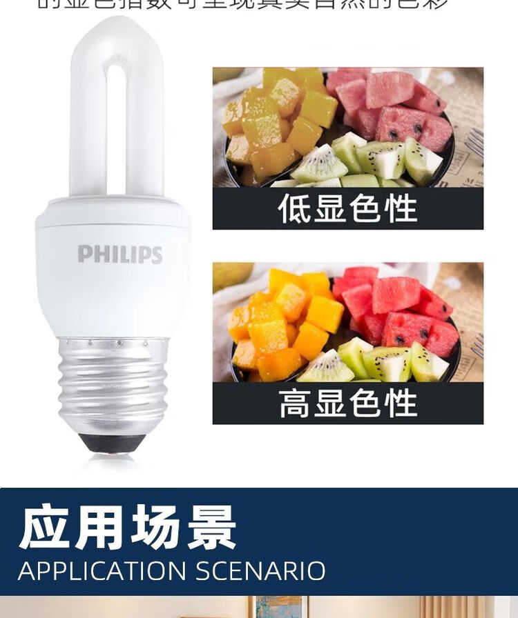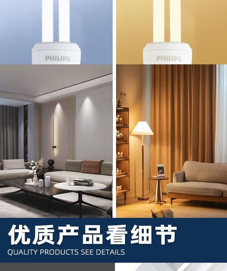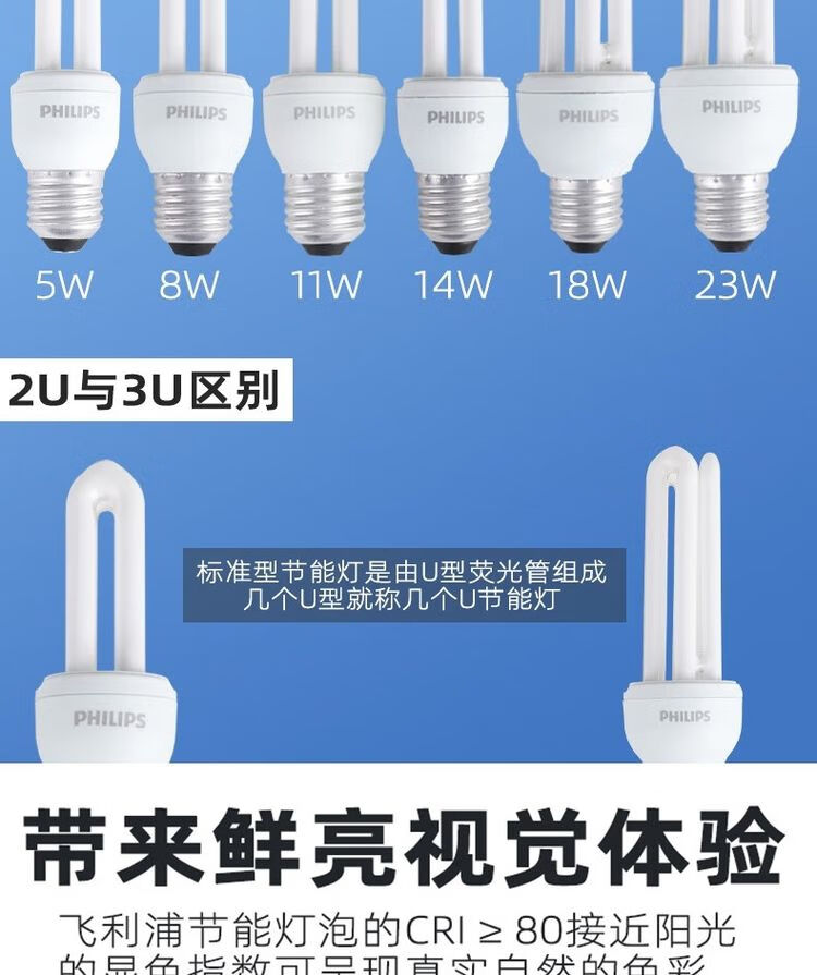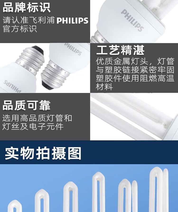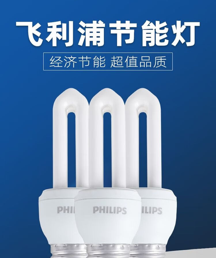 Philips (PHILIPS) electronic energy-saving lamp U-shaped lamp table lamp hole lamp compact self-ballasted fluorescent lamp E27 screw 2U energy-saving lamp 8W white light 1