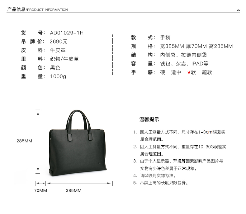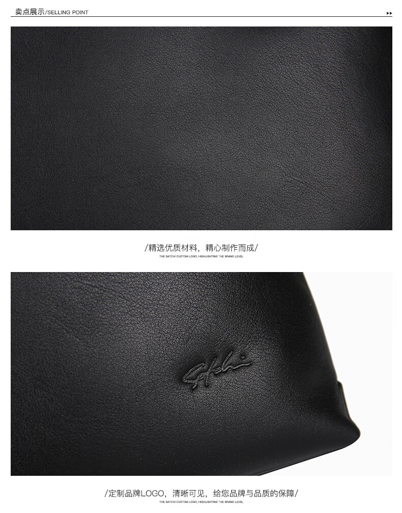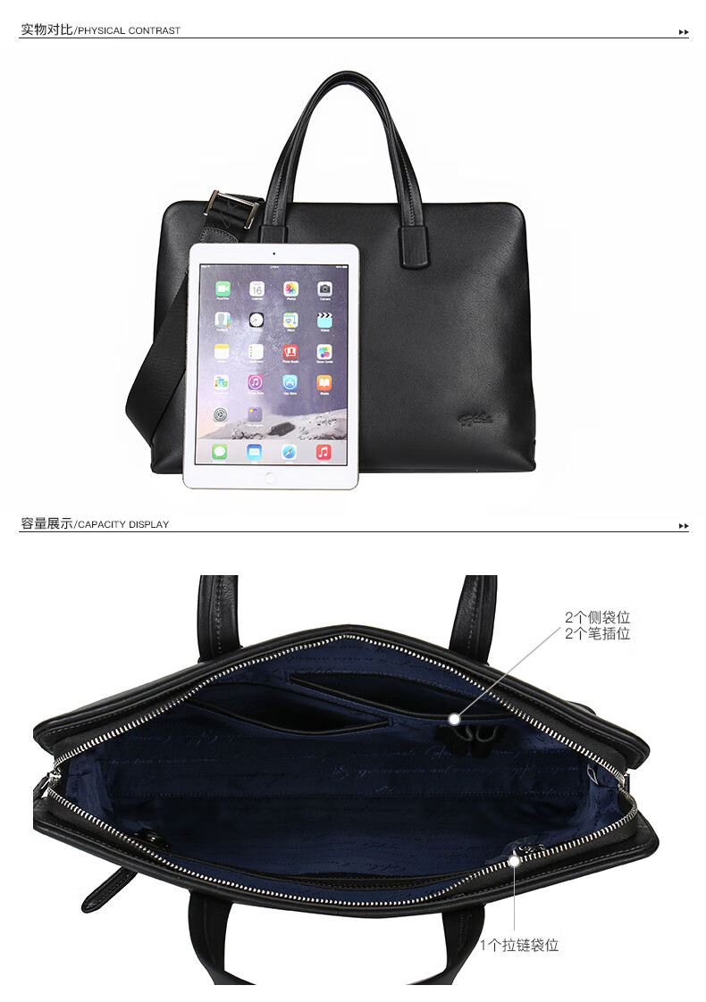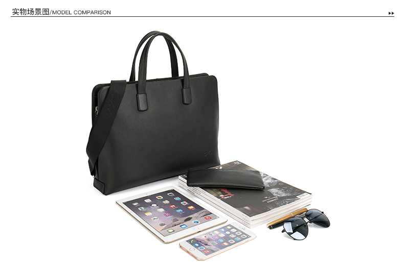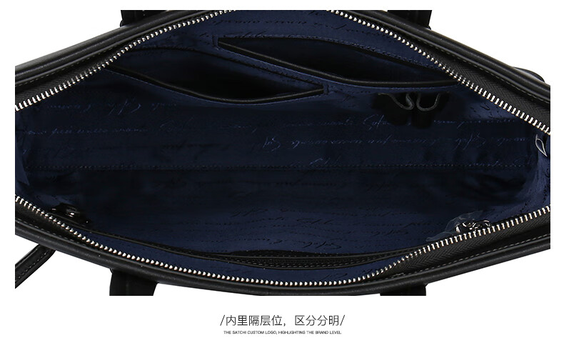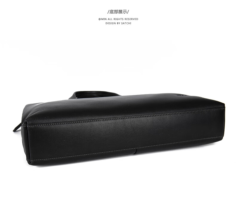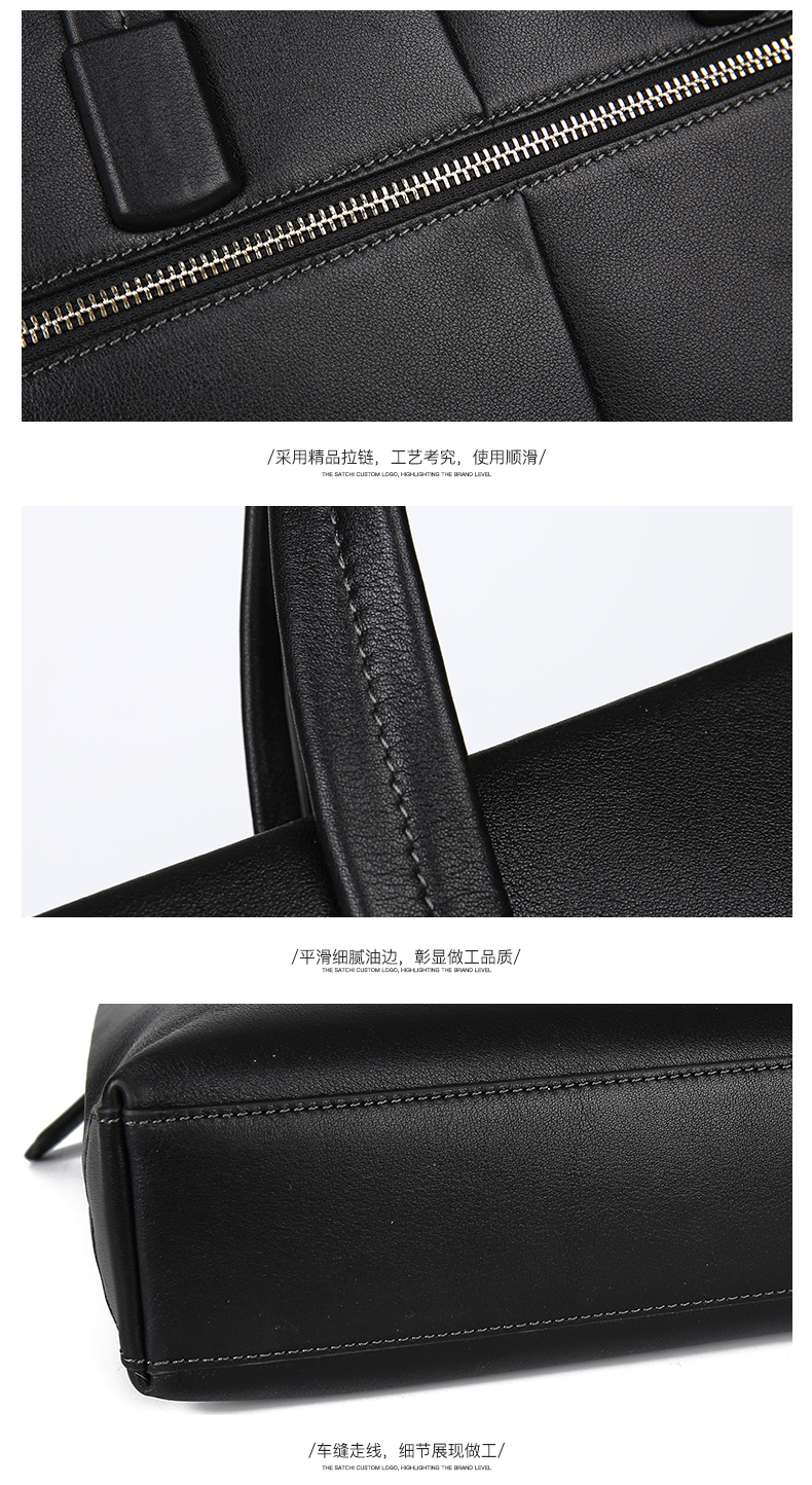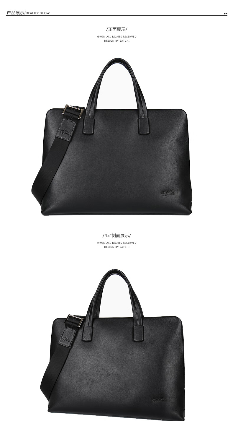 SATCHI men's bag business briefcase first layer cowhide handbag large capacity shoulder crossbody bag computer bag black 14 inches