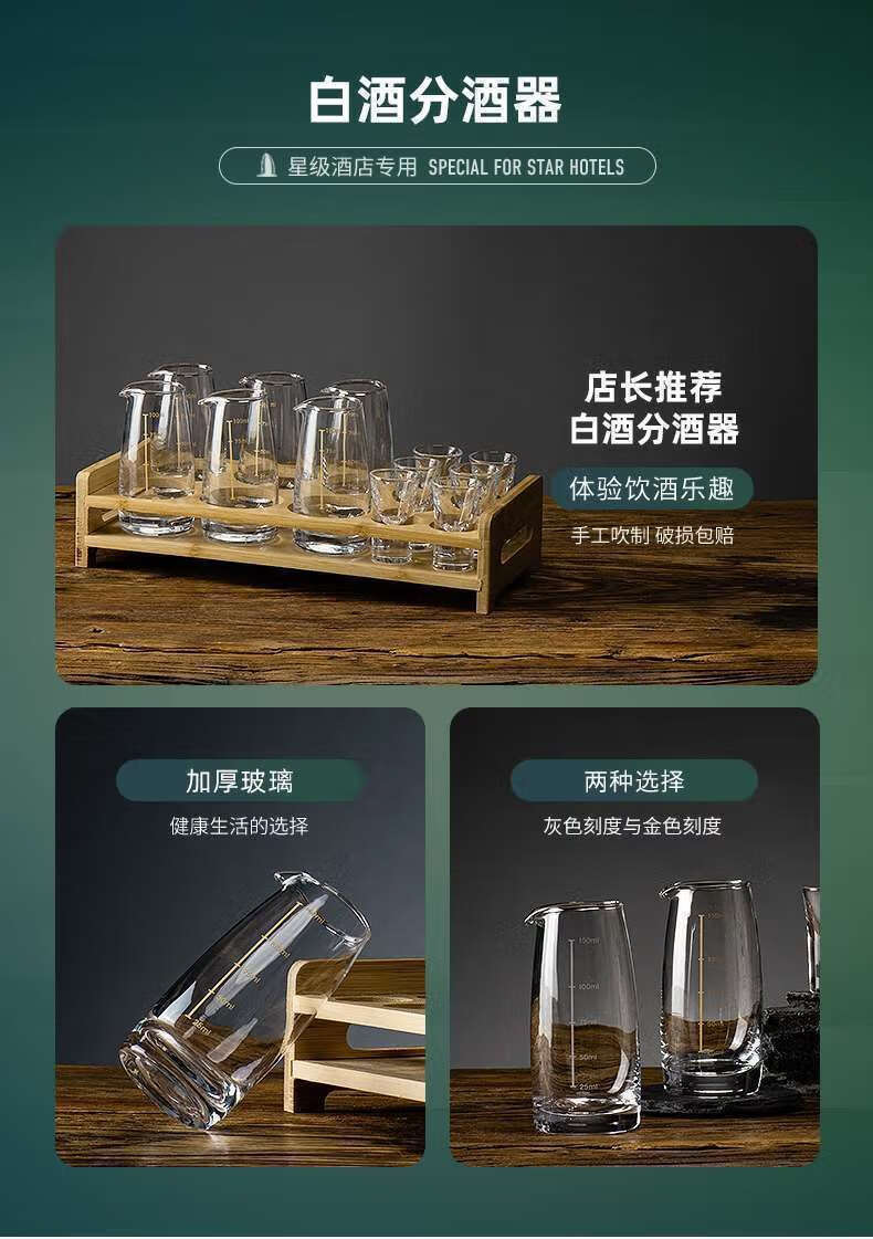 Runhuanian white wine glass set household wine divider small wine glass gift box Chinese wine set decanter wine measuring device with scale white 100 wine divider 6 pieces + 6 cups + cup holder