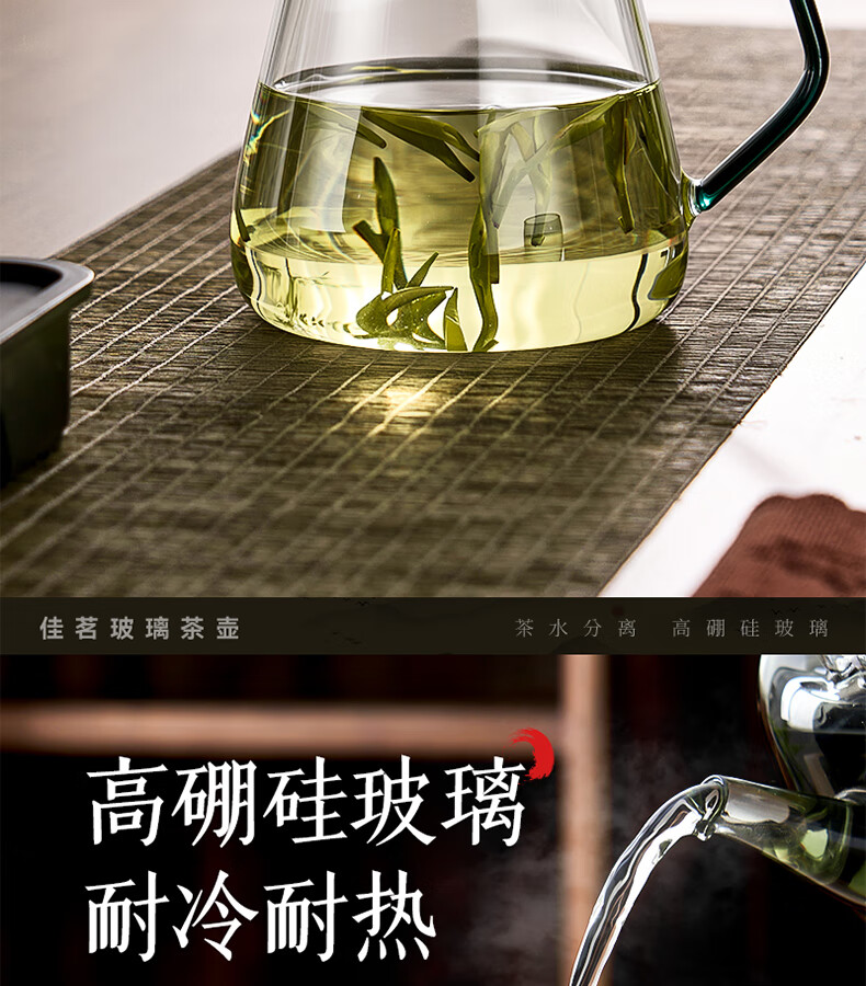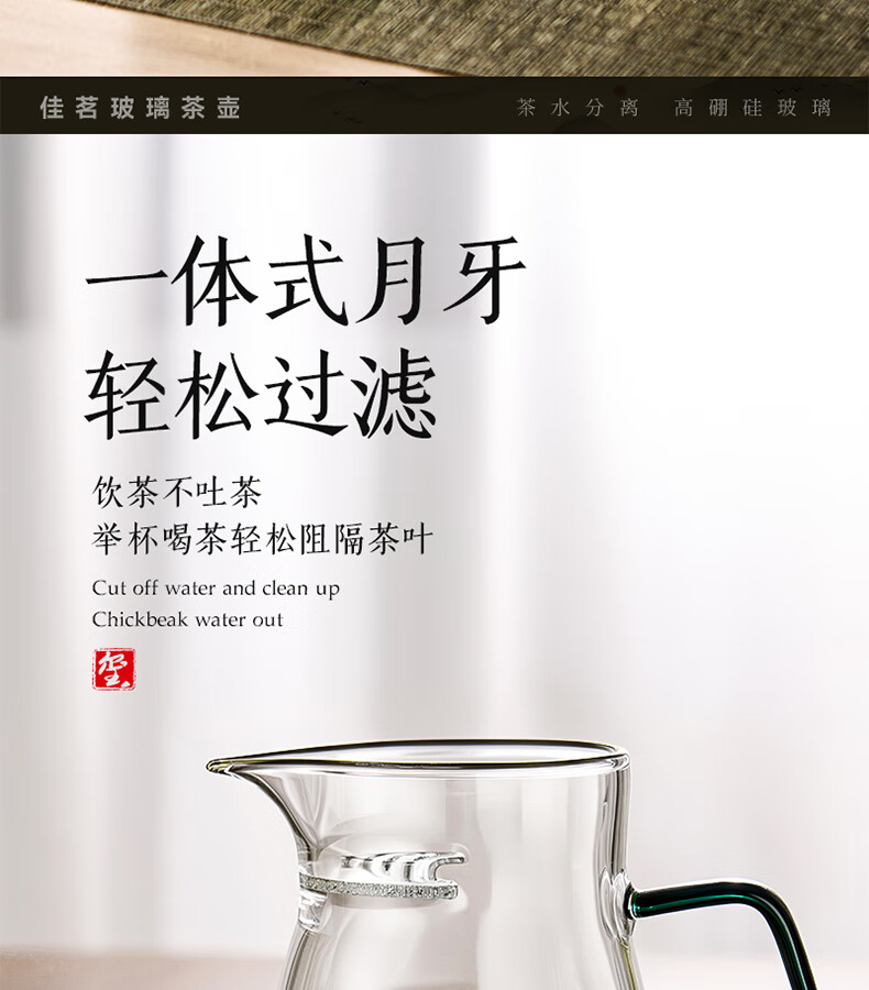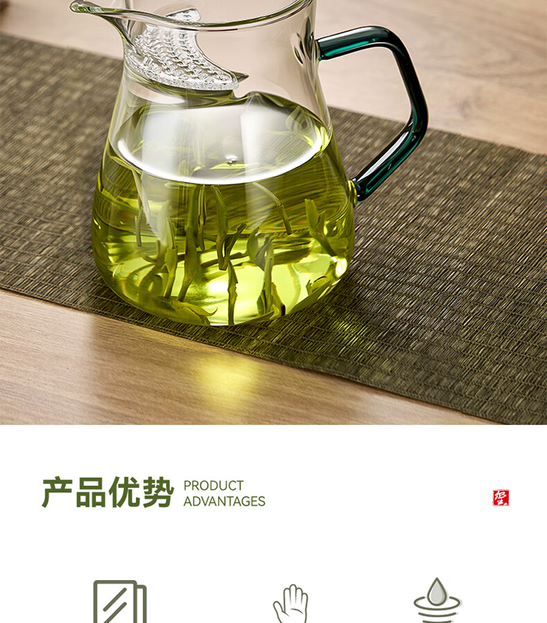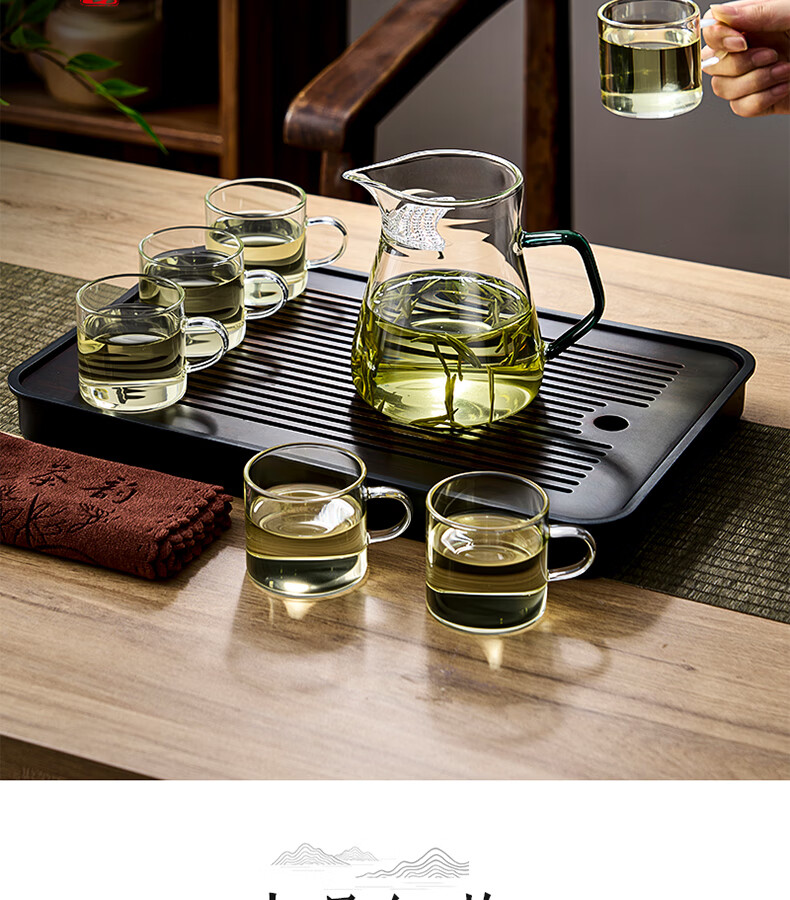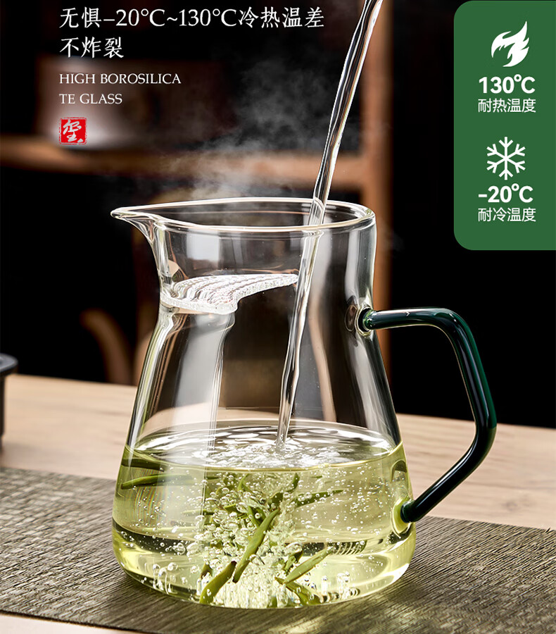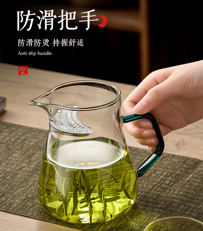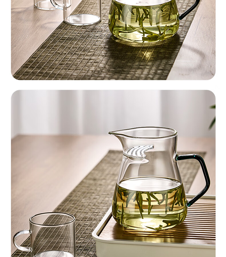 TIANXI fair cup heat-resistant glass transparent integrated crescent teapot filter tea water separation household tea dispenser tea set heat-resistant and explosion-proof green 580ml