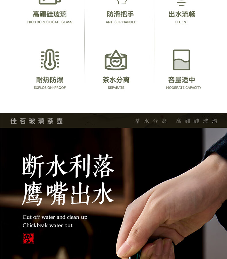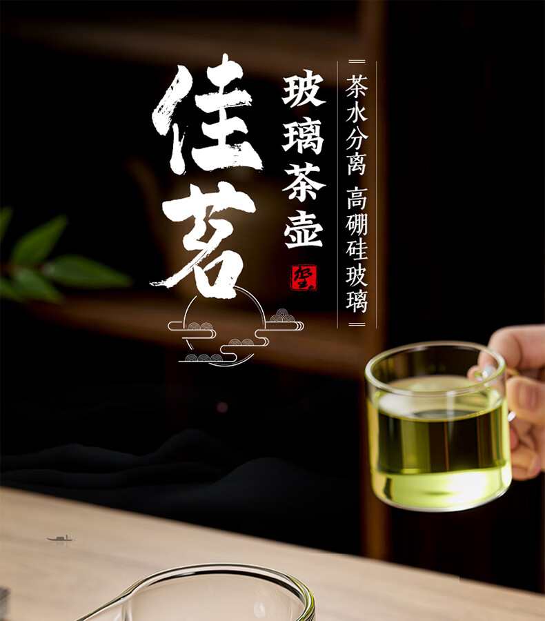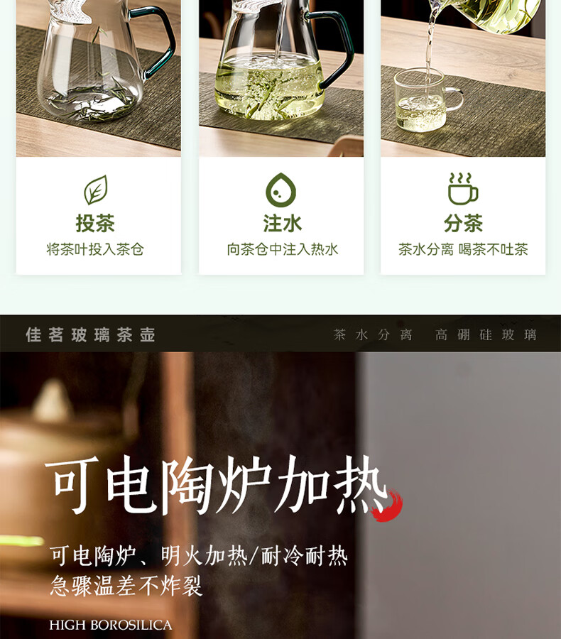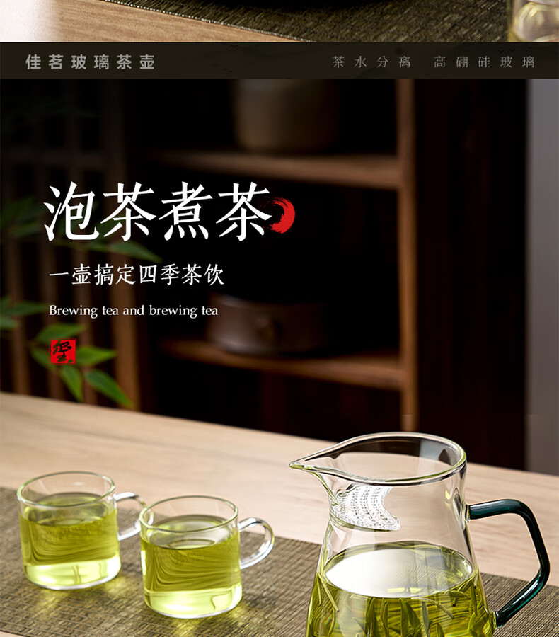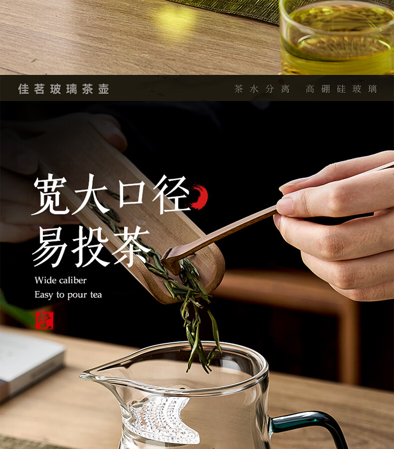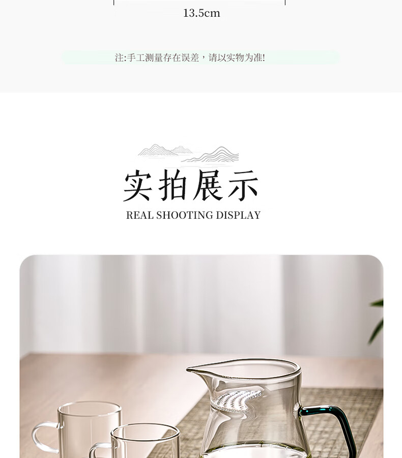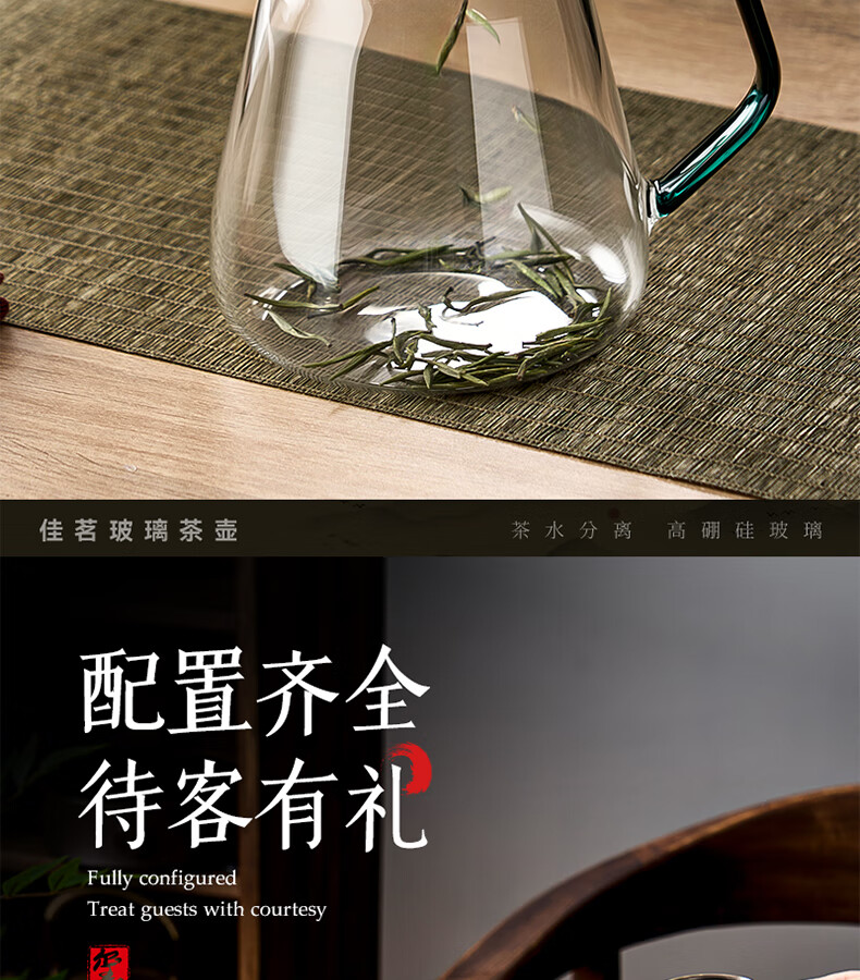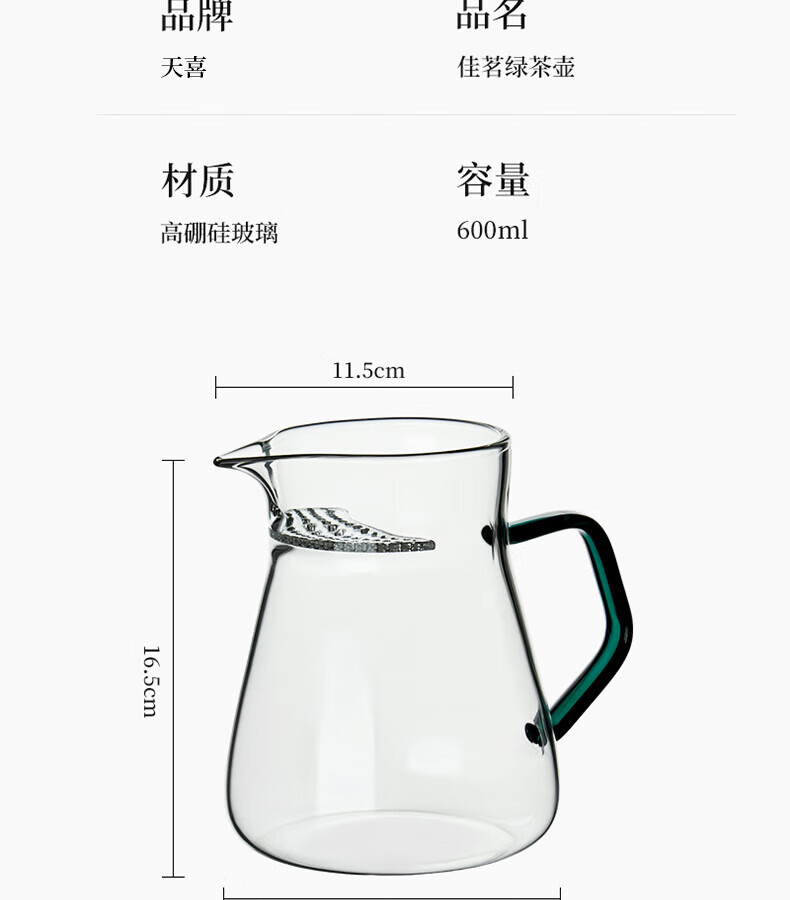 TIANXI fair cup heat-resistant glass transparent integrated crescent teapot filter tea water separation household tea dispenser tea set heat-resistant and explosion-proof green 580ml