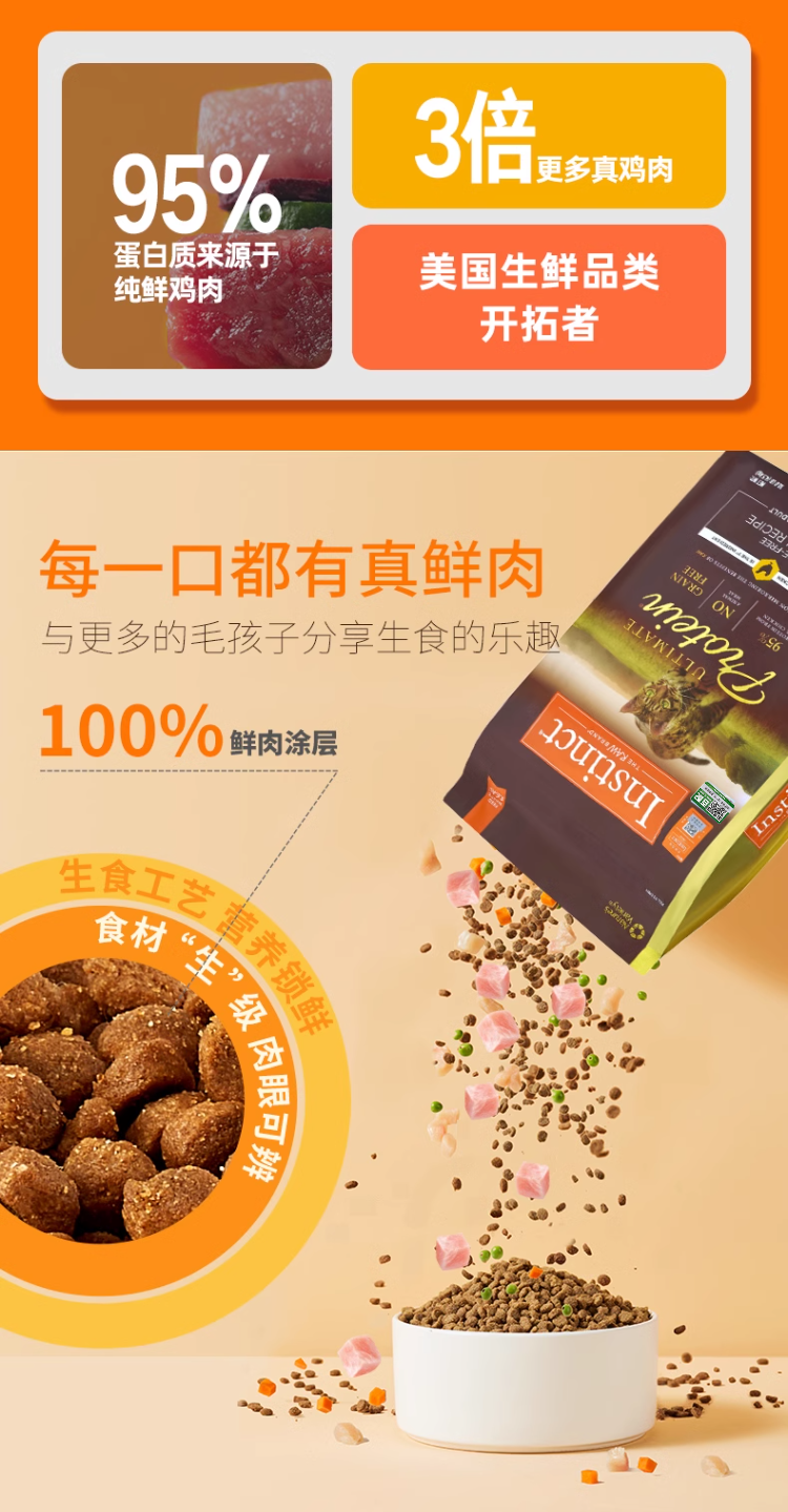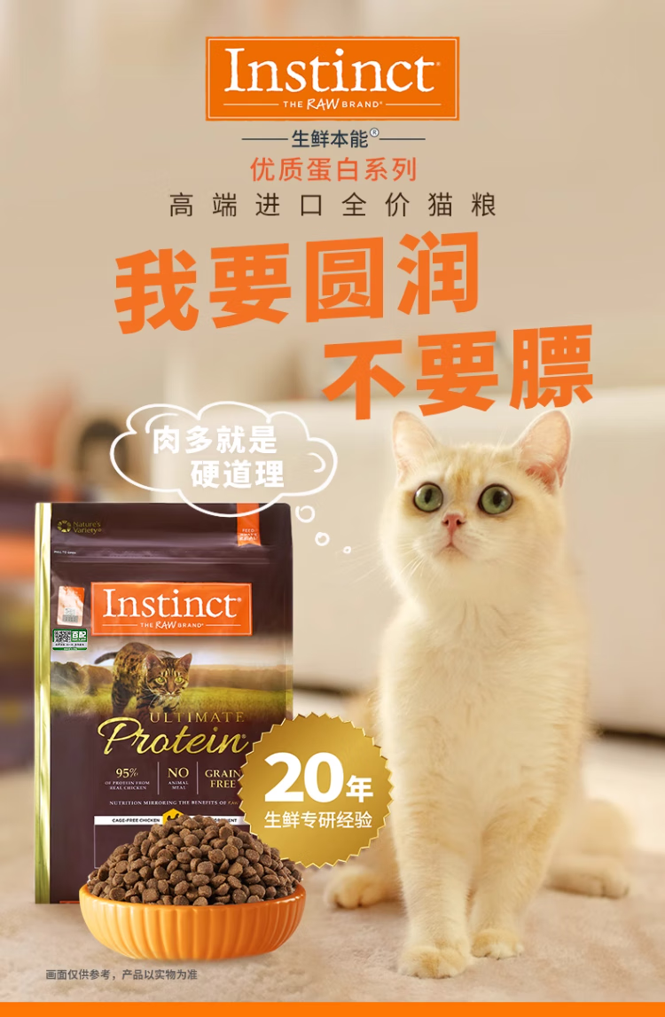 INSTINCT Bailey cat food for adult cats, classic grain-free fattening, high-protein chicken nutrition, Belle complete cat food 4 pounds/10 pounds, high-protein chicken 4 pounds (24.9) 0g