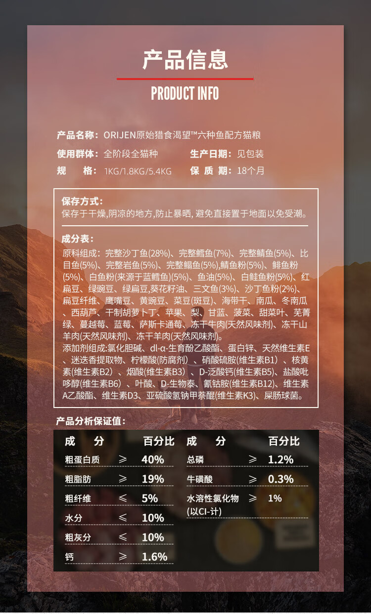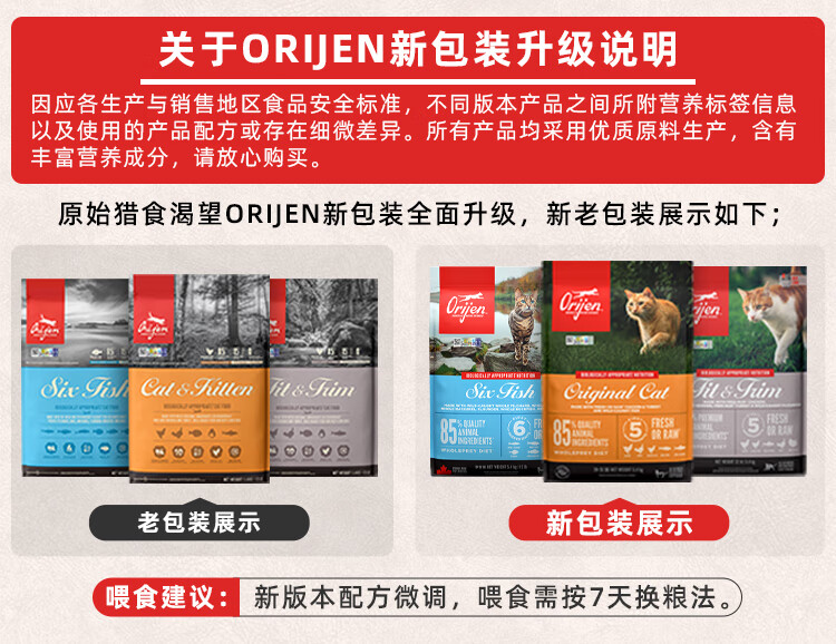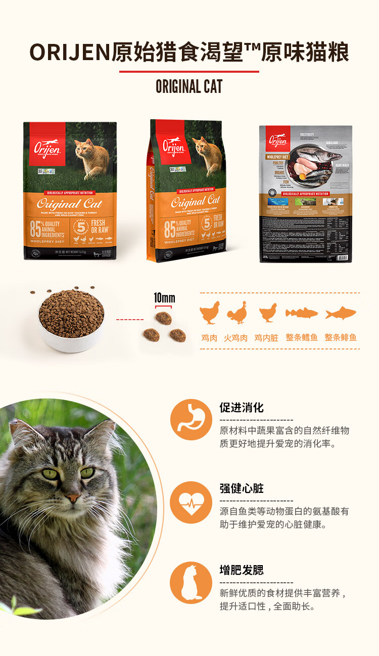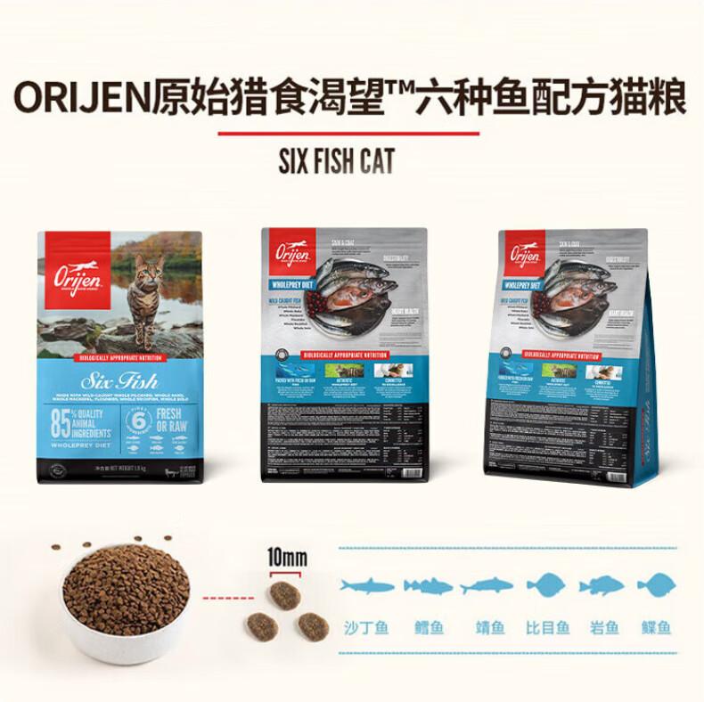 Orijen Canada Desire Cat Food Six Types of Fish 6 Imported Grain-Free Chicken Kittens and Adult Cats Full Period Cat Food 5.4kg Six Types of Fish (25.5) 5.4kg