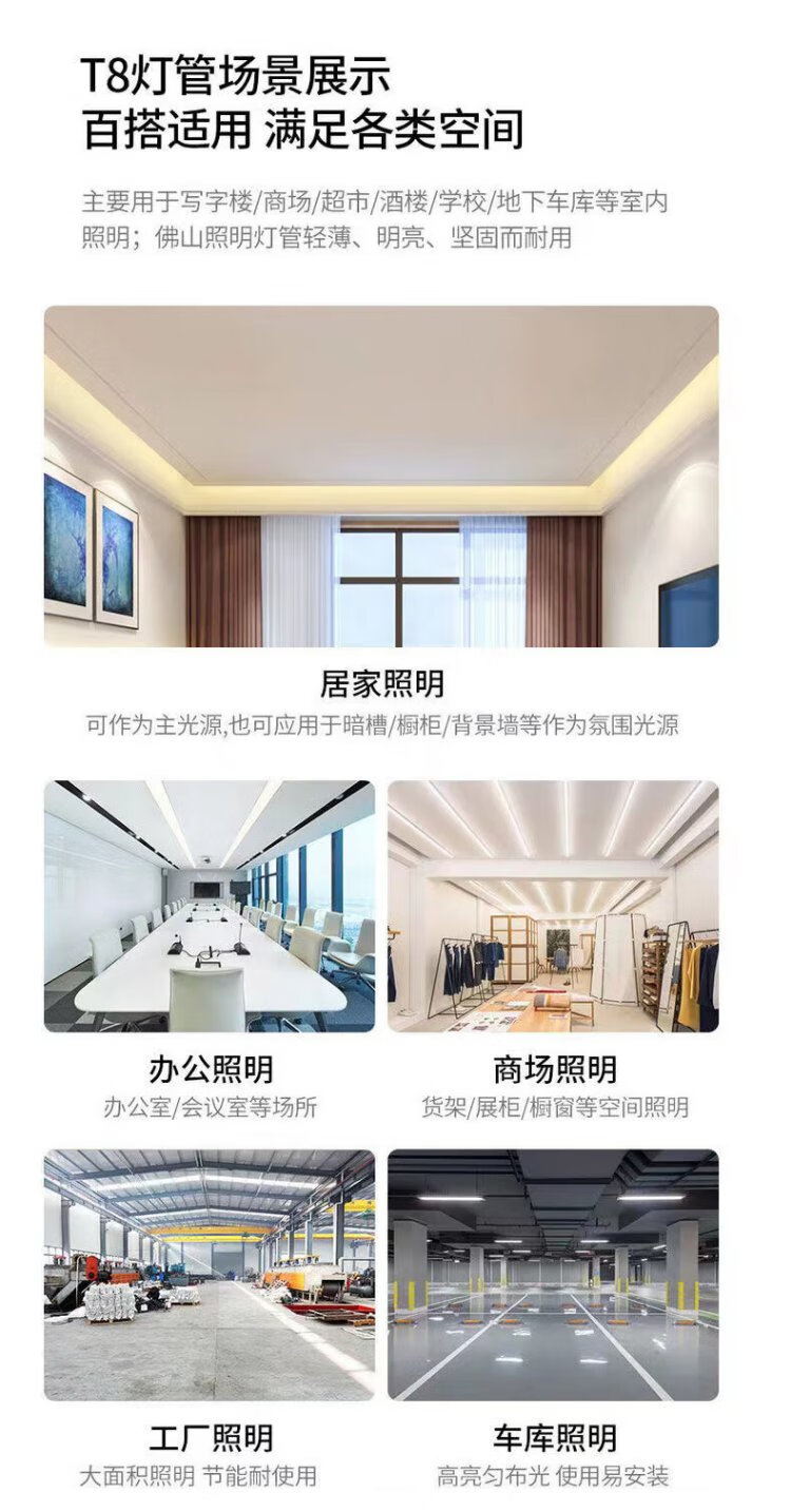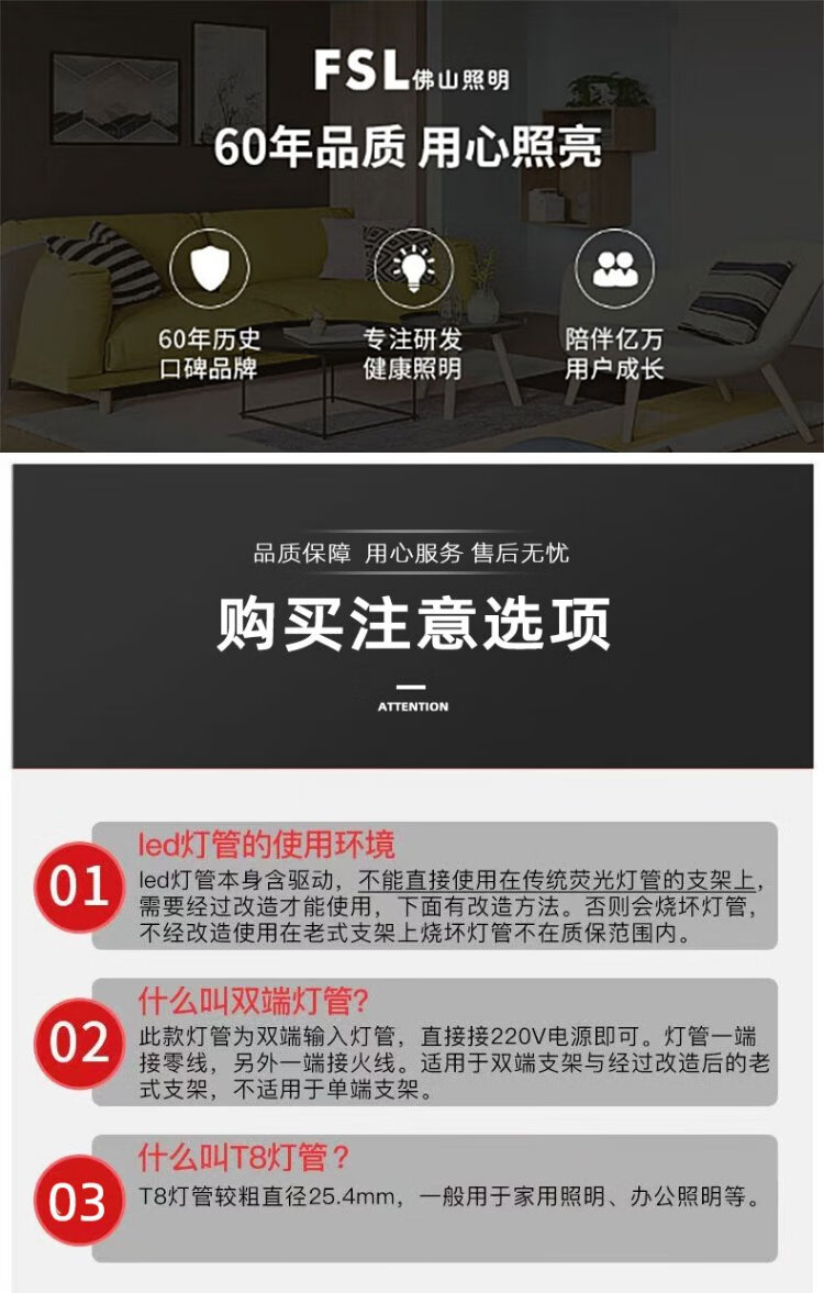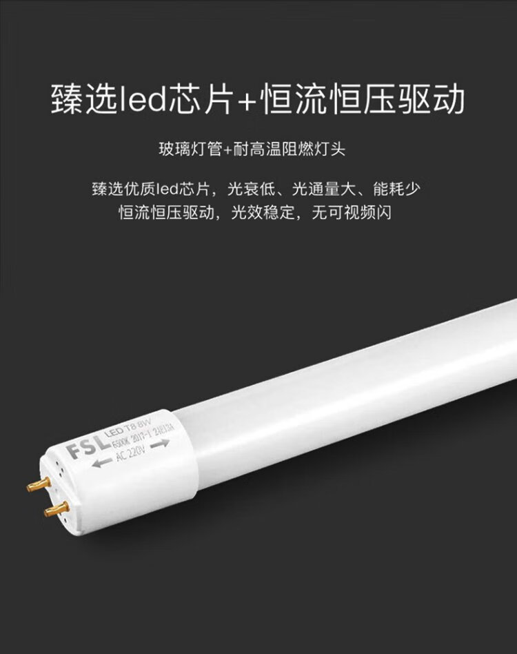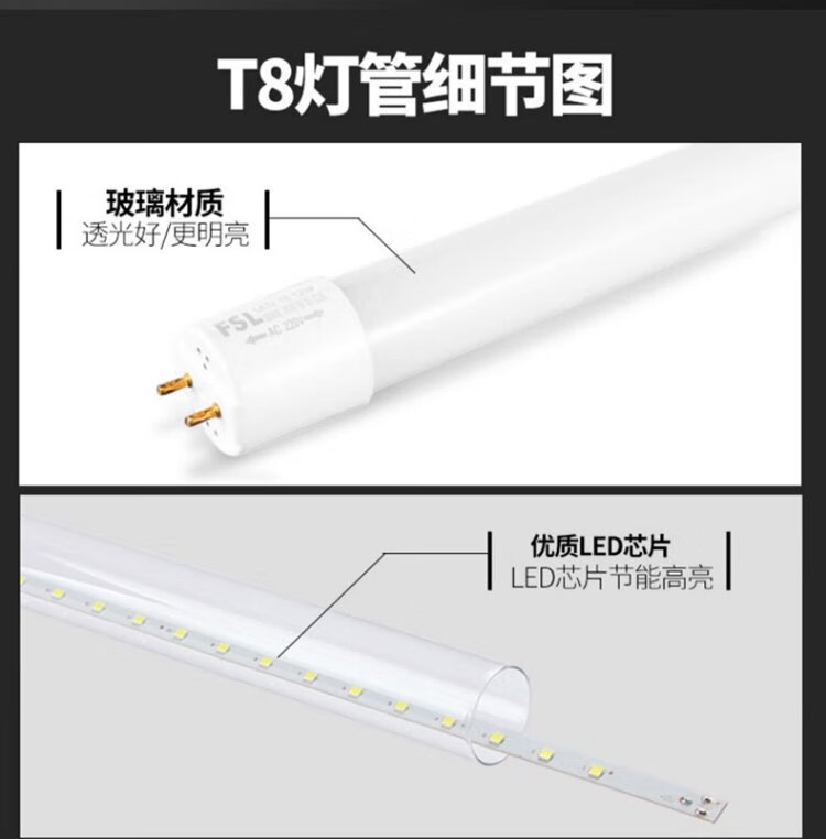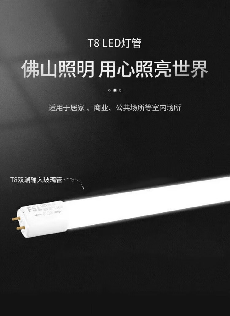 FSL Foshan Lighting LED tube T8 double-ended power strip light energy-saving fluorescent lamp t8led tube 0.6m/0.9m/1.2m T8 double-ended power led tube 1.2m 40W (excluding bracket) white light 6500K