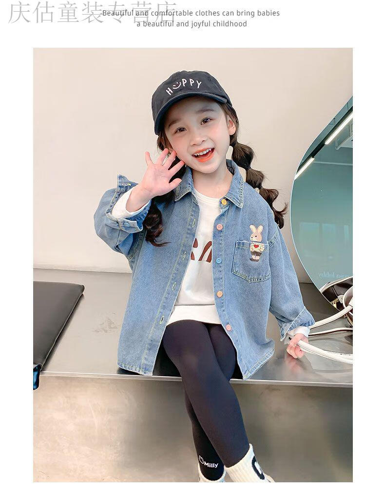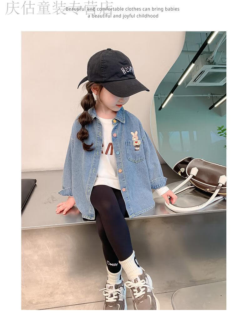 HAL.DUCK Girls' Denim Shirt Spring and Autumn 2026 New Children's Clothing Autumn Style Baby Long-Sleeved Top Autumn Shirt Blue 90 Recommended height 80-90