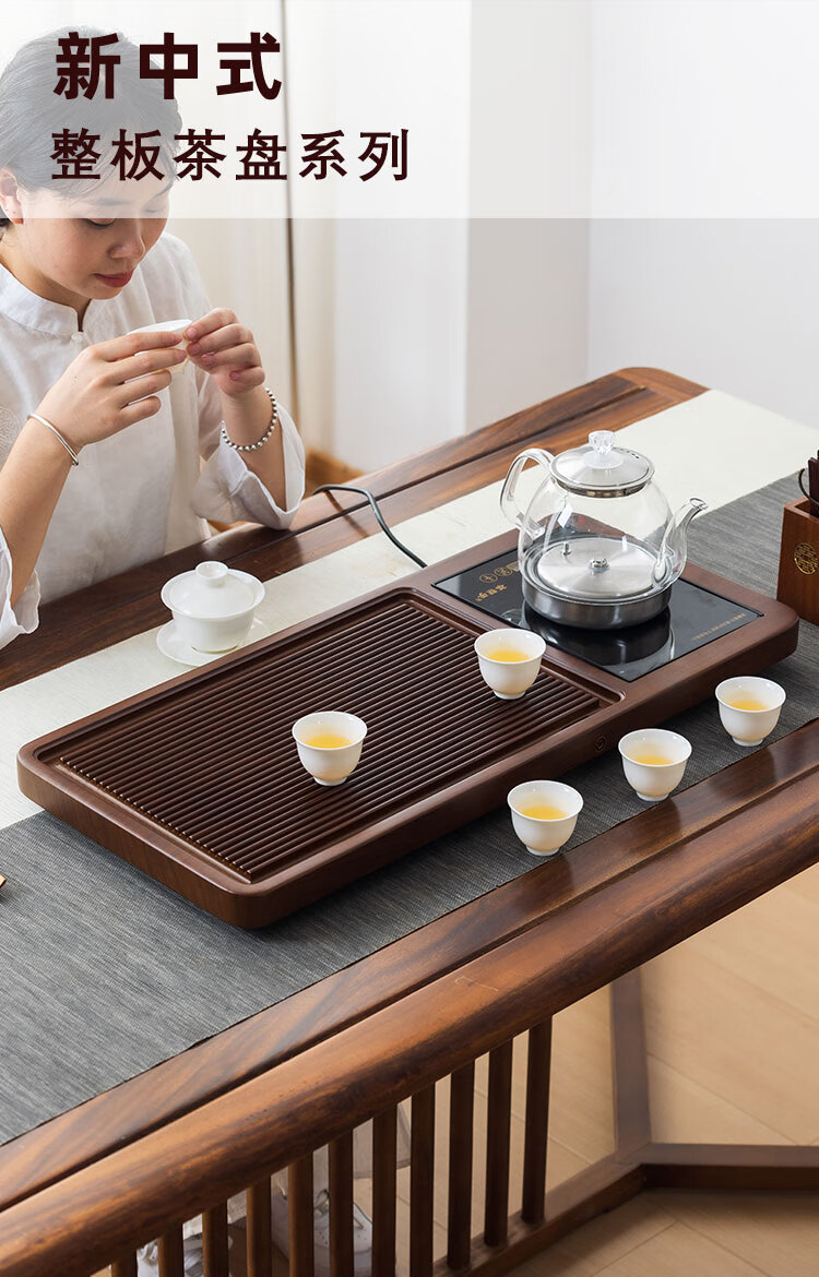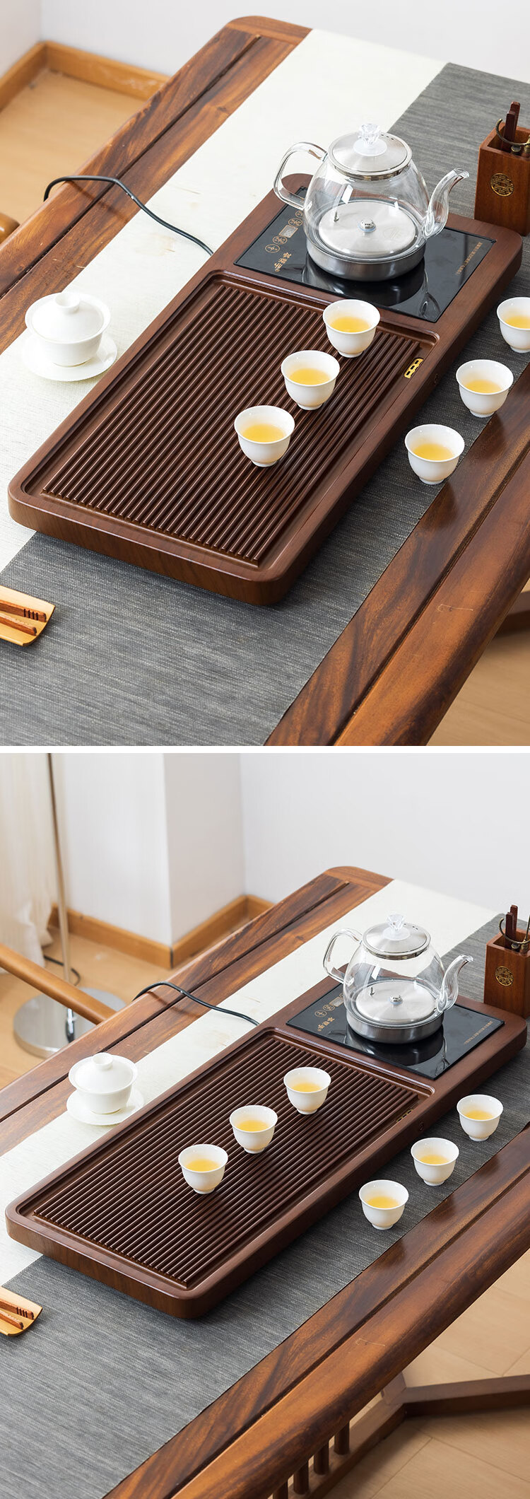 Mingzhu complete set of tea sets and tea tray set for home high-end living room and office kung fu fully automatic tea making station with kettle in one Huanghuali color 70*32 + six-fold gift single tea tray