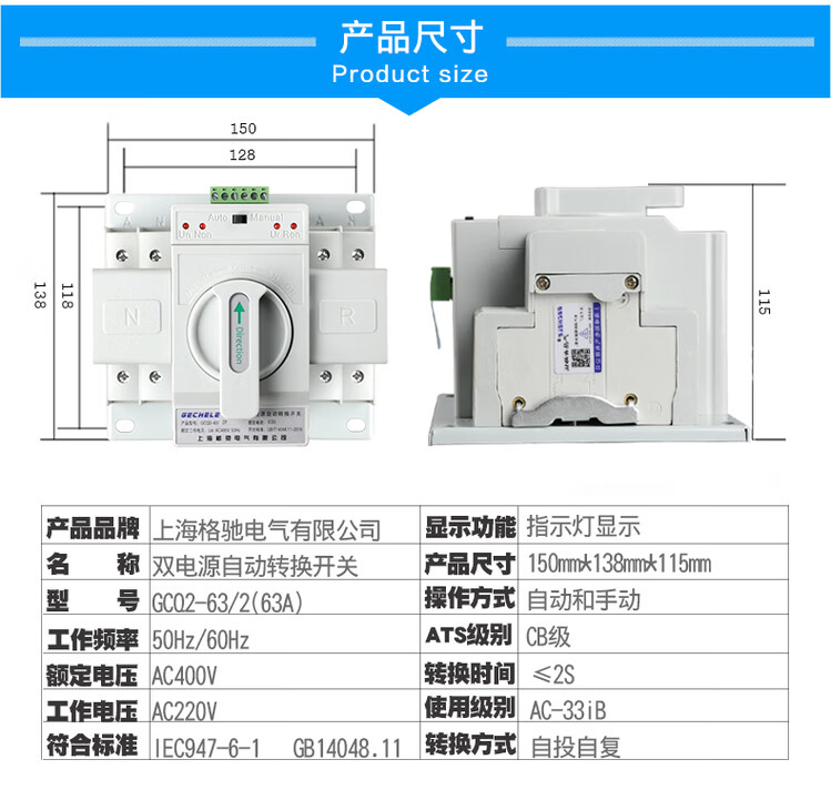 Dual power automatic transfer switch single-phase 2P220v generator dual-channel switching controller timing ats