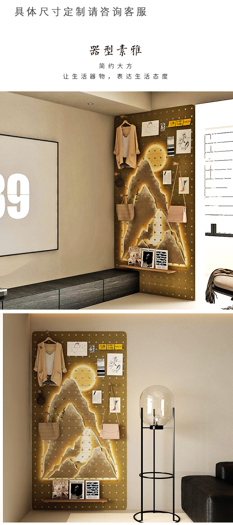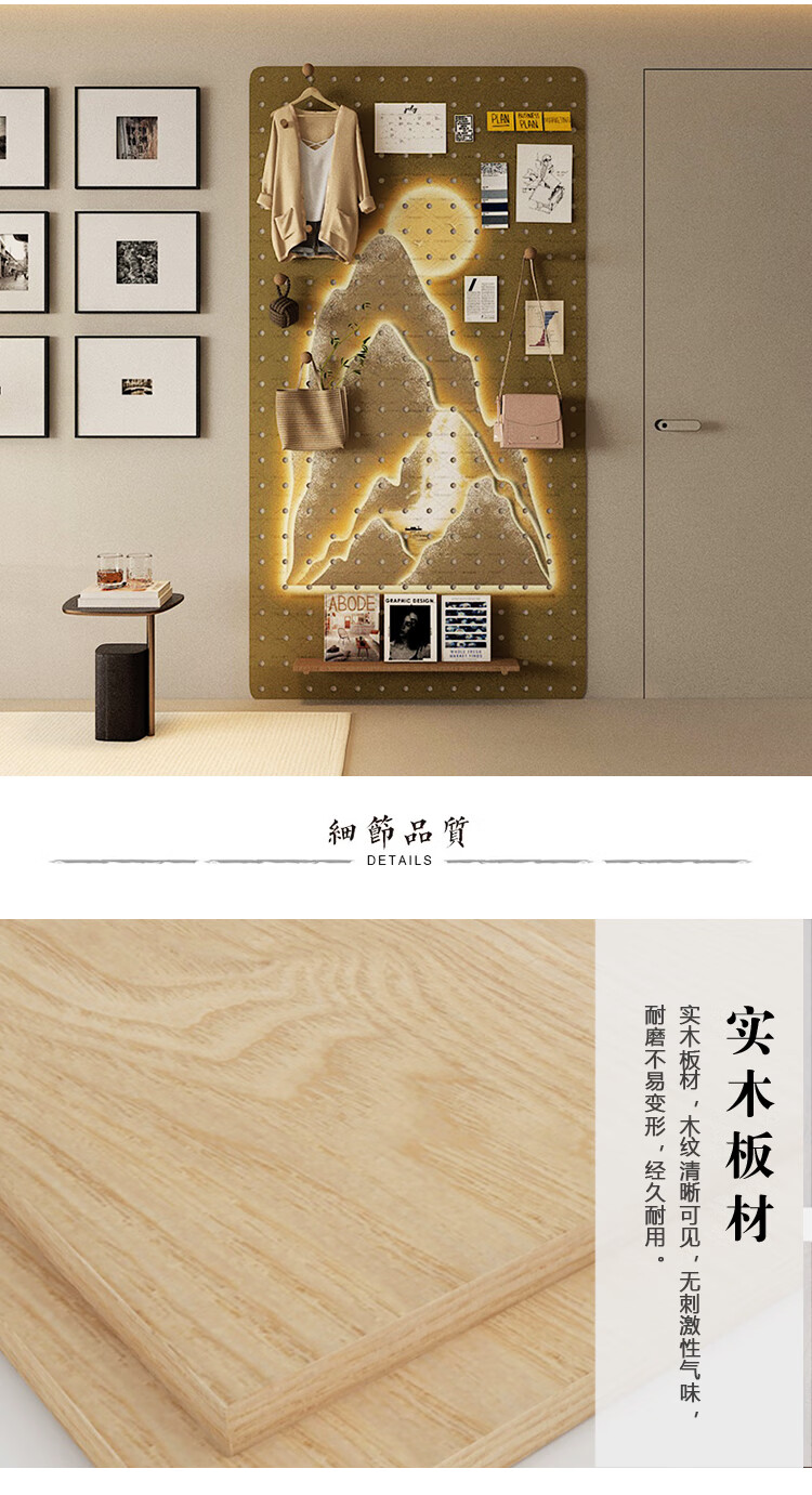Solid wood perforated board storage rack, custom entrance door, electric meter box to block wall decoration, imitation light strip storage rack, custom solid wood multi-layer board