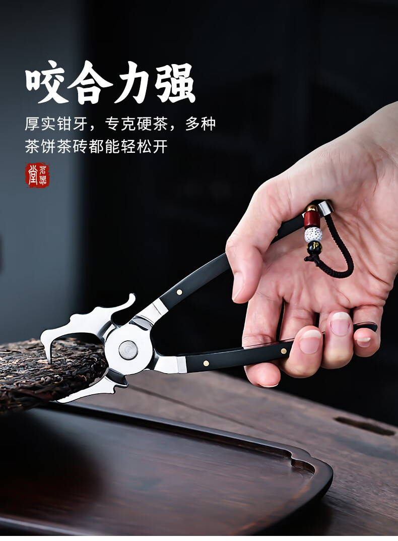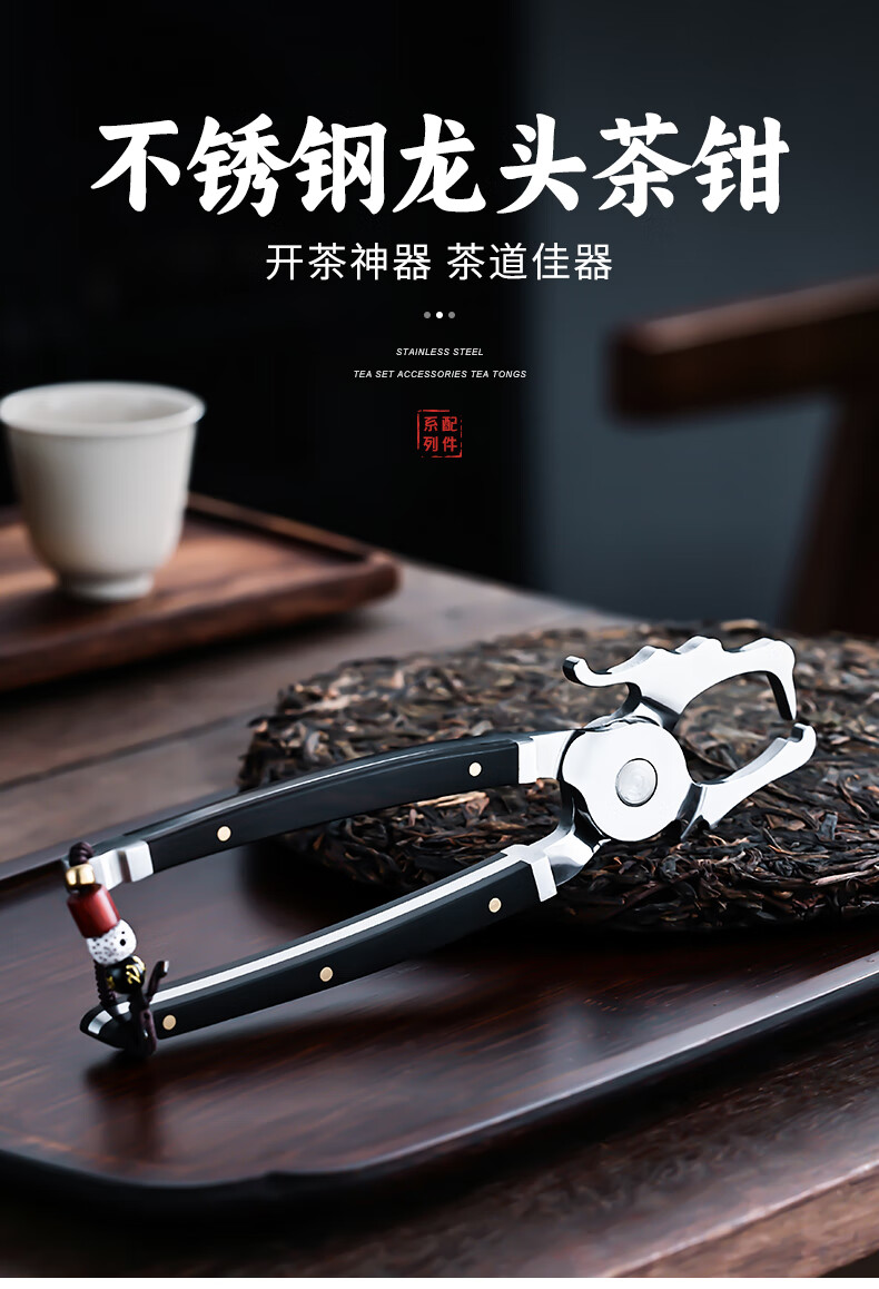 Mingqitang stainless steel tea pliers Pu'er tea opening tea knife needle cone tea opener Tuocha white black tea brick prying tea cake tool Purple sandalwood stainless steel faucet tea pliers