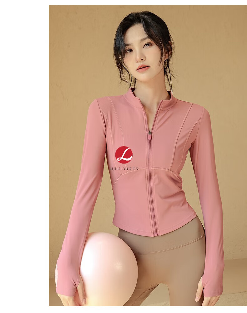 LULULMCCTN Yoga Jacket Women's Pilates Professional Training Clothing Sports Running Cycling Long Sleeve Fitness Top Rouge Powder M