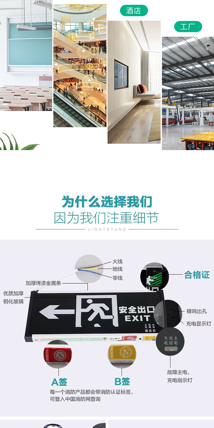 Luode new national standard safety exit sign led fire emergency light emergency passage evacuation sign light centralized power control single side left