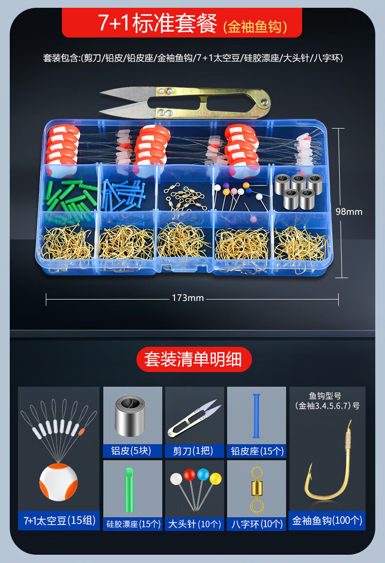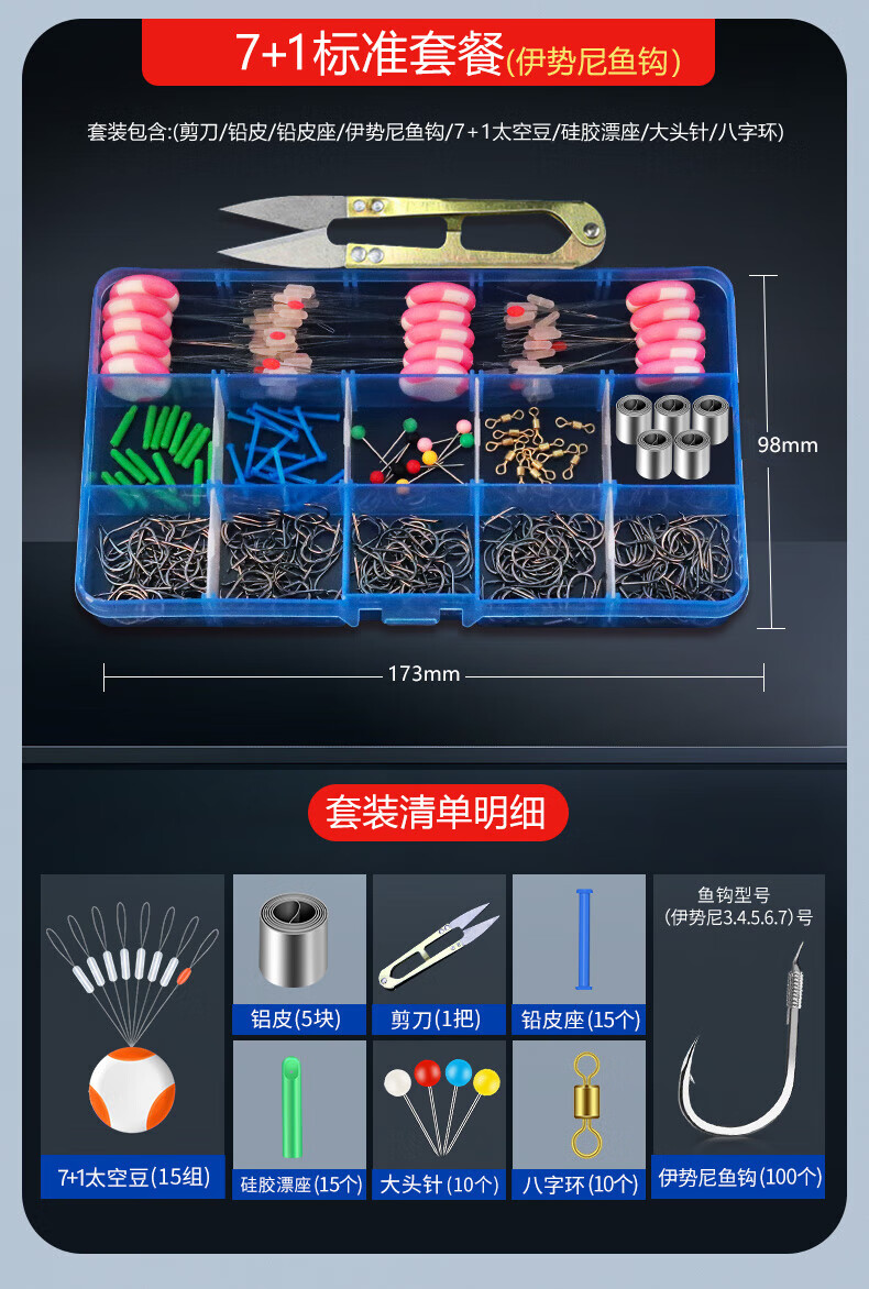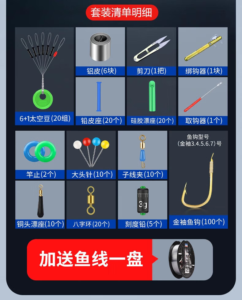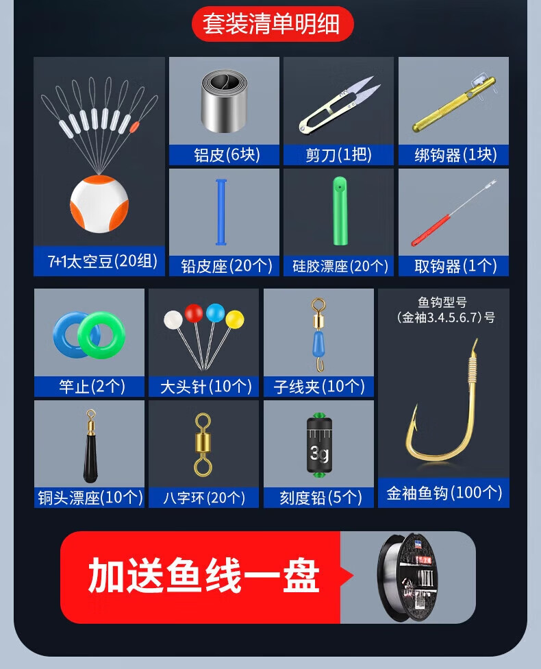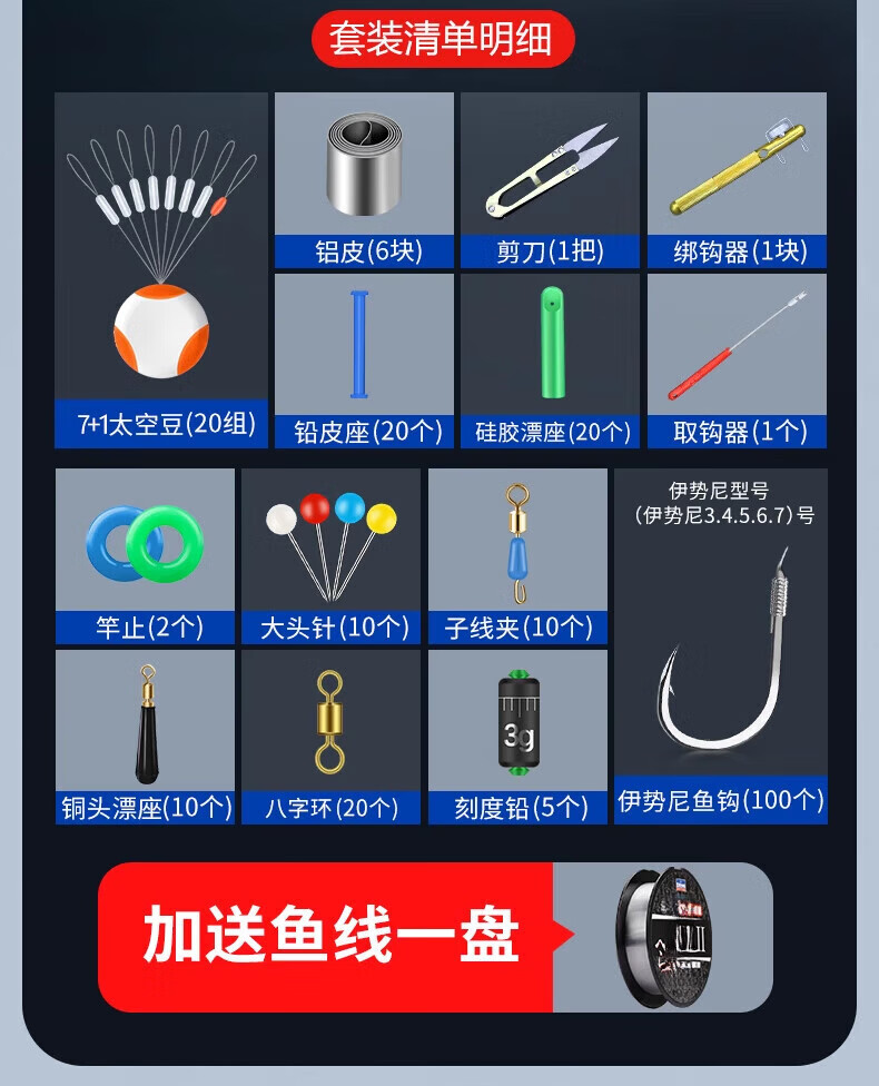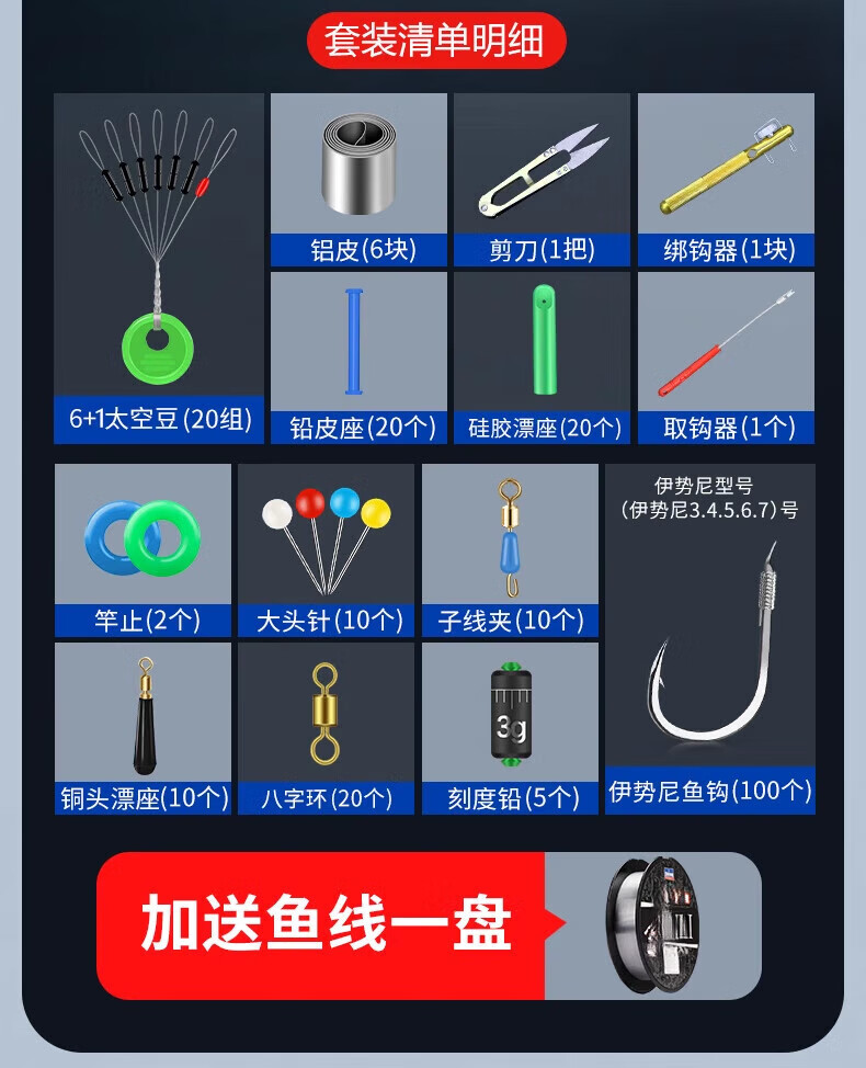 Shantou Lincun Fishhook Bulk Fishing Line Space Bean Set Combination Complete Set of Fishing Equipment Fishing Gear Accessories Super Tight 7+2 Spot Model-Iseni Free 2 Rolls of Fishing Line Others