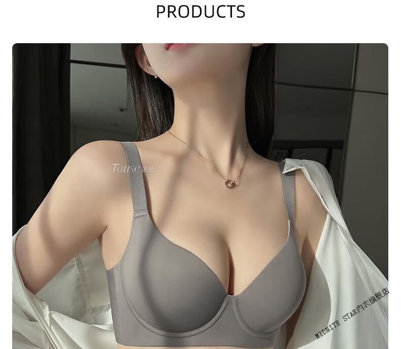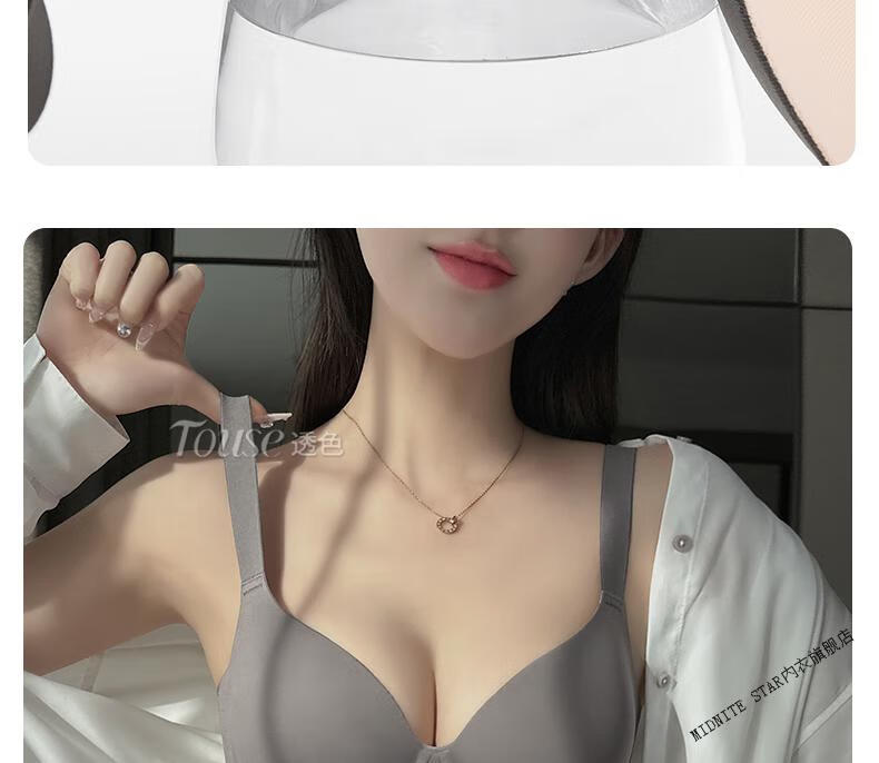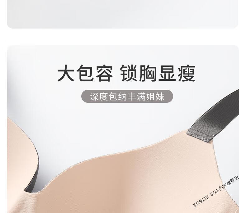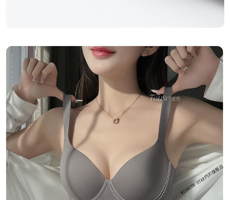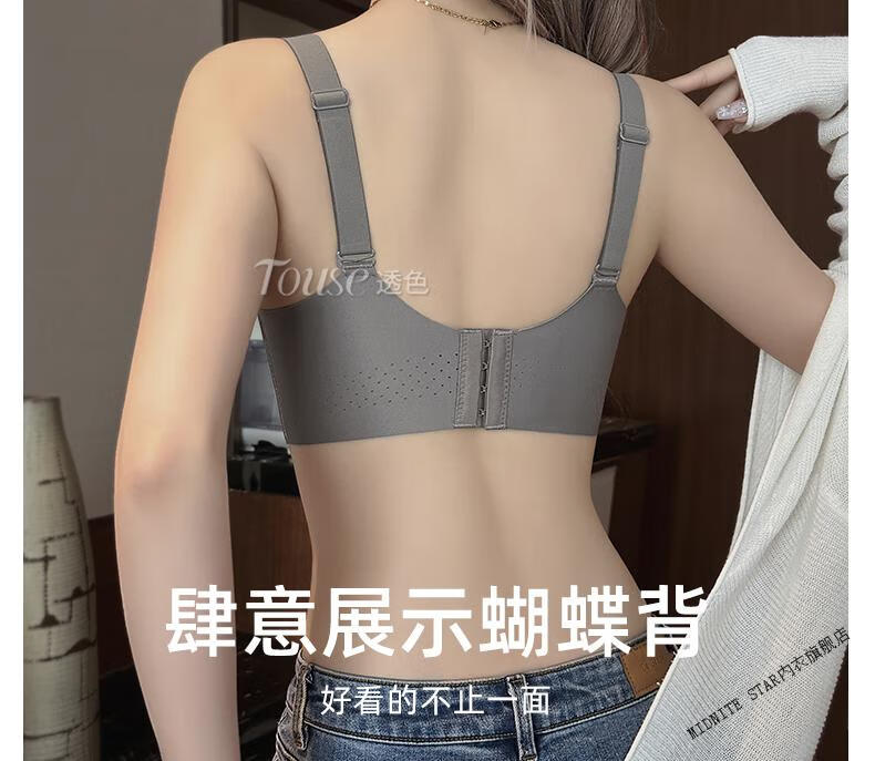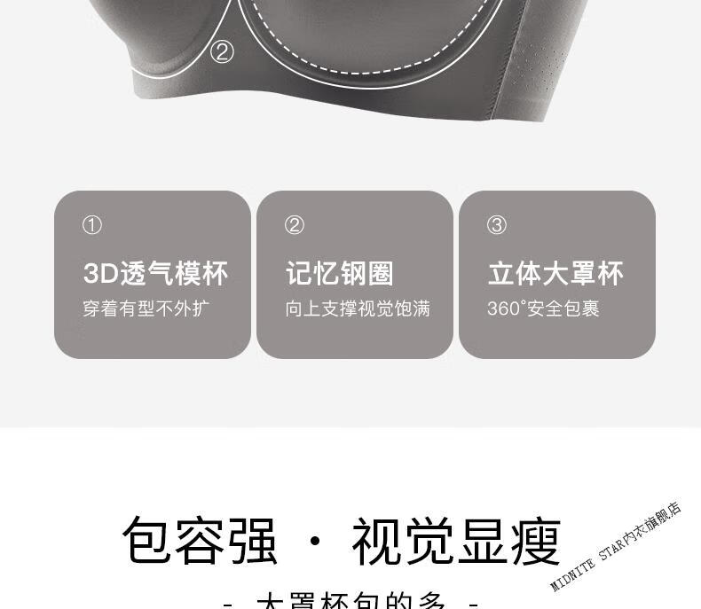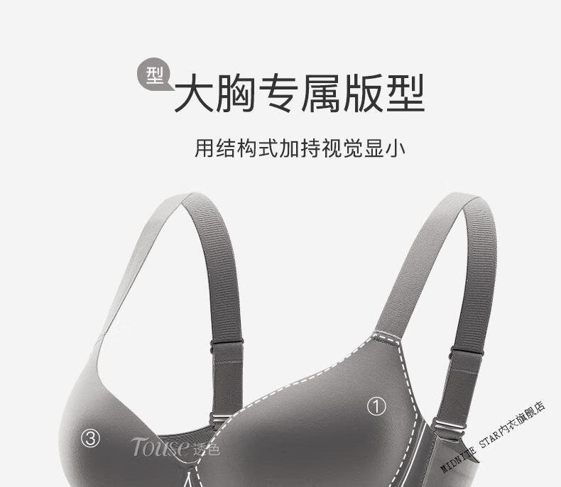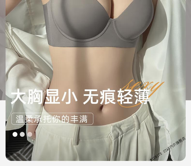 MIDNITE STAR Big Breast Revealing Small Underwear Women's Thin Summer Gathering Secondary Breasts Anti-Sagging Large Size Fat mm2026 New Seamless Bra Gray-Single Underwear 34/75B (Top Support to Prevent Sagging)