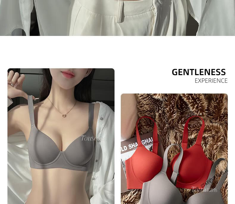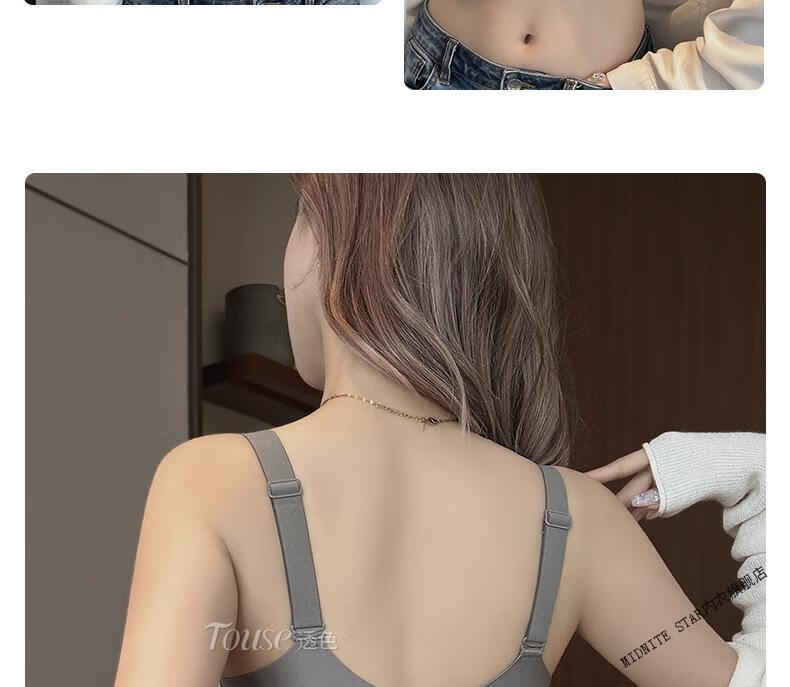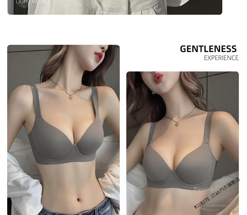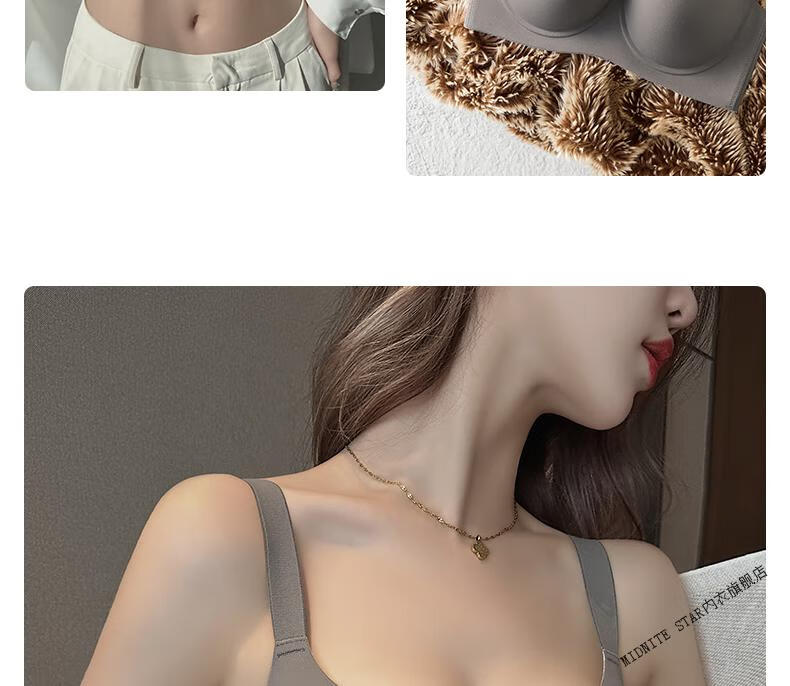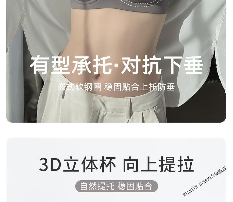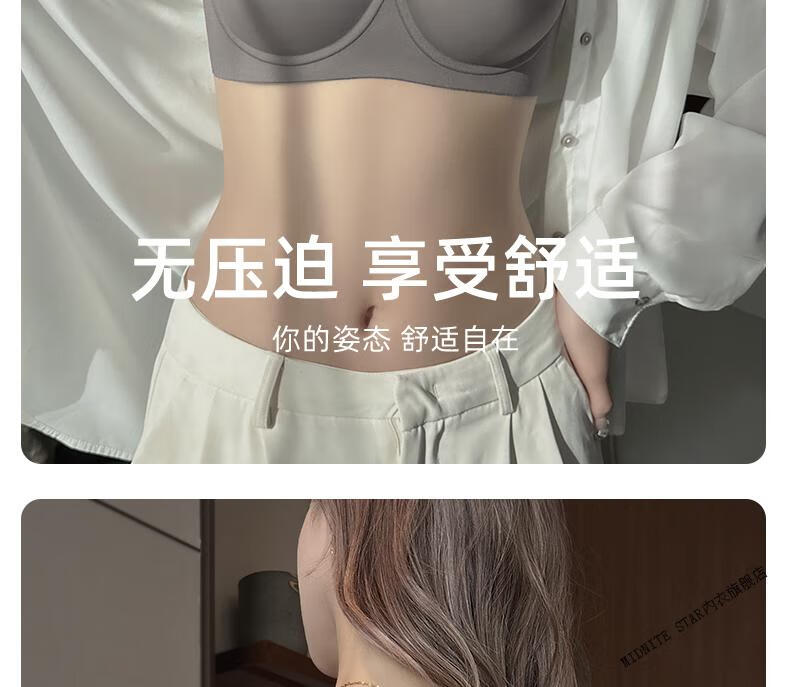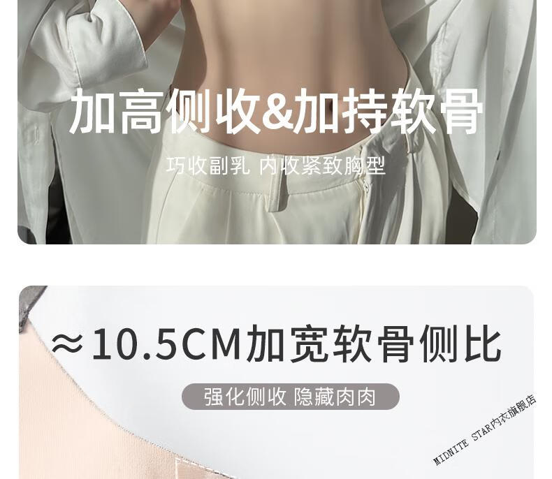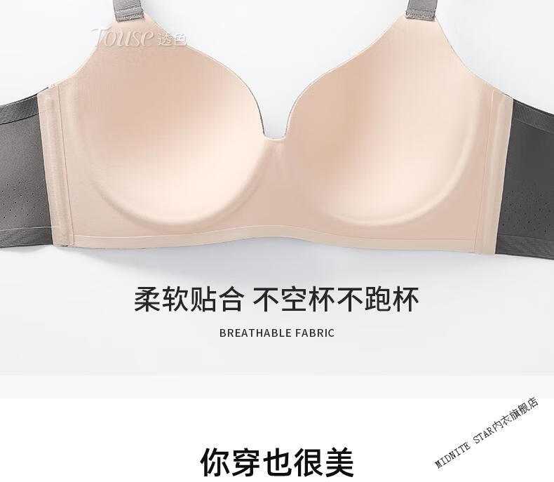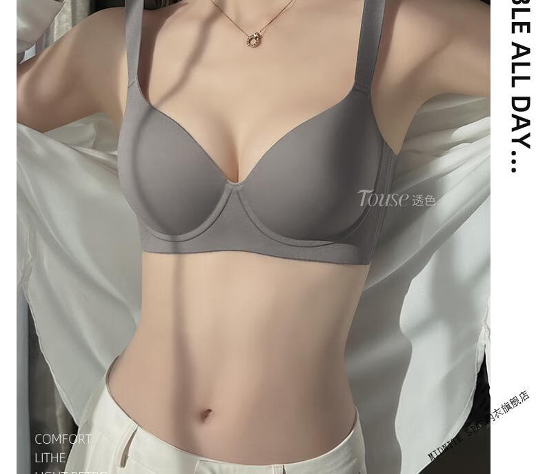 MIDNITE STAR Big Breast Revealing Small Underwear Women's Thin Summer Gathering Secondary Breasts Anti-Sagging Large Size Fat mm2026 New Seamless Bra Gray-Single Underwear 34/75B (Top Support to Prevent Sagging)