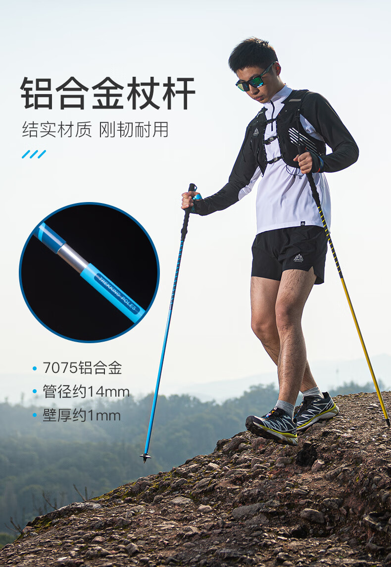 AONIJIE folding trekking pole, outdoor men and women telescopic cross-country walking pole, running pole, ultra-light equipment for hiking and mountaineering, yellow 110cm, free trekking pole mesh bag