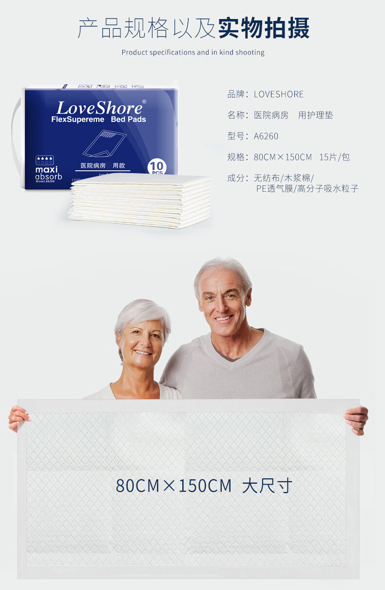 LOVE SHORE成人护理垫老人尿不湿垫床垫尿裤一次性隔尿垫全棉芯80150特大号 全棉芯80x150cm/20片