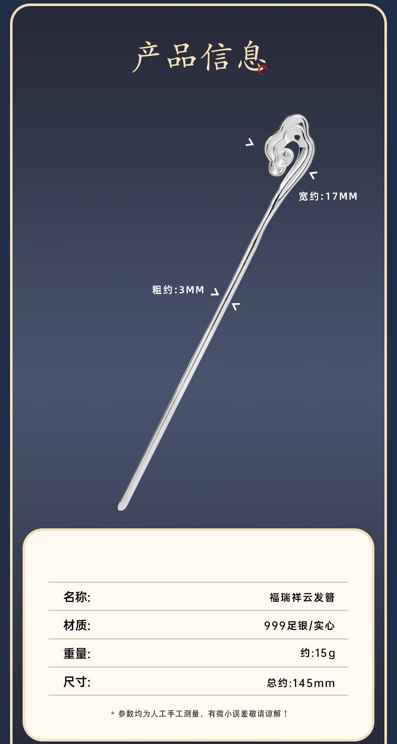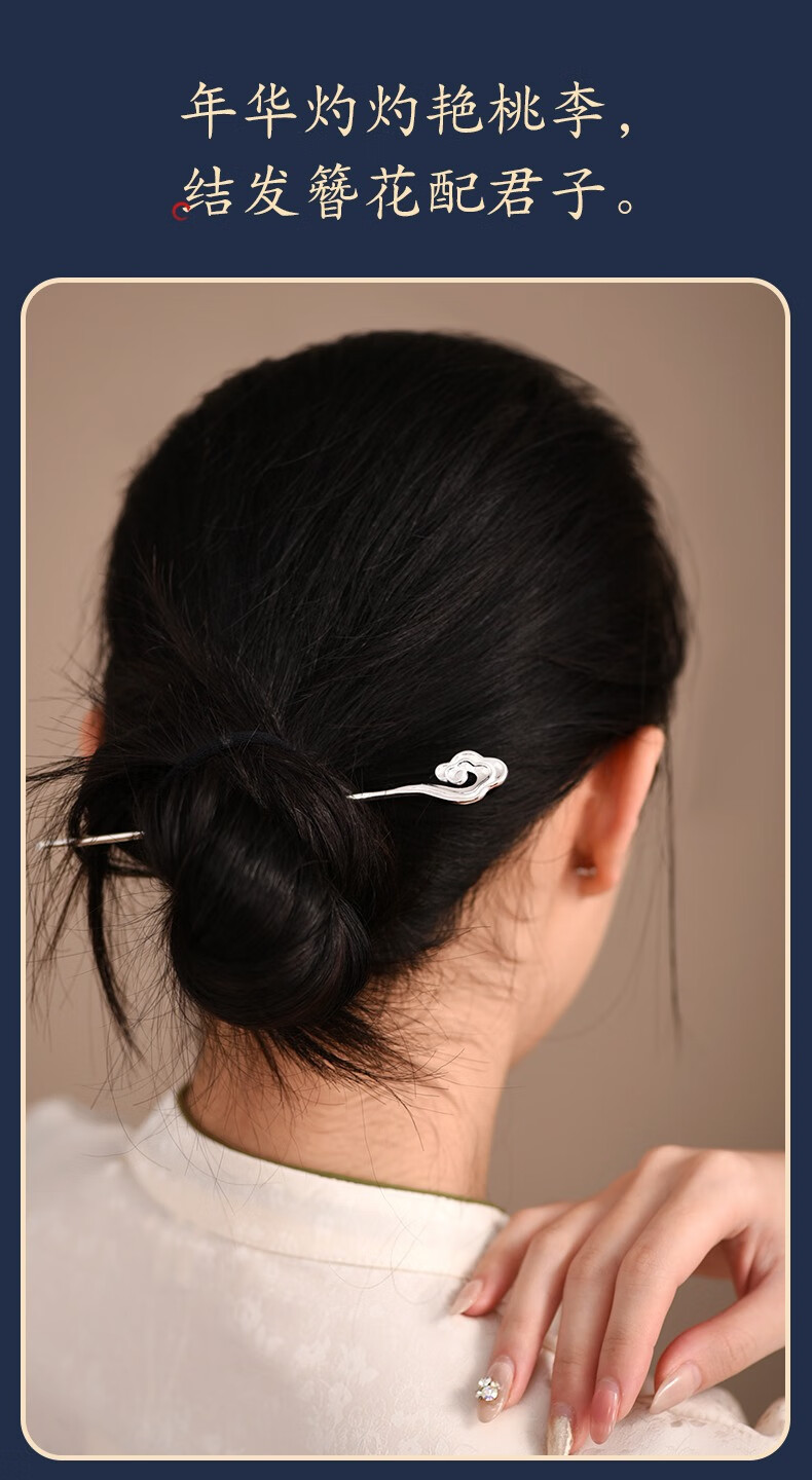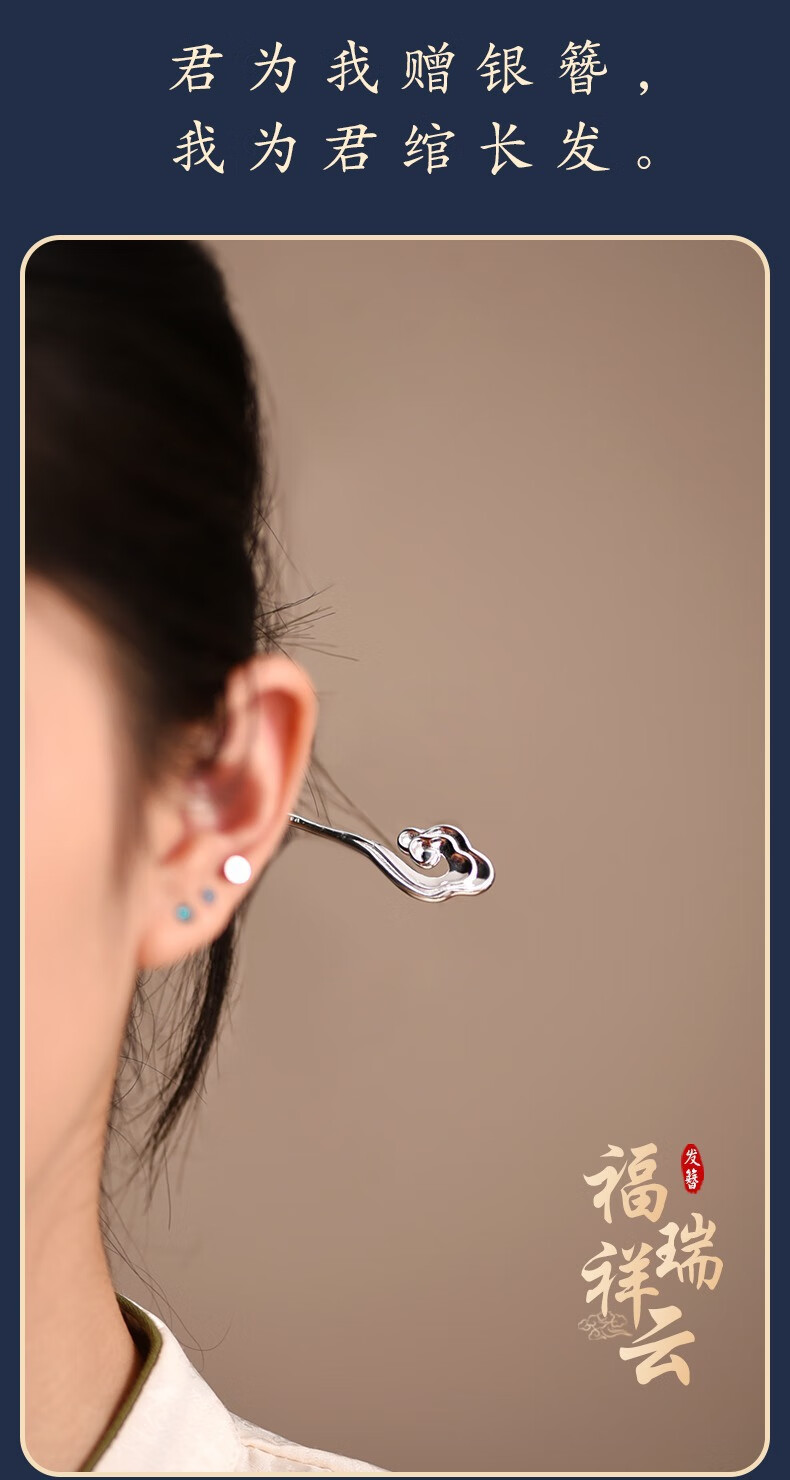 Feiyu 999 pure silver hairpin for Chinese Valentine's Day gift for girls, ancient style hairpin with tassel hair accessories for girlfriend and wife New Chinese style Xiangyun 999 pure silver hairpin