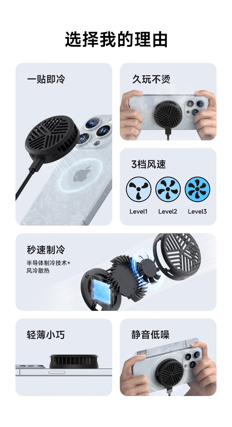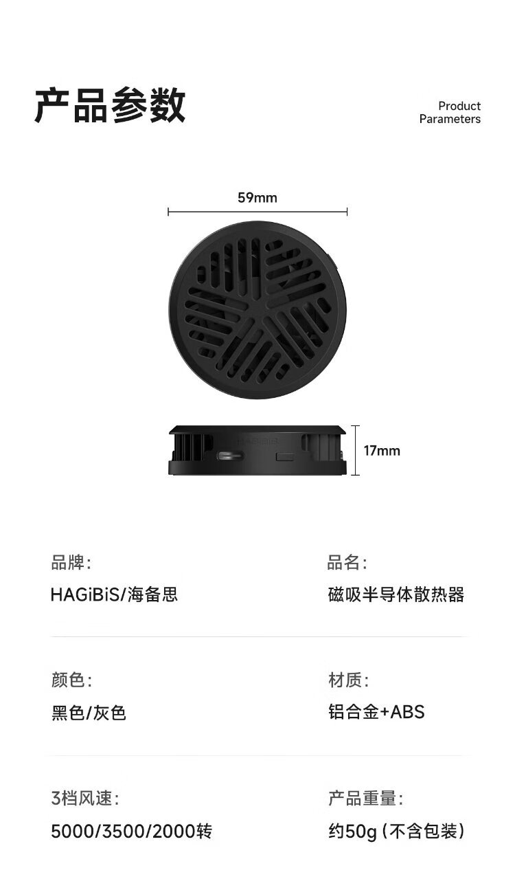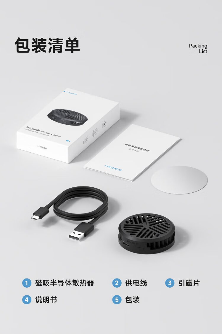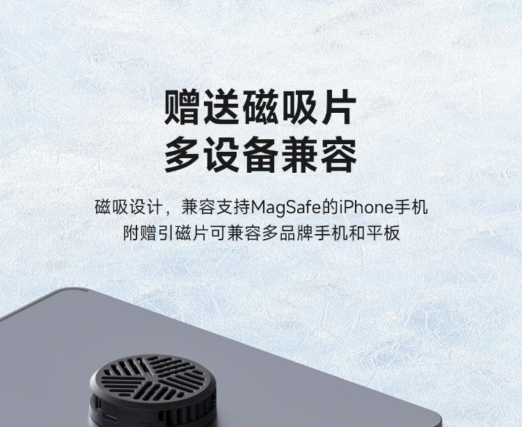 Haibis mobile phone magnetic radiator small fan semiconductor refrigeration back sticker adsorption live game cooling continuous cooling artifact silent and light accessories gray