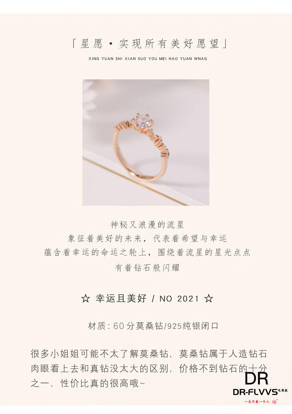 DL 1998 Fat Donglai same style rose gold ring 18k secret blue independent design star dream moissanite diamond women light luxury silver 18K rose gold No. 18