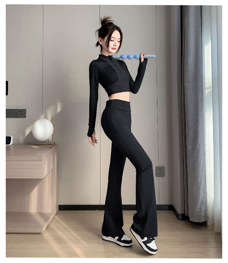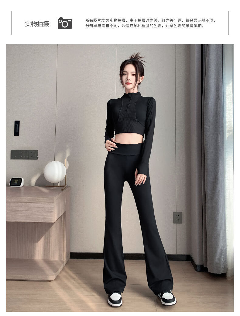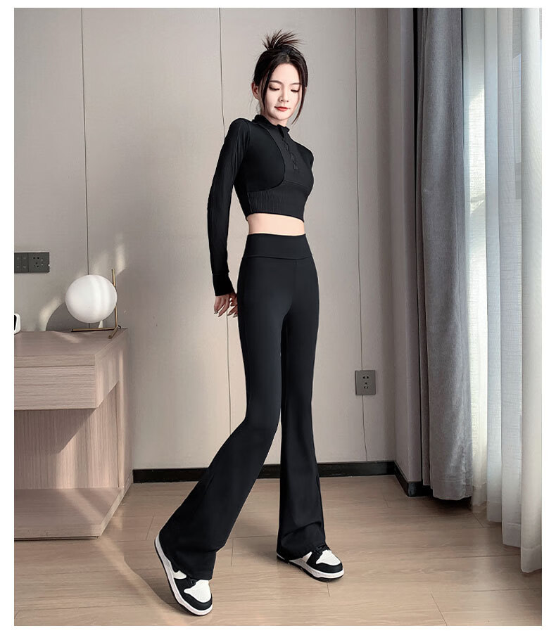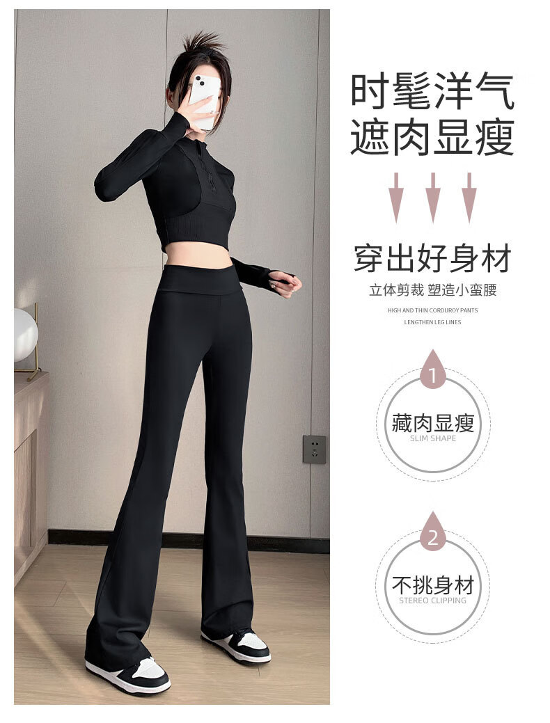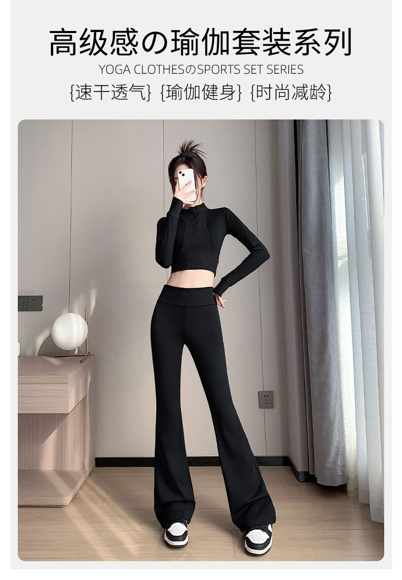 LULU CENTURY Pilates Yoga Wear Suit Women's Quick-Drying Breathable Fitness Clothing Running Sports Quick-Drying High-Waist Micro-Bell Pants Women's Flared Pants Black XL